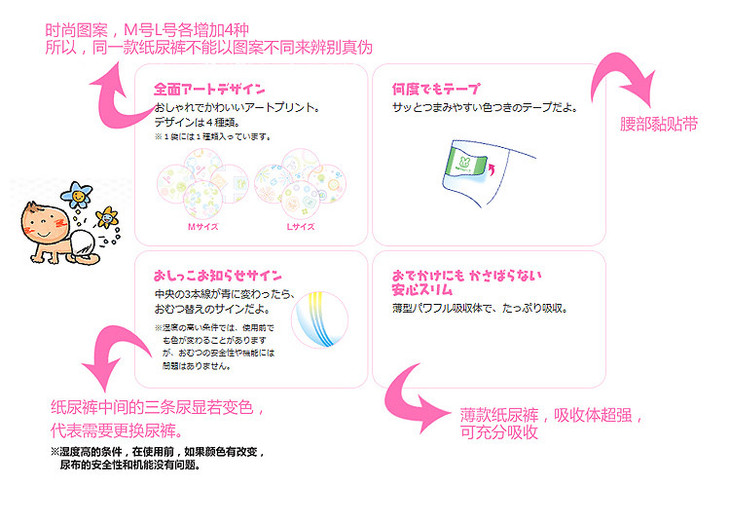 【纸尿裤】* 婴儿宝宝防漏尿裤花王尿不湿纸尿裤M64