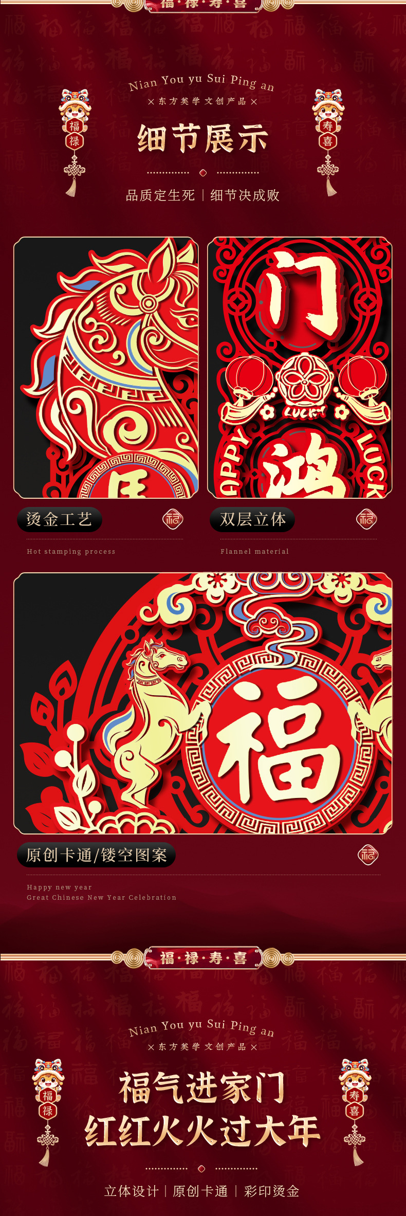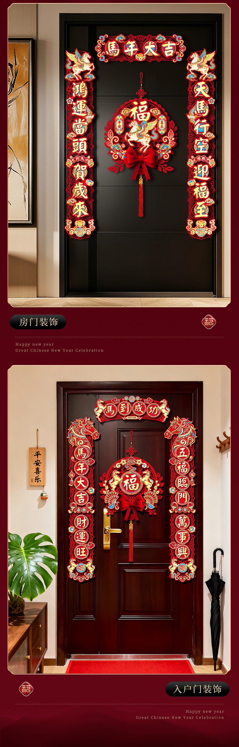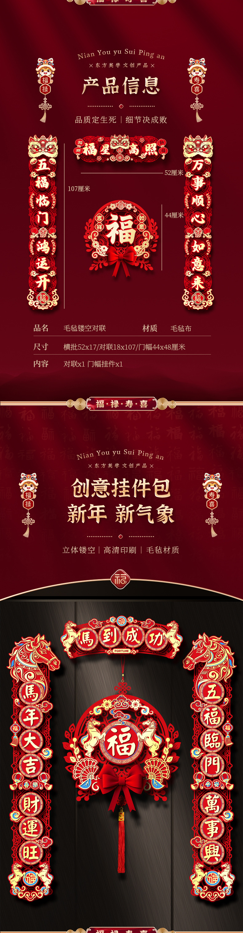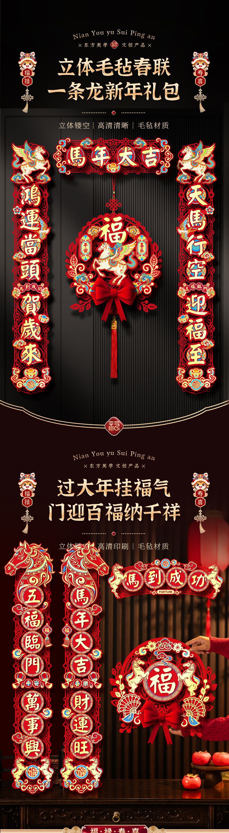 【马年新款磁吸春联】马年毛针镂空对联 2026新款春节家用新年磁吸春联 过年入户门福字贴装饰