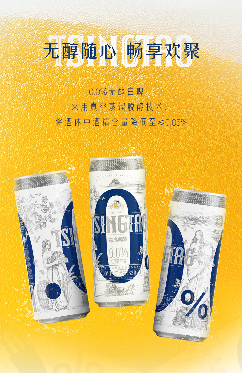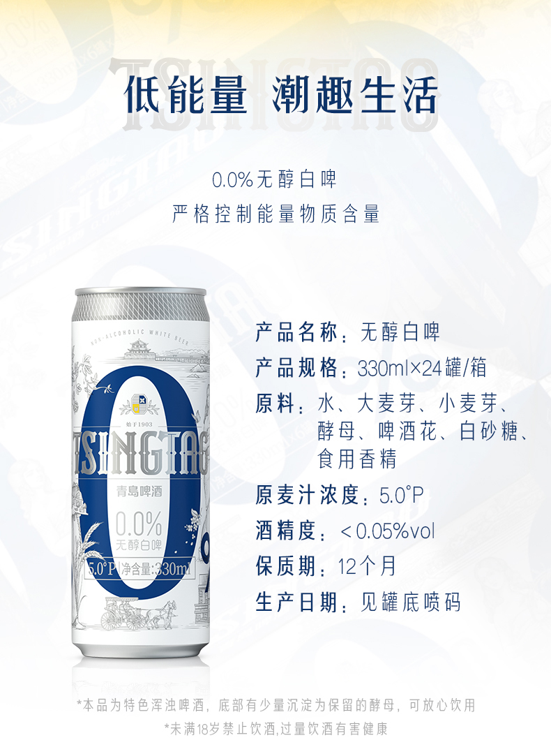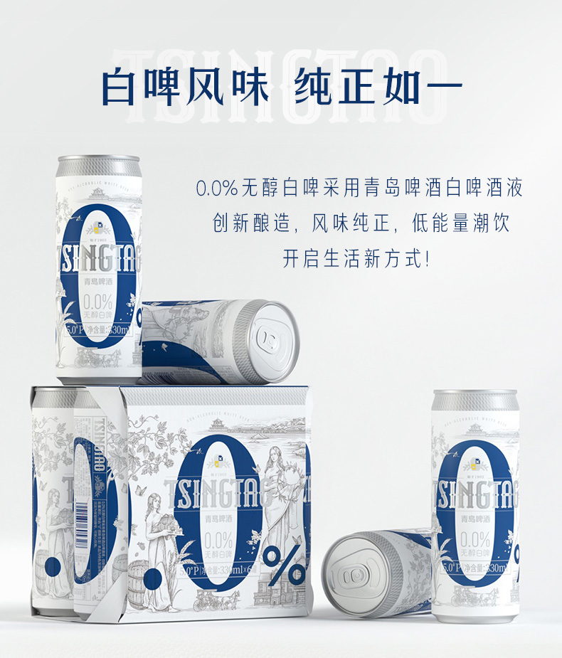 青岛啤酒0.0%无醇 0酒精 啤酒全麦白啤 330ml*24