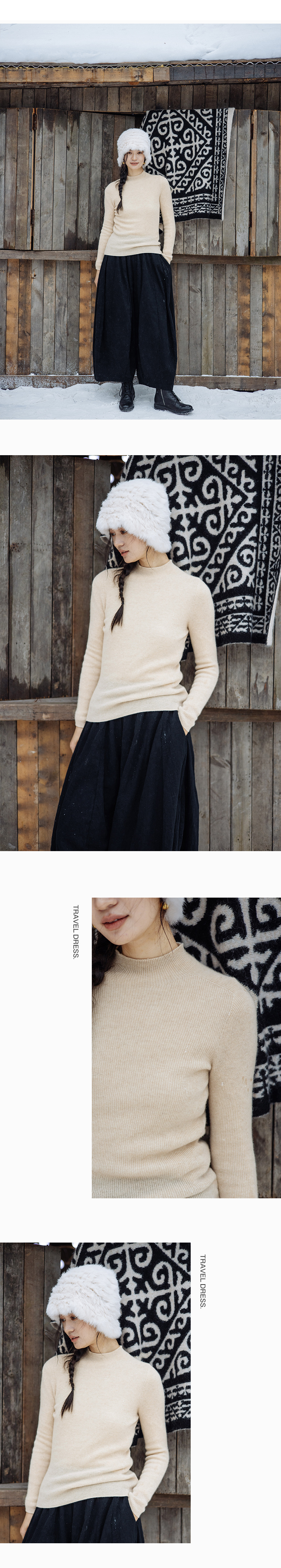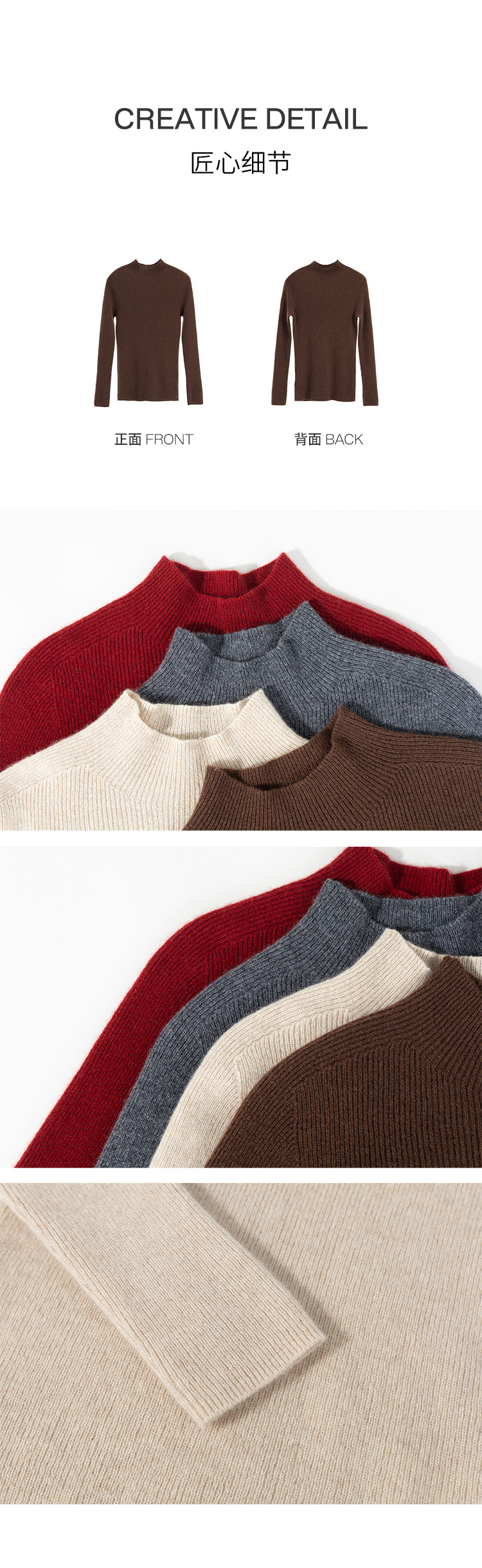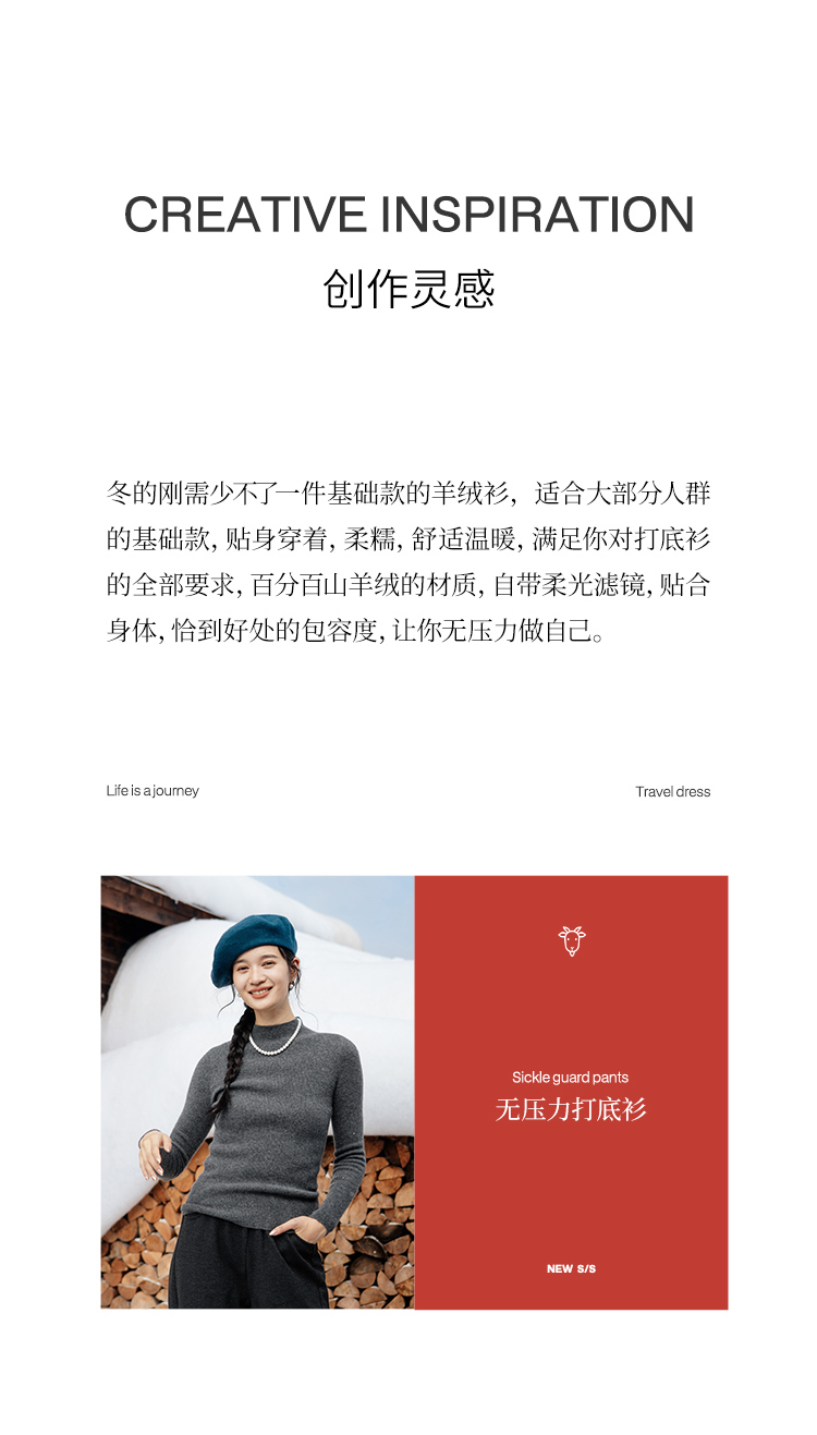绽放891朵/康赛妮100%山羊绒打底衫柔软绒感半高领套头针织衫毛衣