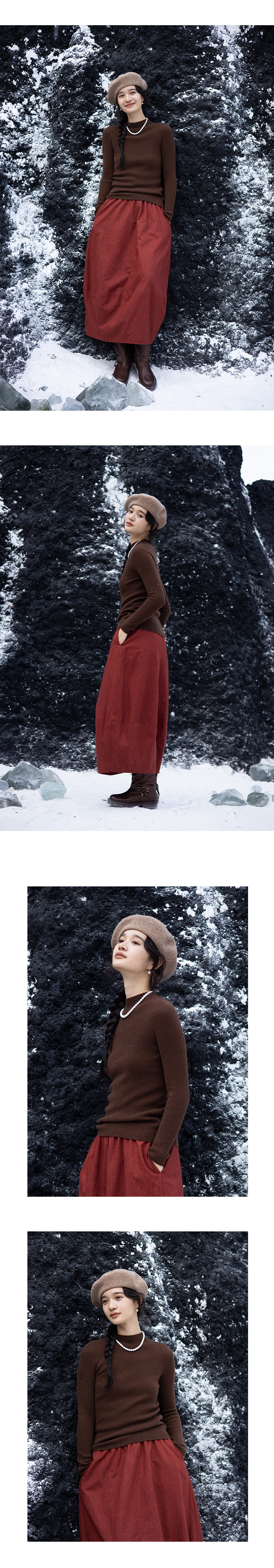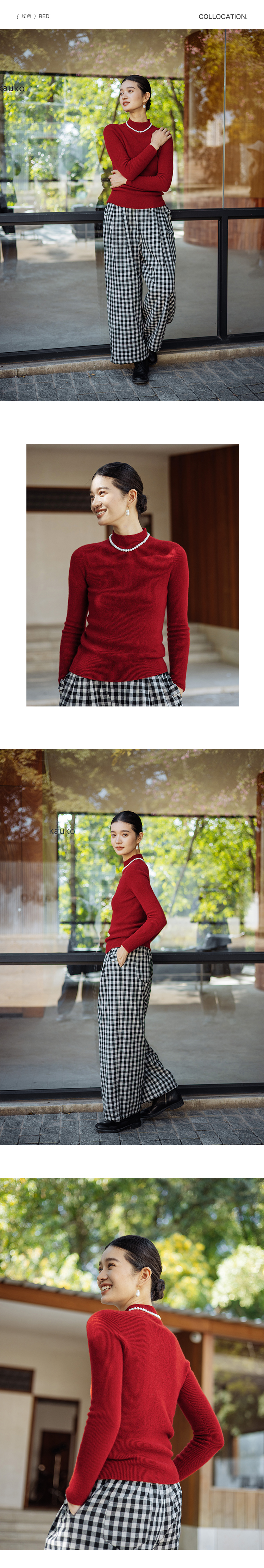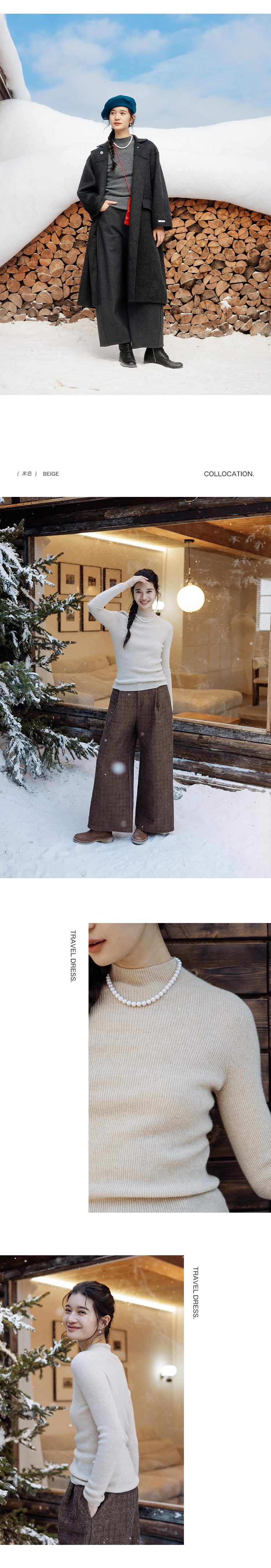 绽放891朵/康赛妮100%山羊绒打底衫柔软绒感半高领套头针织衫毛衣