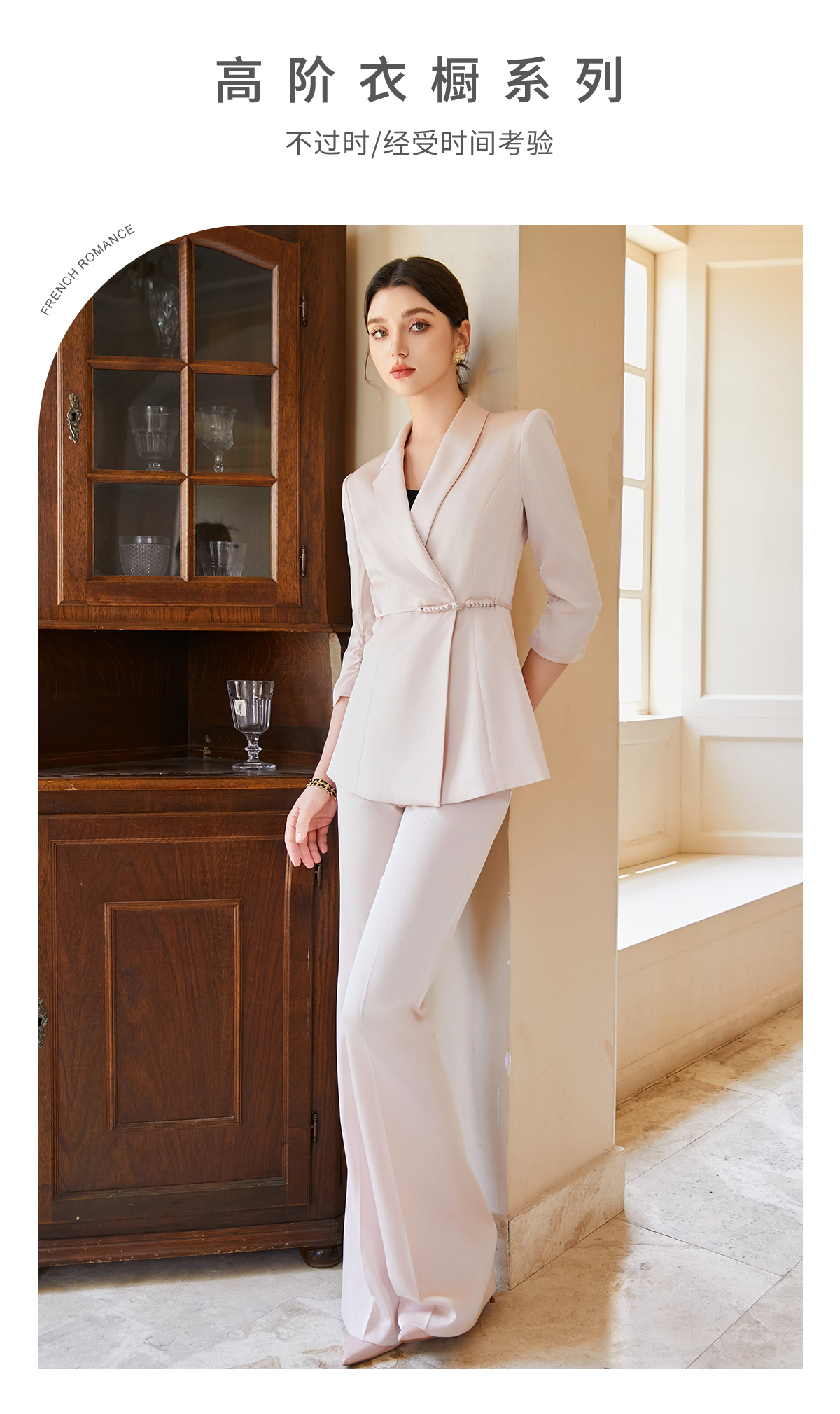 AD薄款西装套装女夏季经理高端职业装粉色新中式醋酸正装阔腿裤秋