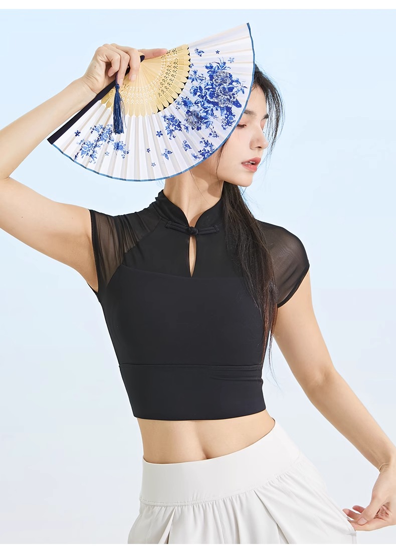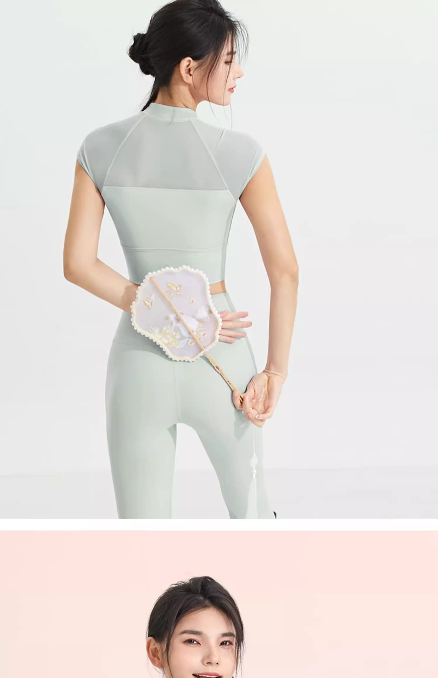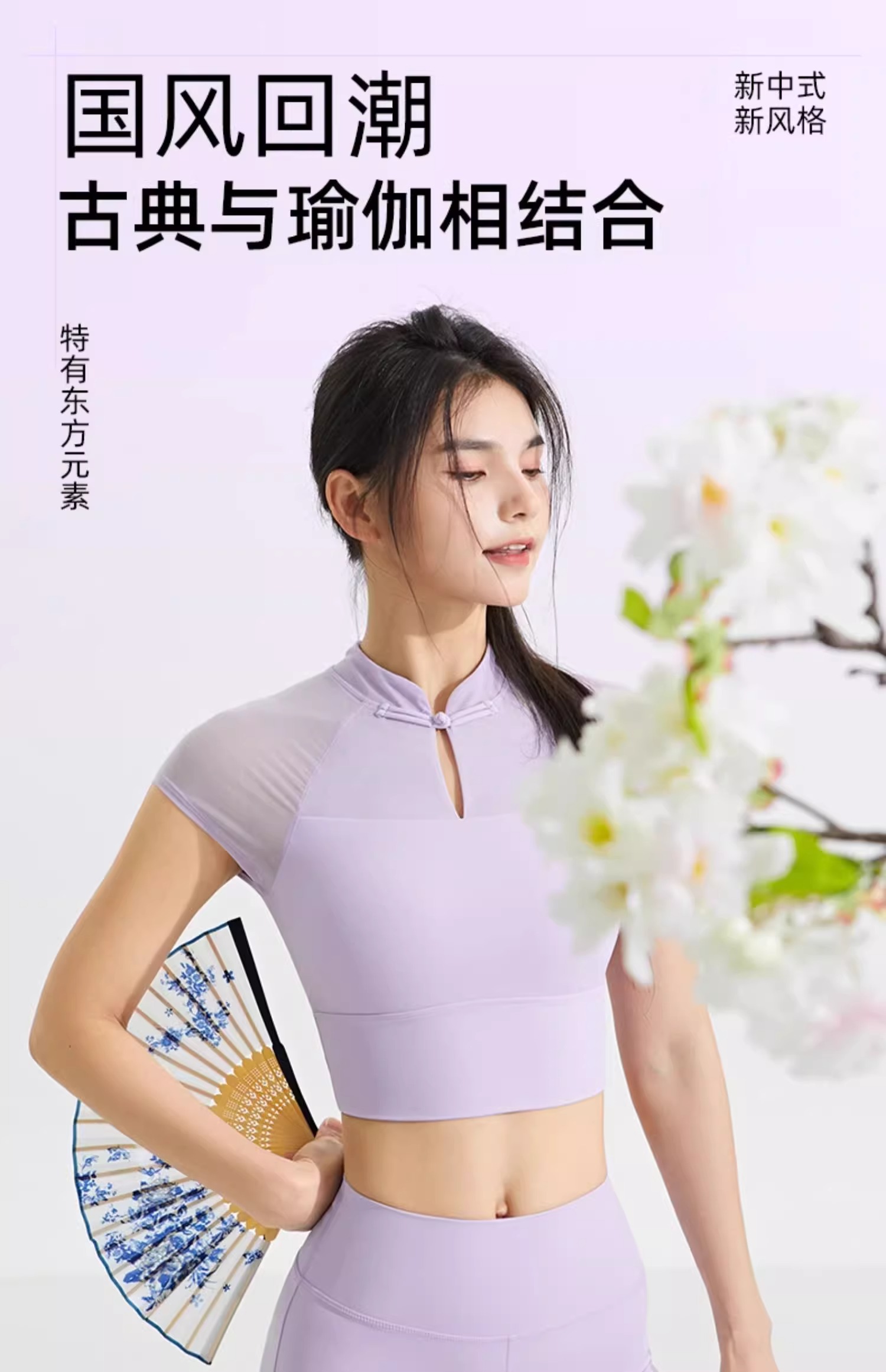 跃牌【禅语梵心】国风网纱性感运动短袖内衣女春夏速干休闲t恤WX2558