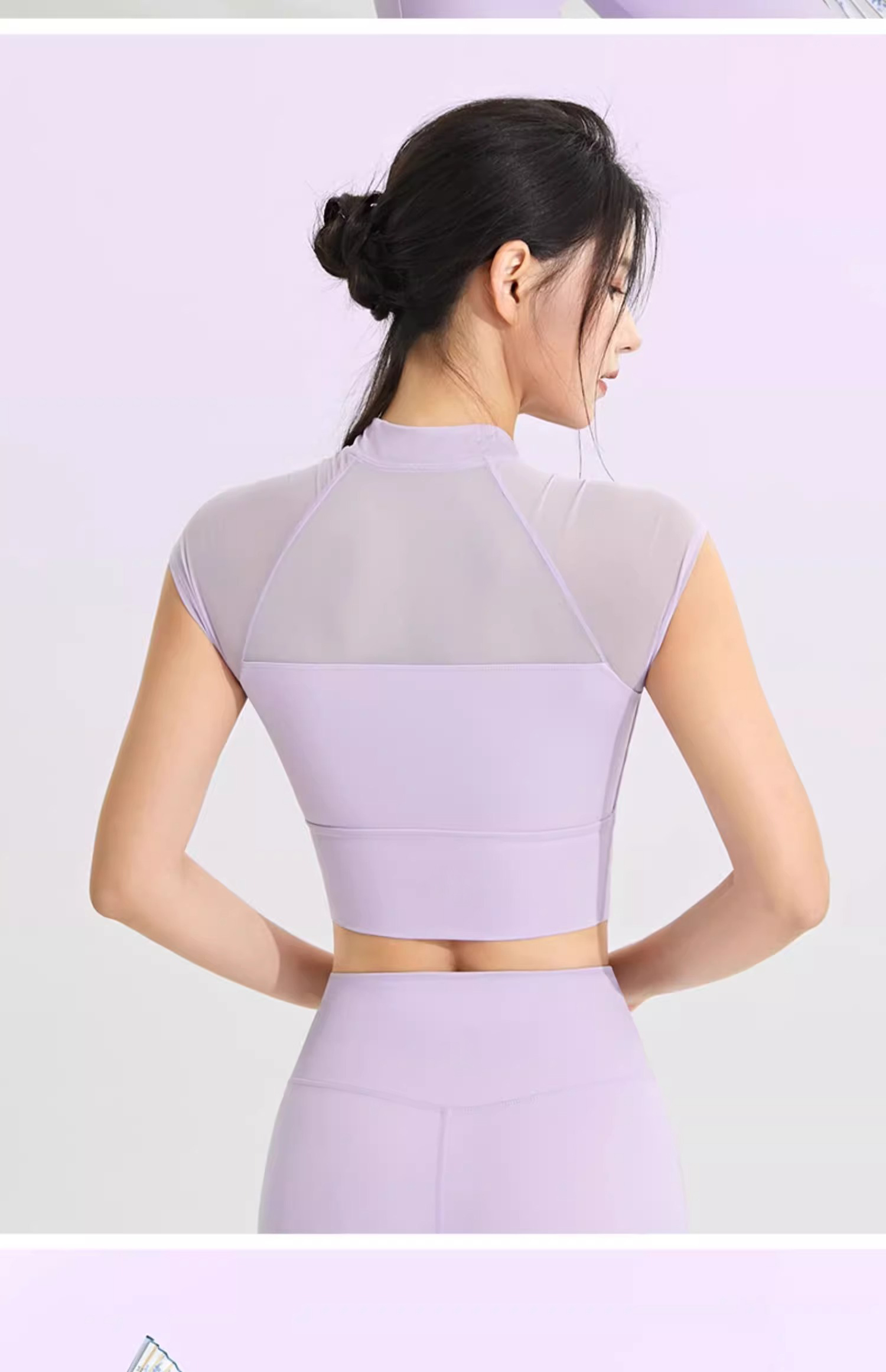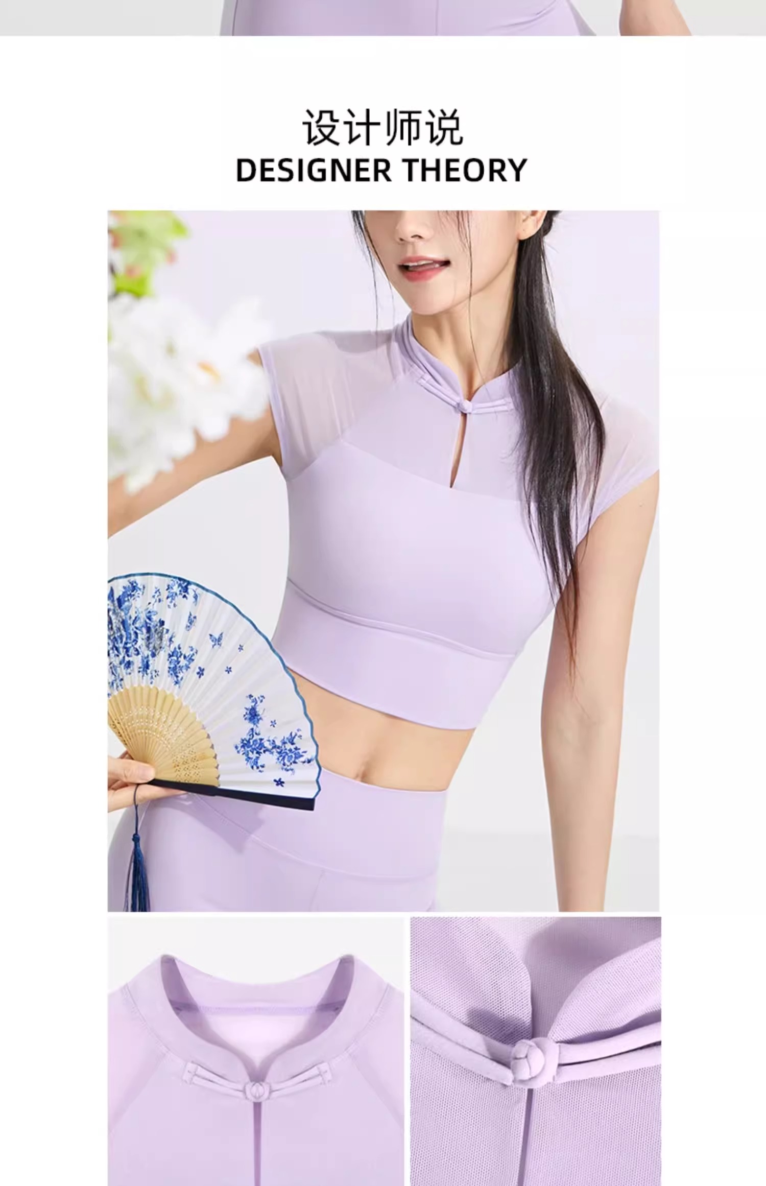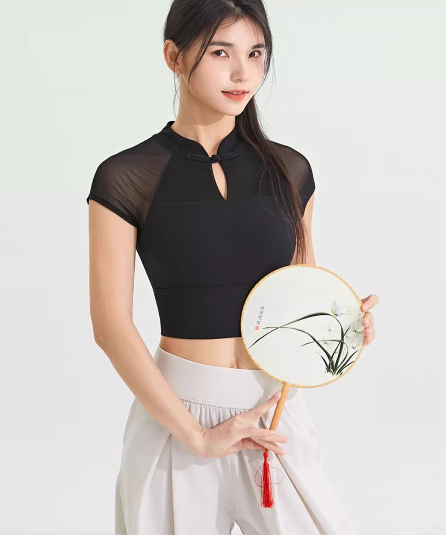 跃牌【禅语梵心】国风网纱性感运动短袖内衣女春夏速干休闲t恤WX2558