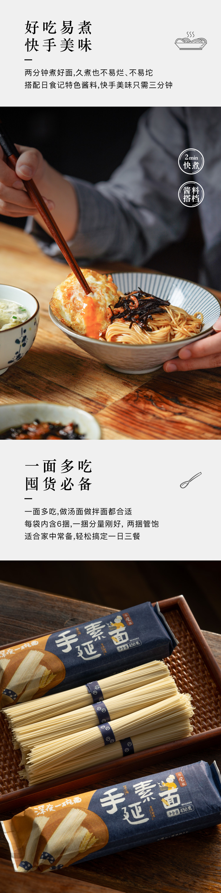 [屁侠推荐]日食记 手延素面 久煮不烂 Q弹筋道 450g/袋*2袋(新老包装随机发货)