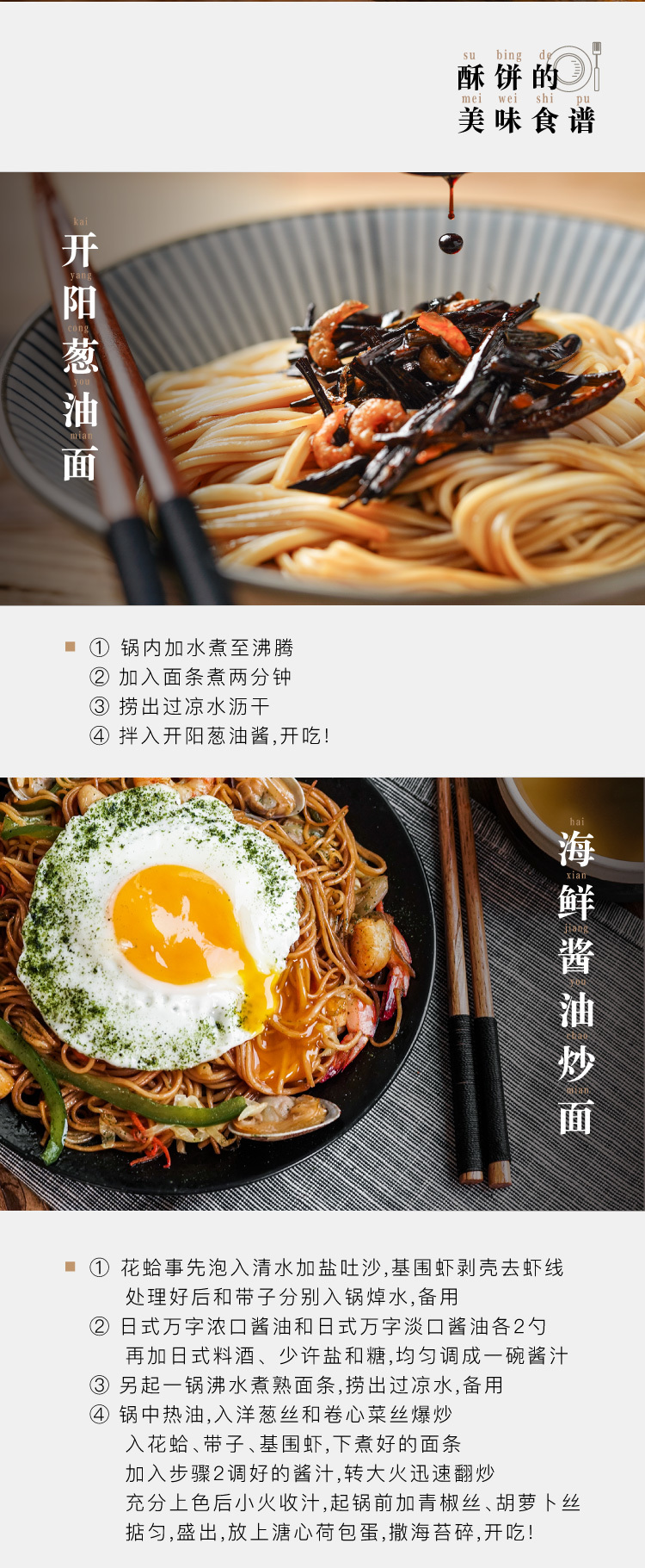 而且,吃它是真的不需要技巧,只要在沸水中煮上短短2分钟,一碗美味的手延素面就可以端到你眼前了!它久煮不烂,不易断,口感爽滑,完全不会坨成一团!Q弹、劲道、爽滑、细腻——这些词语,描述手延素面就很精准!一口下去,能感受到满满幸福感,尤其是搭配开阳葱油酱,再来一颗咸酸梅,一煮一拌,那味道简直了!呼噜几筷子就能吸溜得干干净净,超快手又落胃!