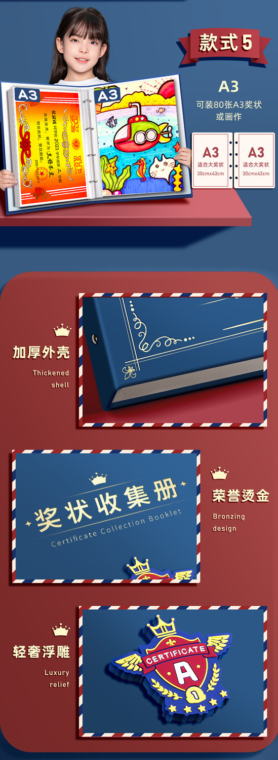 奖状收集册a4荣誉证书收集册文件夹活页学生收纳多功能资料册内页