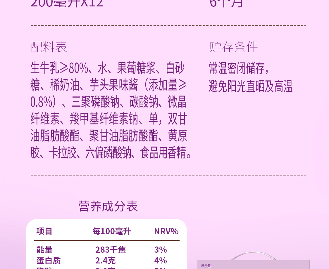 【快递发货】新希望华西芋泥风味牛奶200ml
