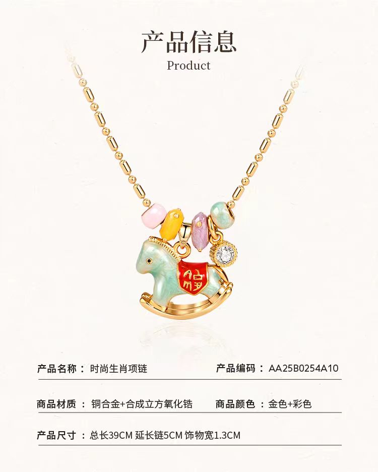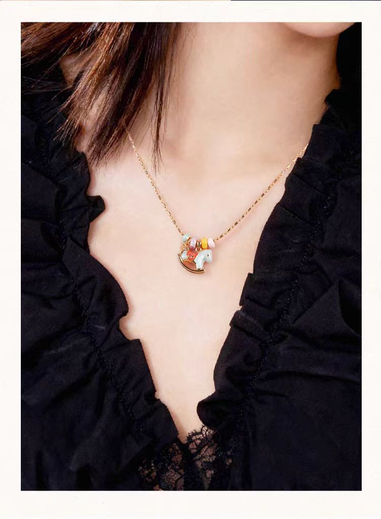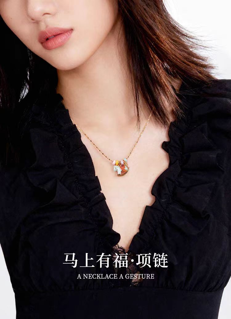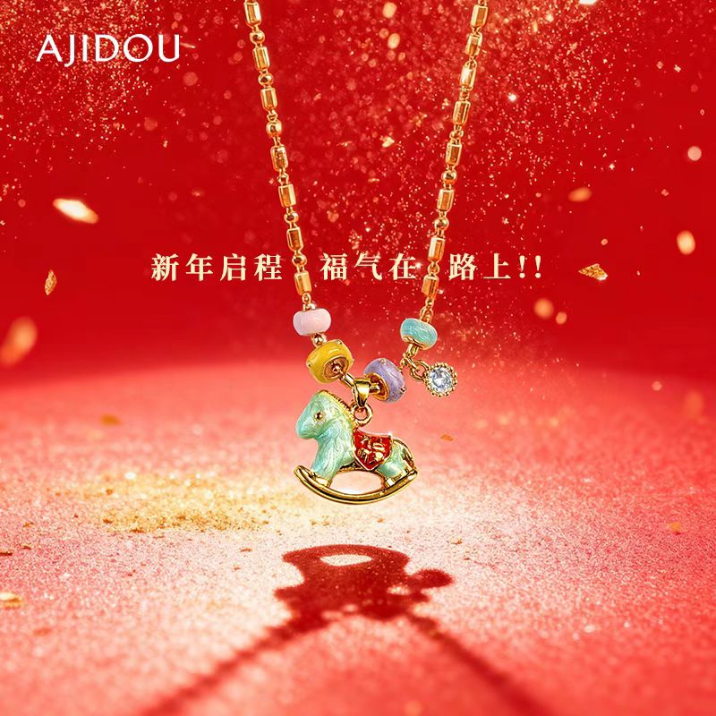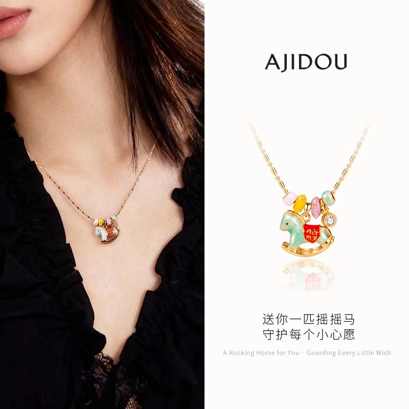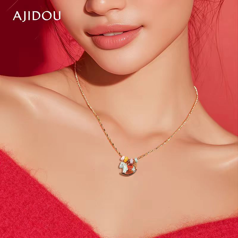 【25新品】AJIDOU阿吉豆女彩色小马锁骨链多巴胺卡通颈链AA25B0254A10【48h发货】