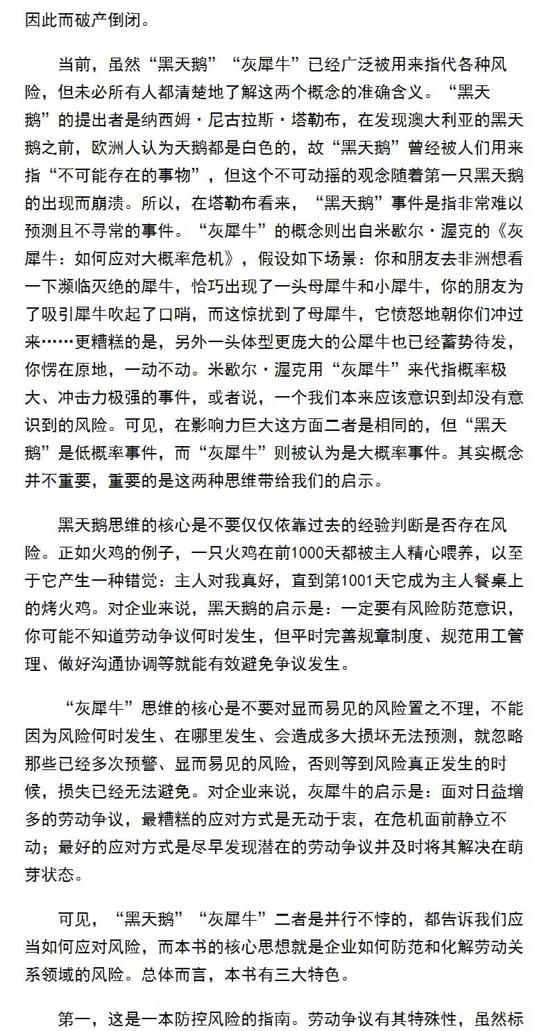 企业劳动用工风险防控指南案例精解:如何防范化解黑天鹅和灰犀牛