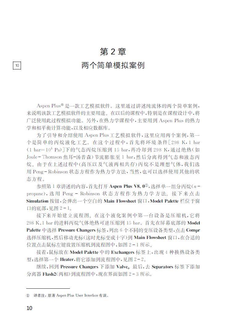 习题的数量几乎增加了一倍。更重要的是,增加的习题集中在能源领域:整体煤气化联合循环,包括低温空气分离、用柳枝稷制乙醇和变压吸附为燃料电池汽车制氢。在每个案例中,均在讨论之前先定义问题,使学生能了解其适用性。自2005年以来,微流体力学已获得发展,也有些增加的习题是属于生物医学应用领域的。这导致更多的例题和习题涉及二维和三维空间的流体流动和扩散。一项重大的增添是在AspenPlus7.3中作出的:现在在程序中已可直接存取美国国家标准及技术研究所(NationalInstituteofStandardandTechnology)汇编的纯组分的压力体积温度实验数据和二元气液平衡实验数据。对化学工程师而言,这是非常重要的,因为热力学模型的选择通常必须伴随着与实验数据的比较,而现在这已变得非常容易,容易到不做这种比较将显得不专业。于是,本书的热力学部分包括了工业指南、某些分子水平的考虑和进行比较的实验数据。AspenPlus还有能力非常方便地总结某个过程的温室效应。在有些教授的课程里,会有他们所作的关于如何利用AspenTech公司产品的讨论;请联系:University.Program@aspentech.com。Luyben教授指出的一个事实是物料和能量衡算主要是基于物流的,而安全问题是基于压力(和动态)的。动态选项在本书不作详细讨论,通常它们包含在控制课程内。AspenPlus在微软视窗下运行,但作者是在苹果计算机上用ParallelsDesktopforMac在视窗下运行的。第二版中还有些例题是添加了简单的用户定义FORTRAN程序后运行AspenPlus的。