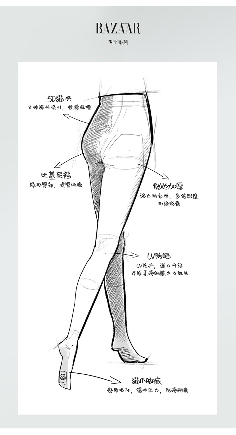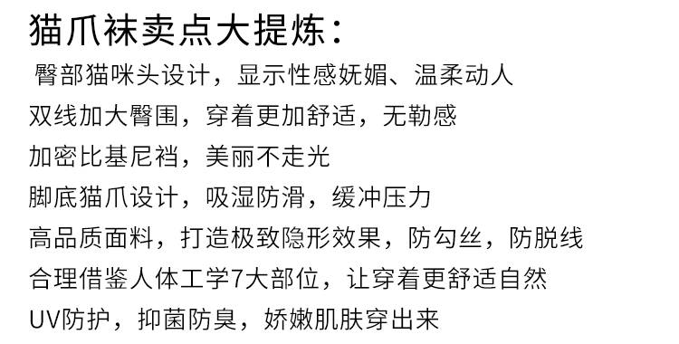 【凉感任意剪防脱丝猫爪袜】时尚芭莎猫爪袜 ,莱卡高回弹橡筋 提亮肤色 自然不假白