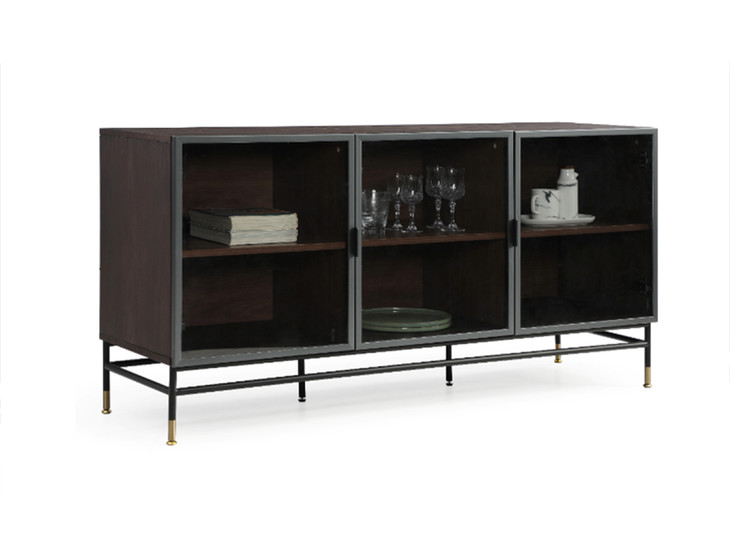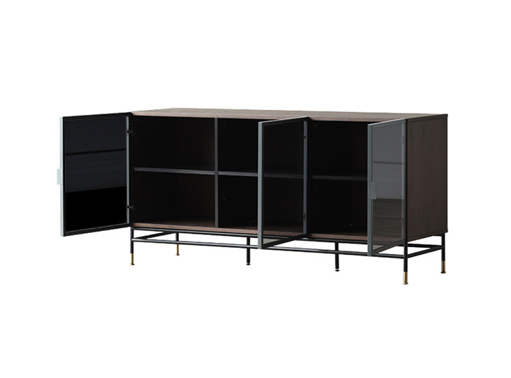 主材:水曲柳木皮修可可色+铝框+玻璃灰+黑色铁艺