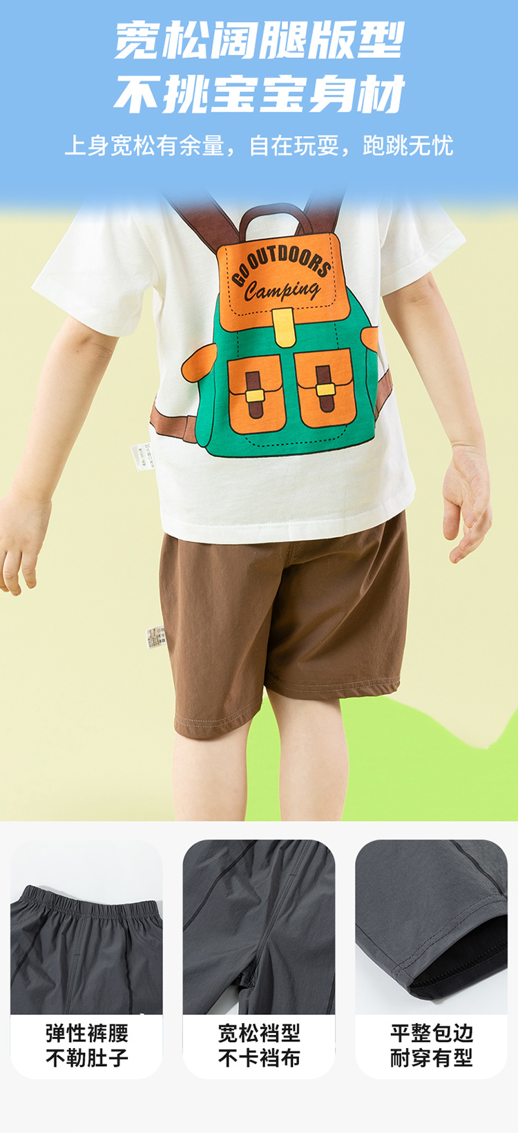 贝贝怡25夏季新款男童凉感七分裤儿童运动休闲裤子百搭宽松透气学生裤ZB2EK008