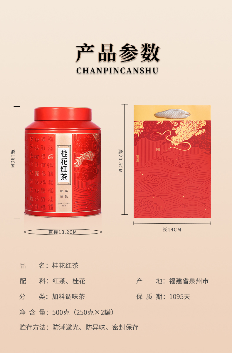 【年货茶礼】茶叶 红茶 桂花红茶 茶叶礼盒 浓香型 茶饮 华源 500g