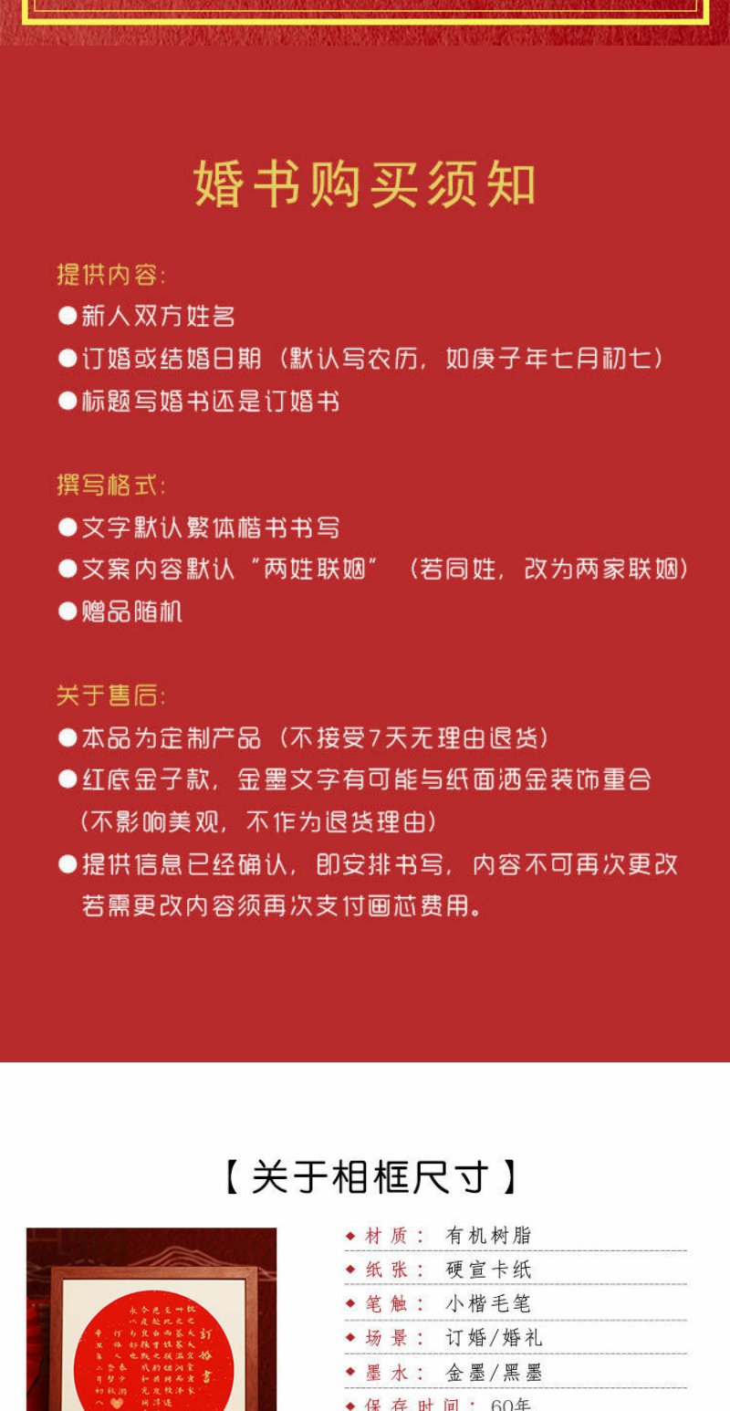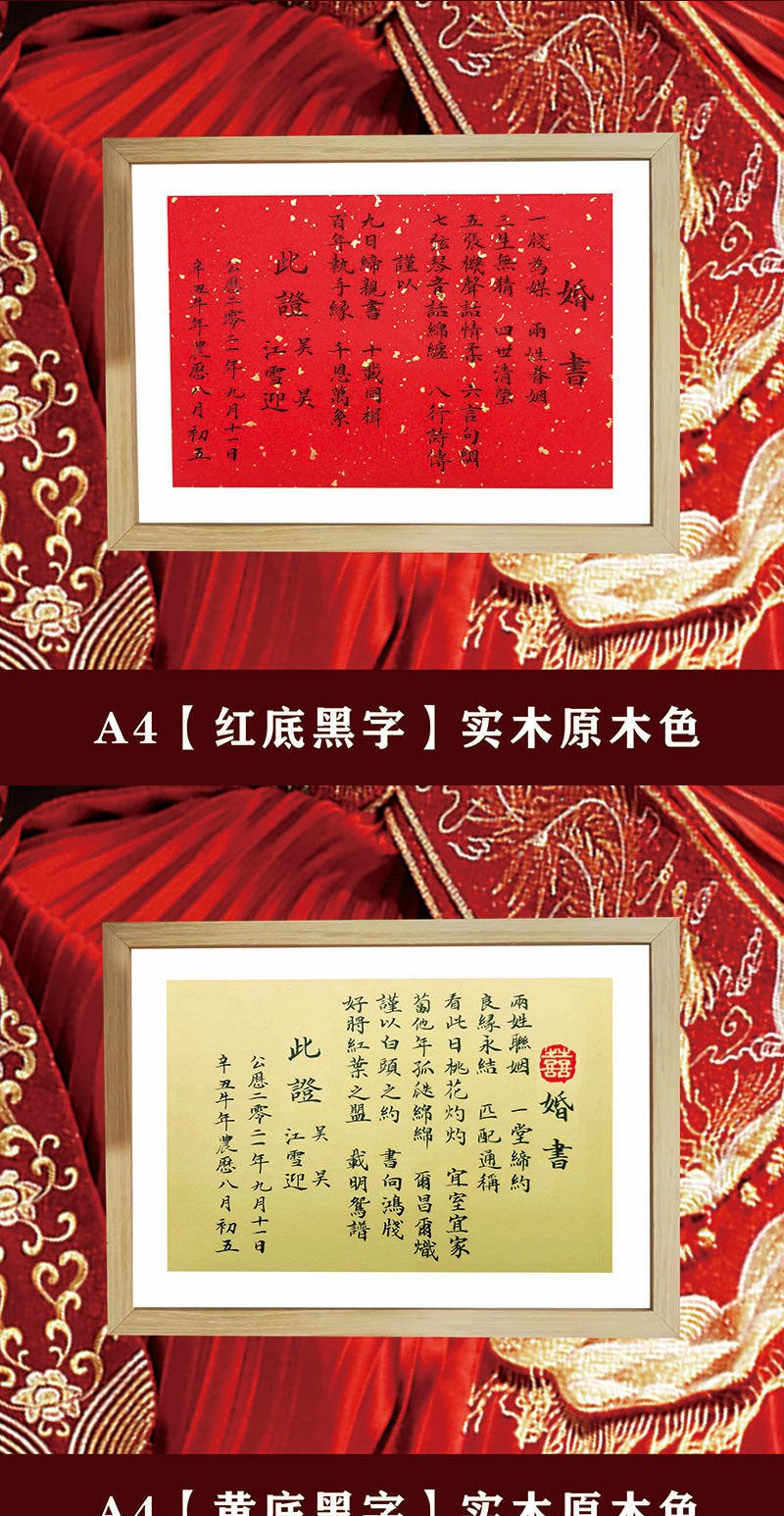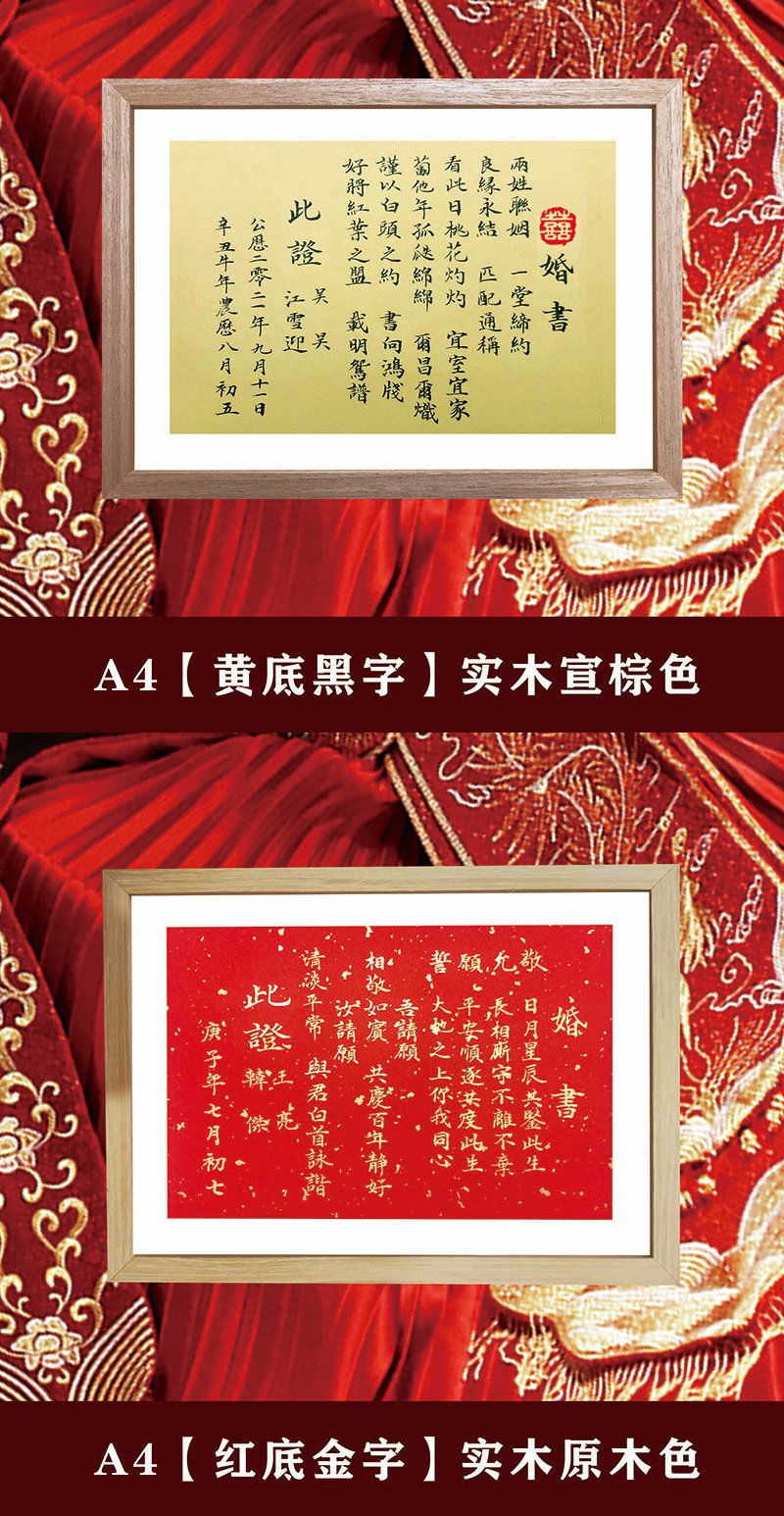 手写婚书高级定制结婚礼物国潮订婚书网红礼品实木相框喜帖中国风【2月21日发完】