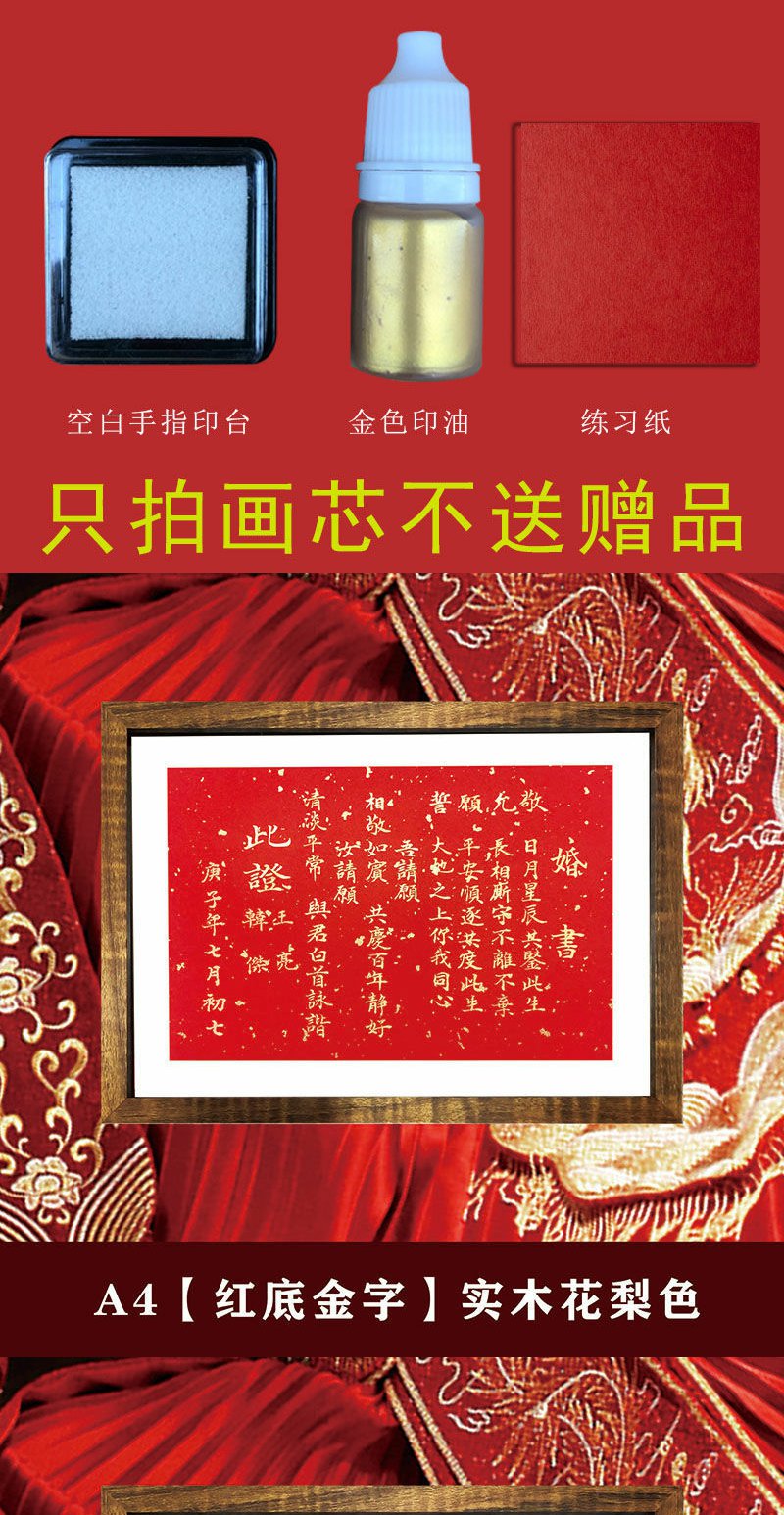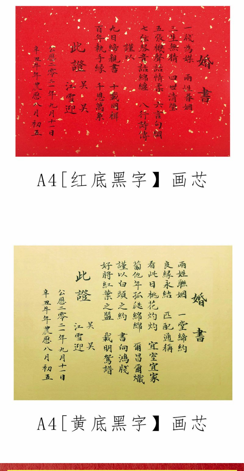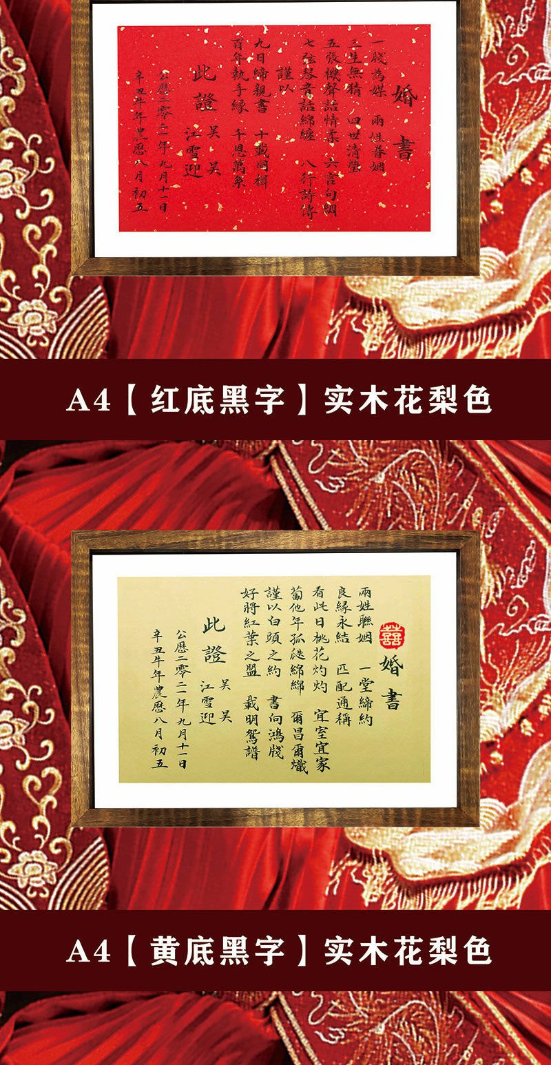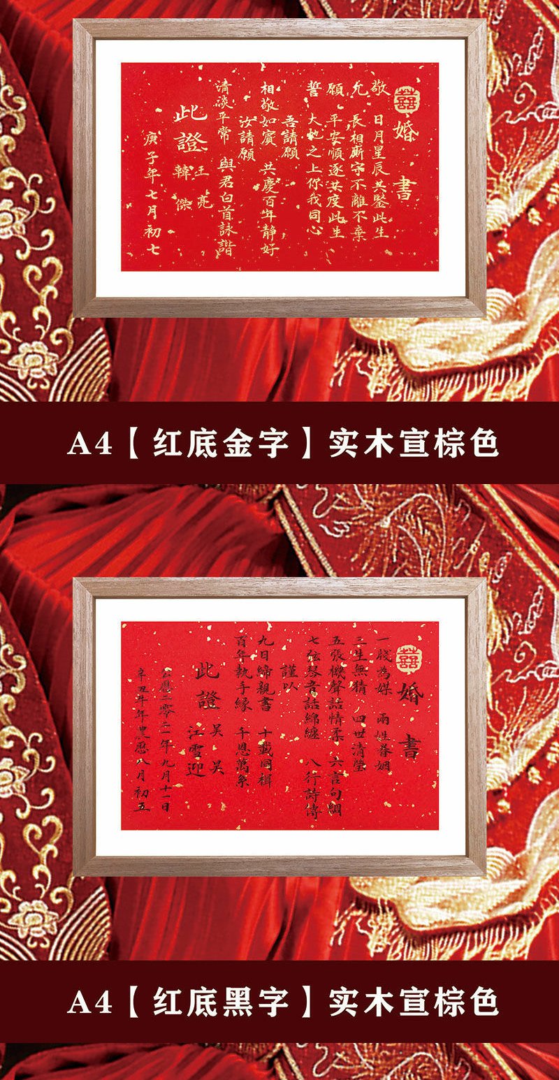 手写婚书高级定制结婚礼物国潮订婚书网红礼品实木相框喜帖中国风【2月21日发完】