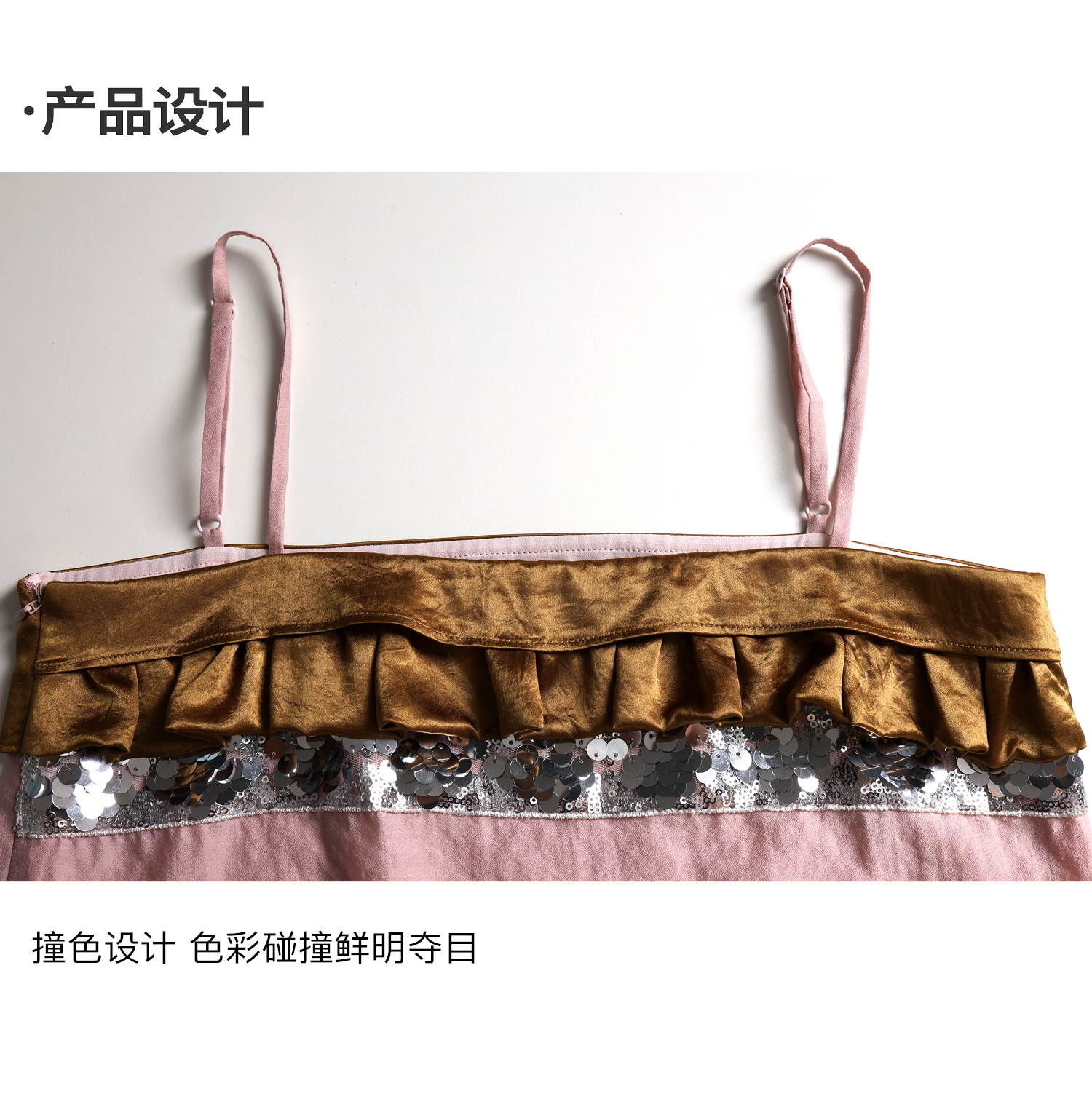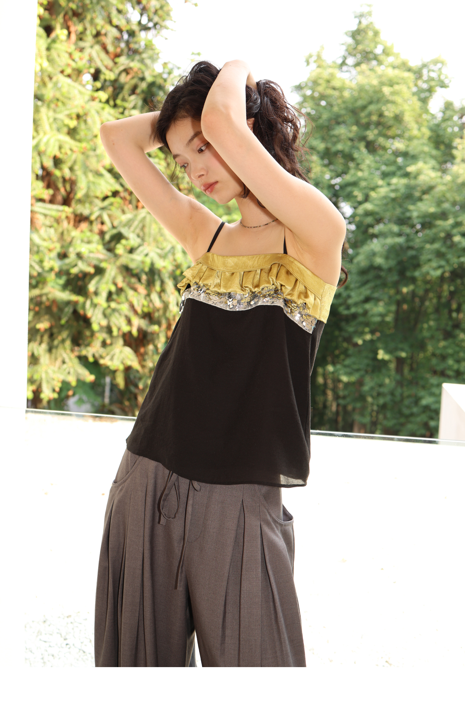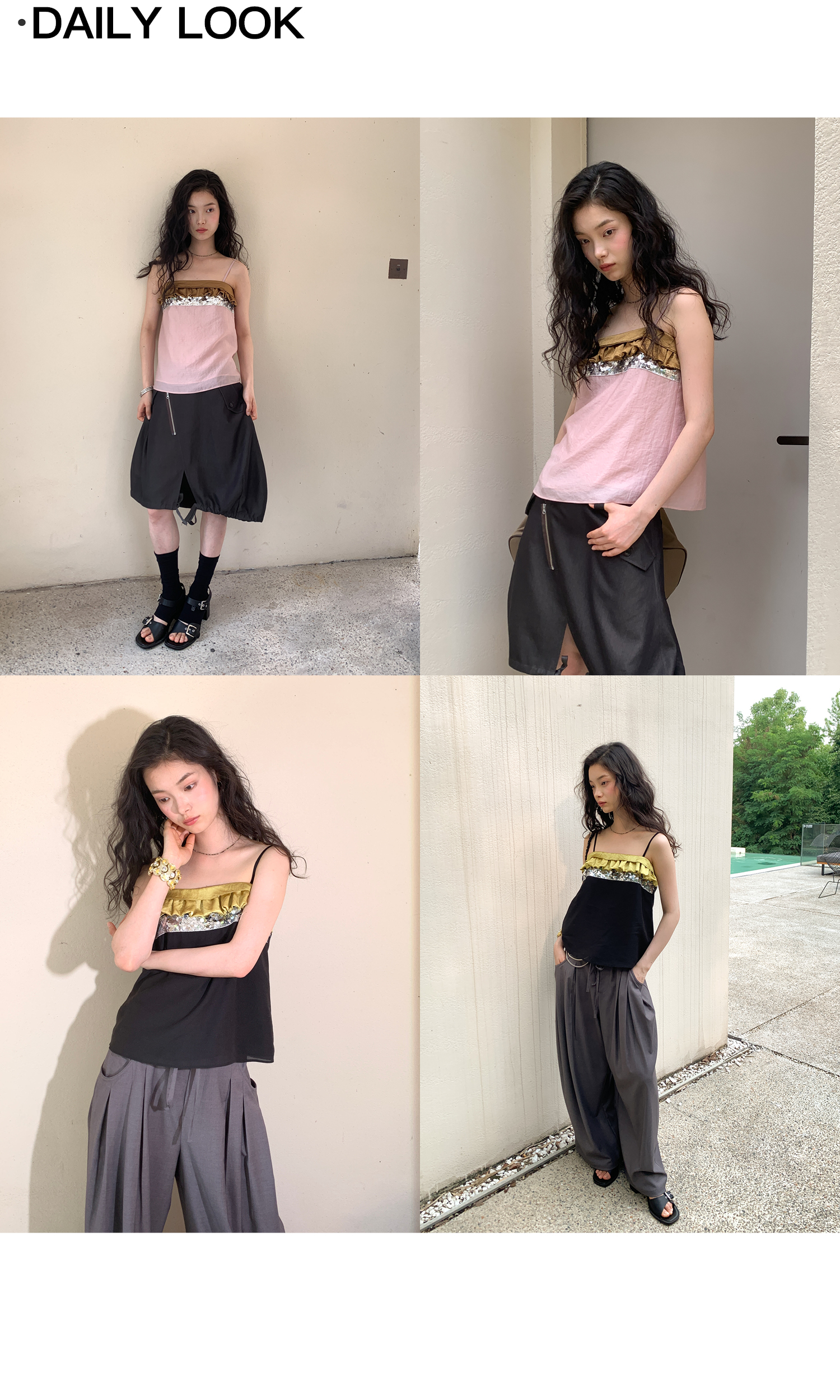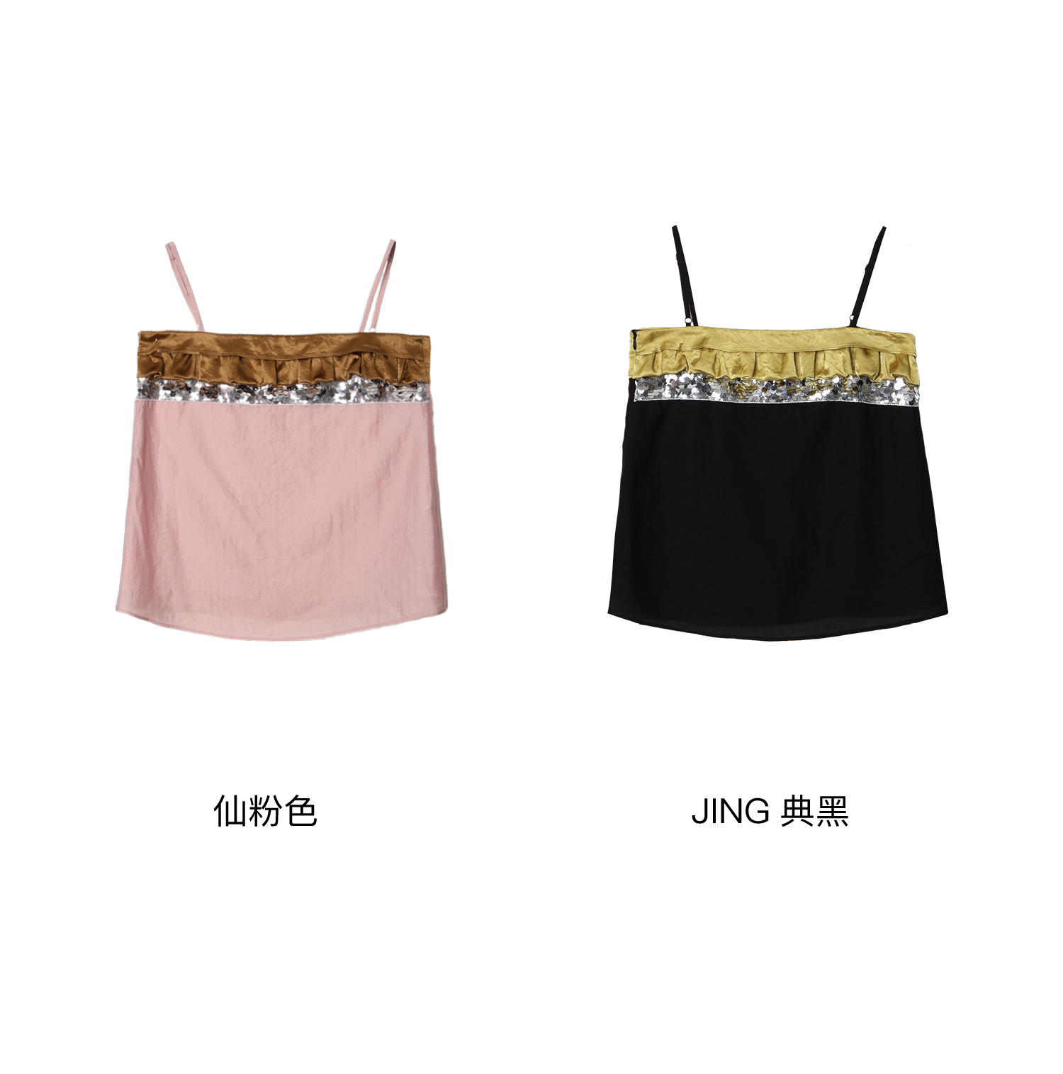素舶 醋酸混纺光泽感透气撞色亮片织带吊带背心