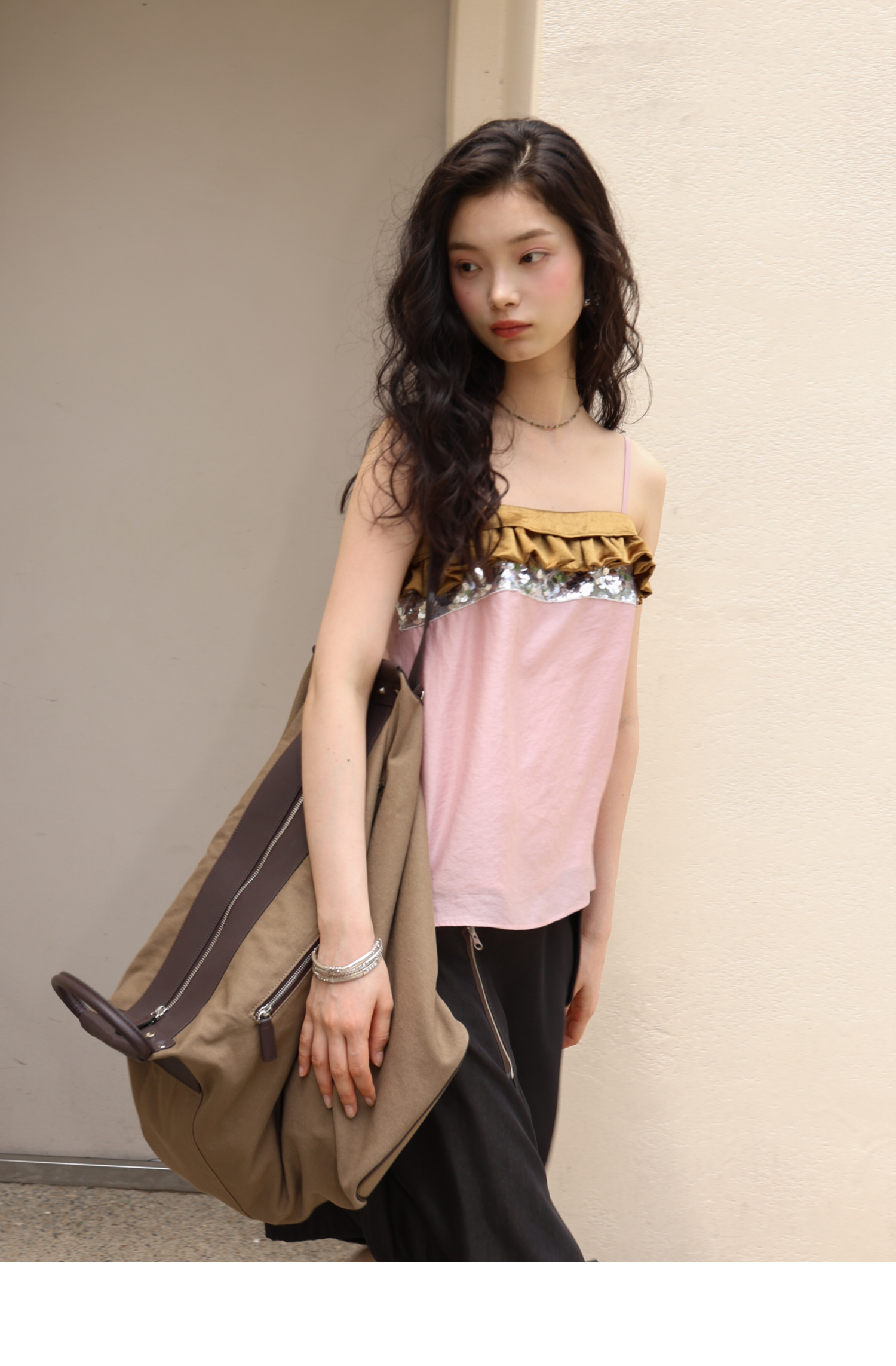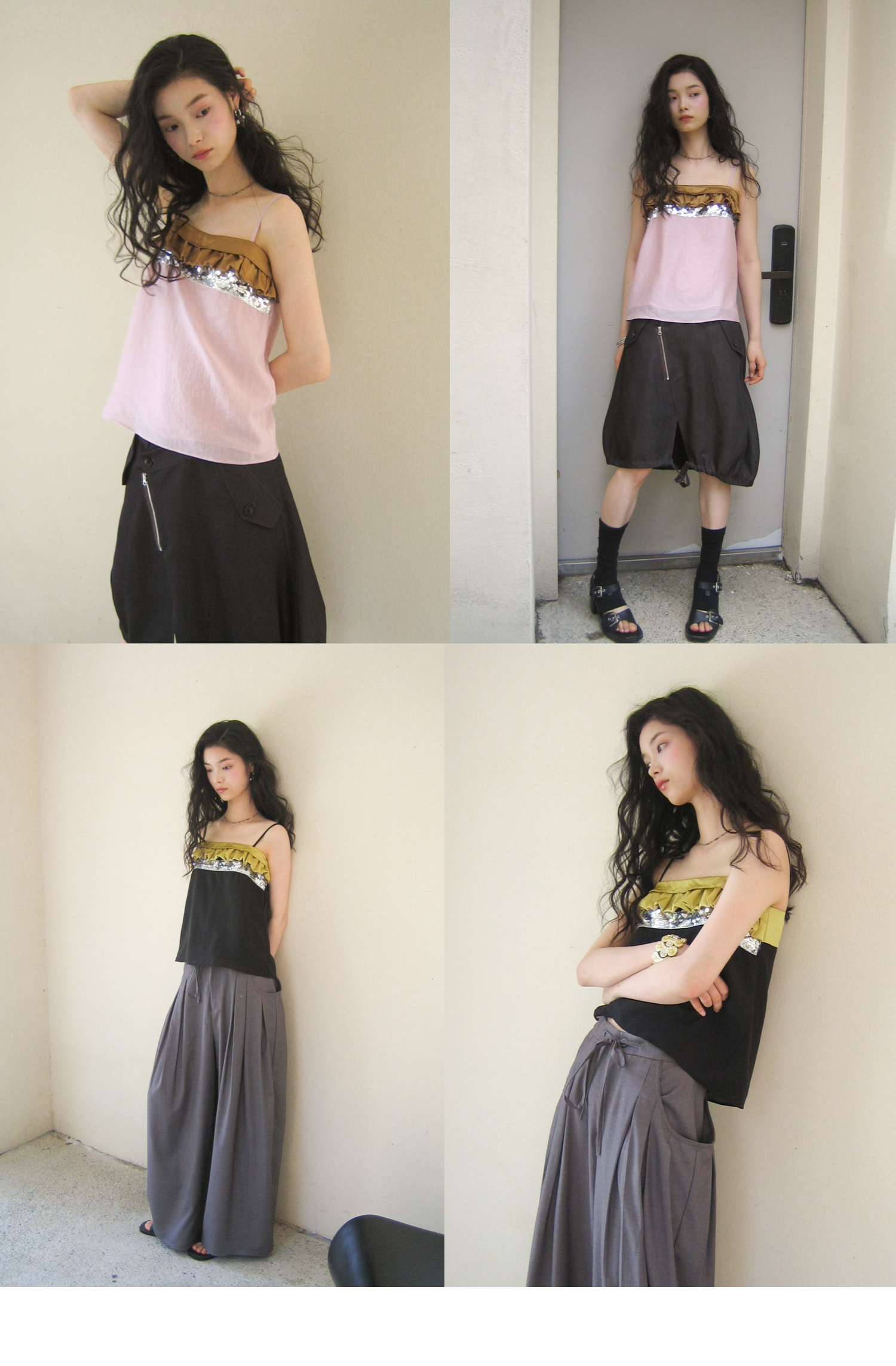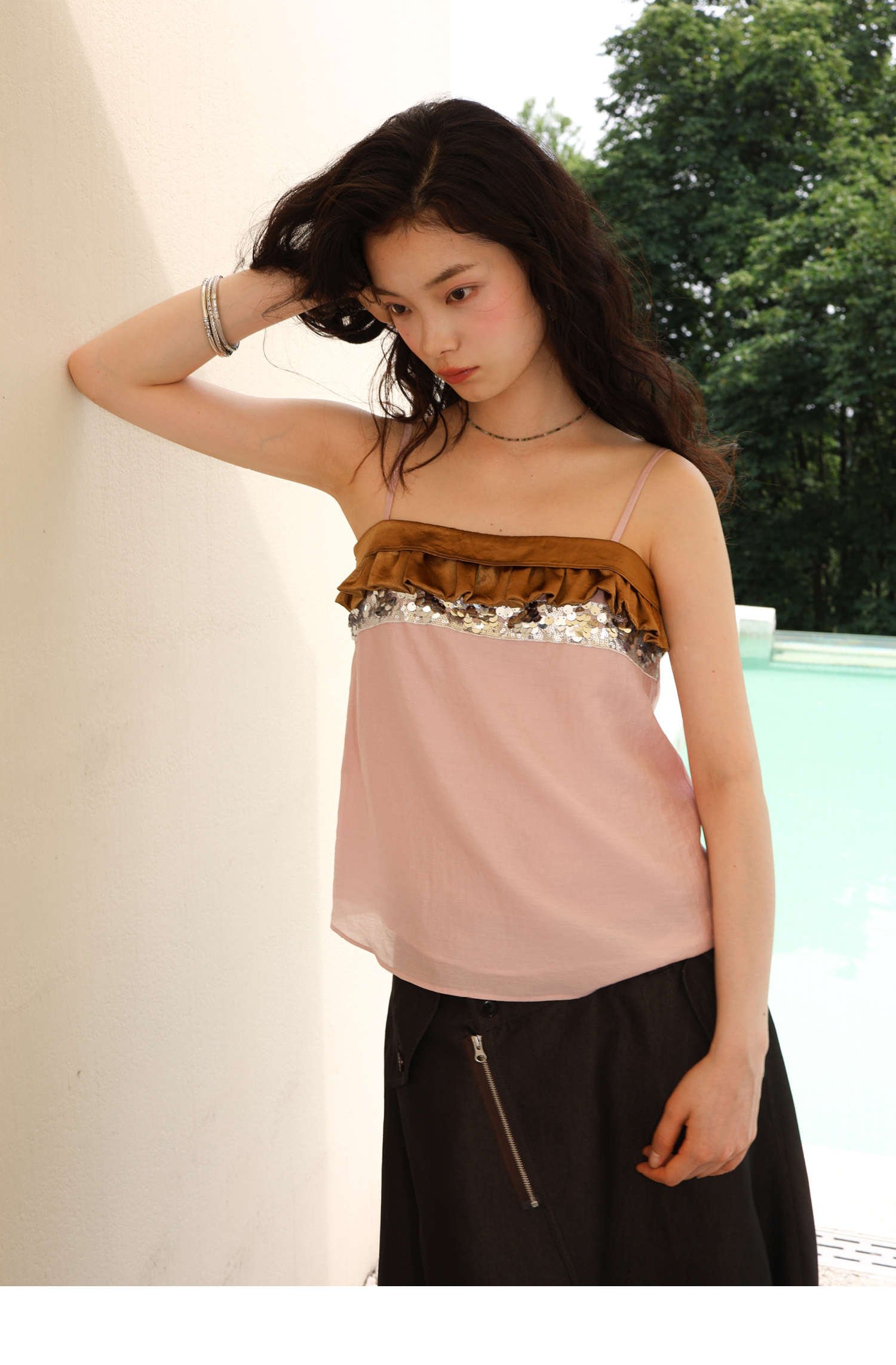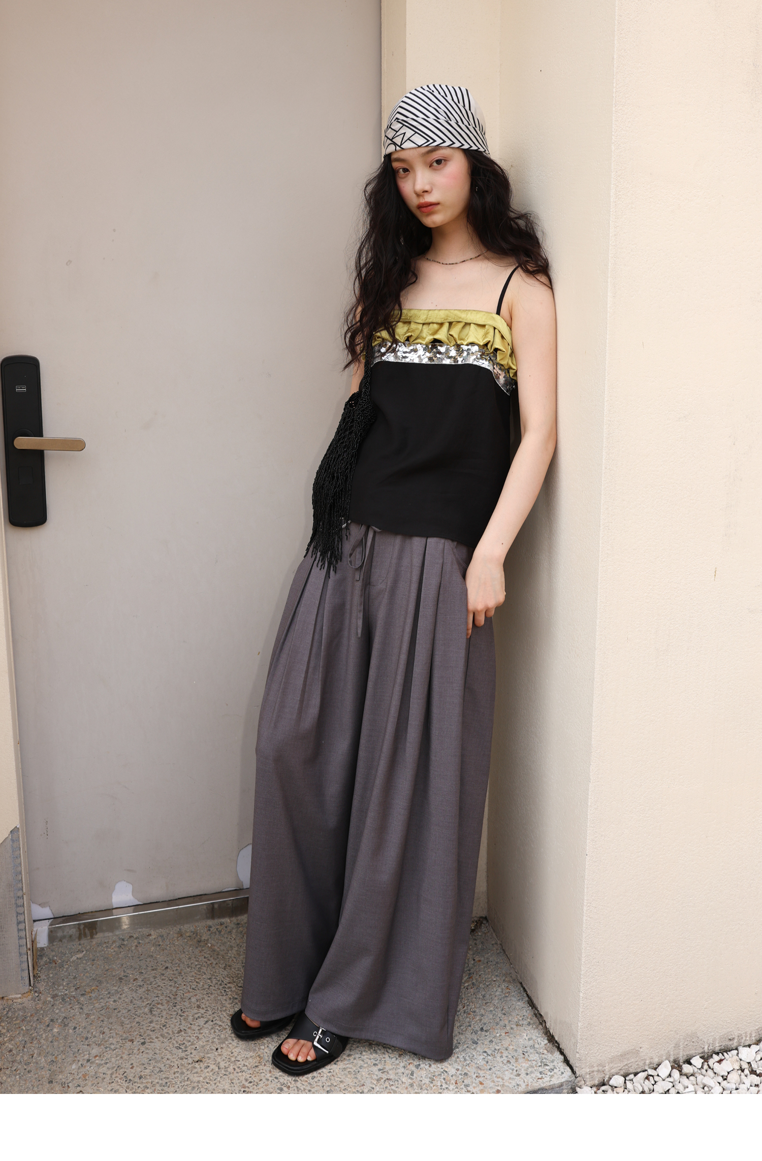 素舶 醋酸混纺光泽感透气撞色亮片织带吊带背心