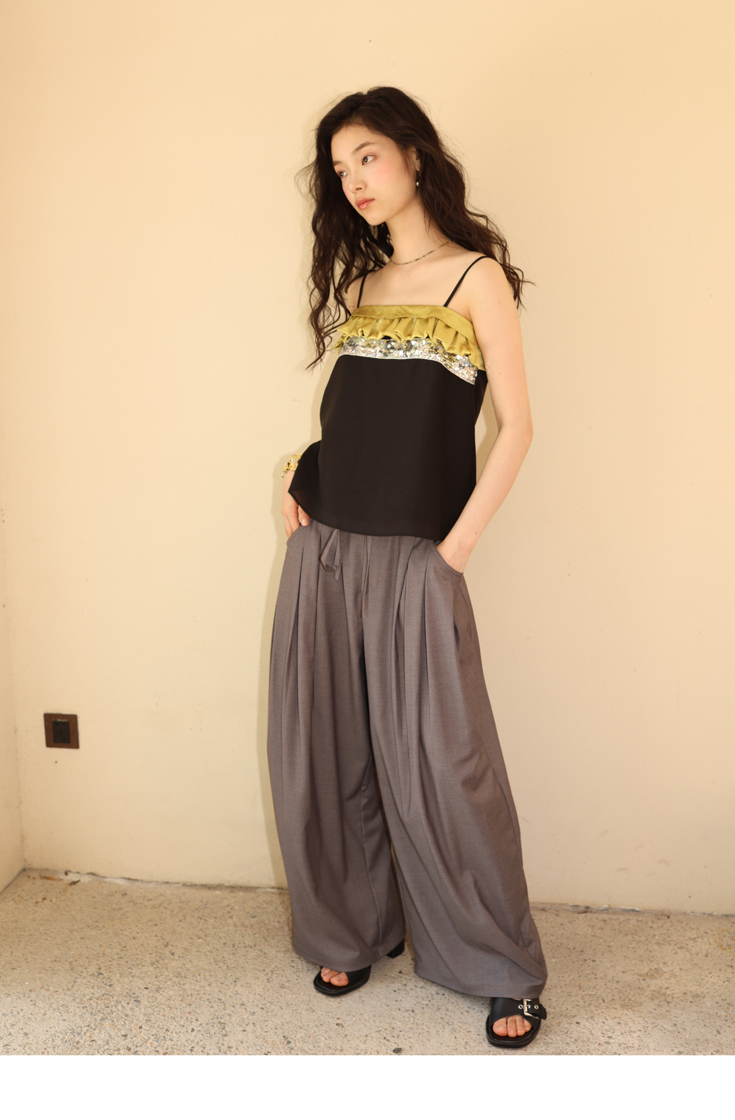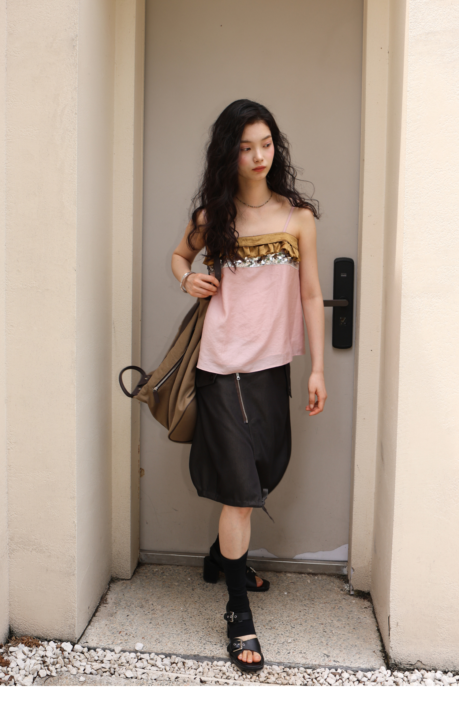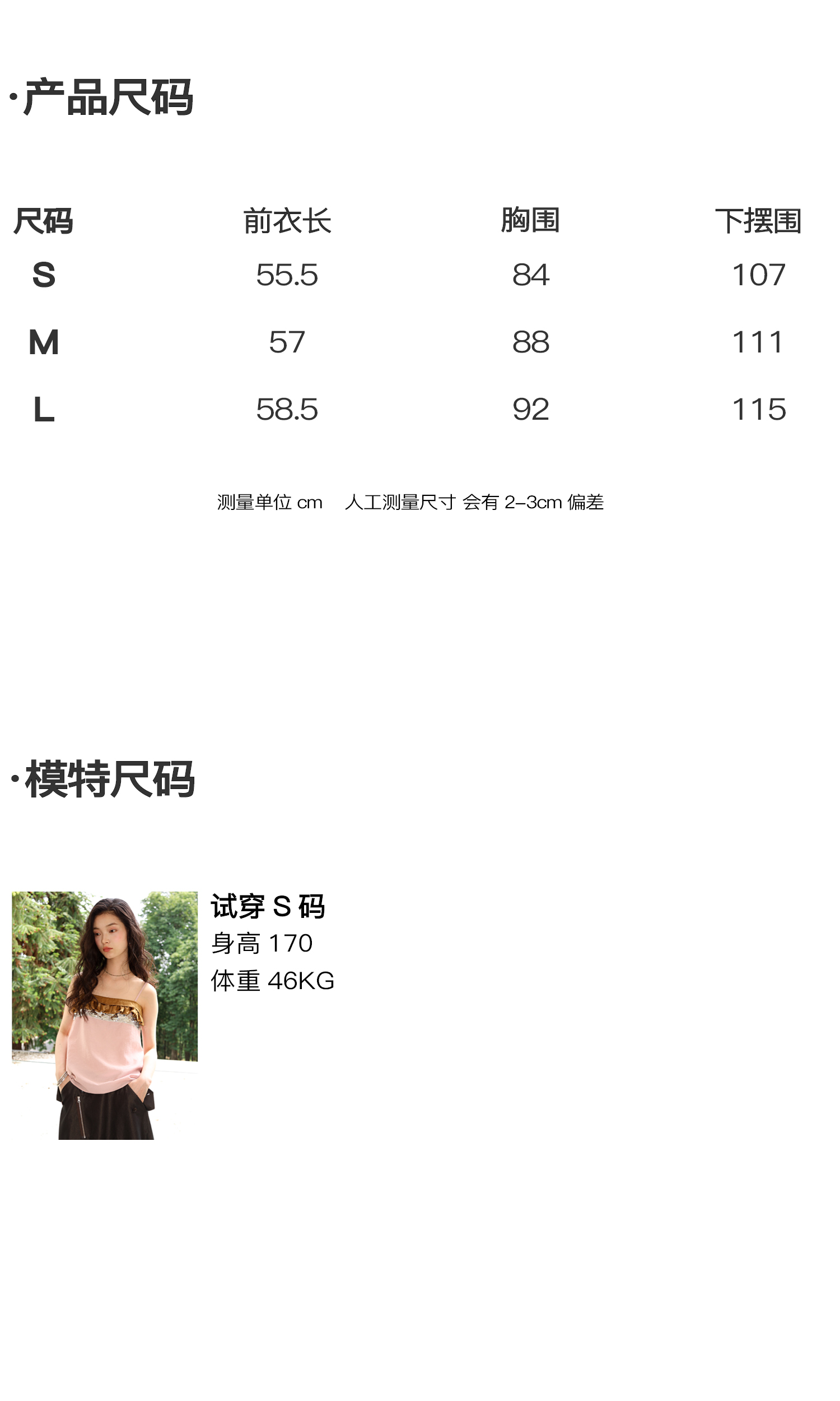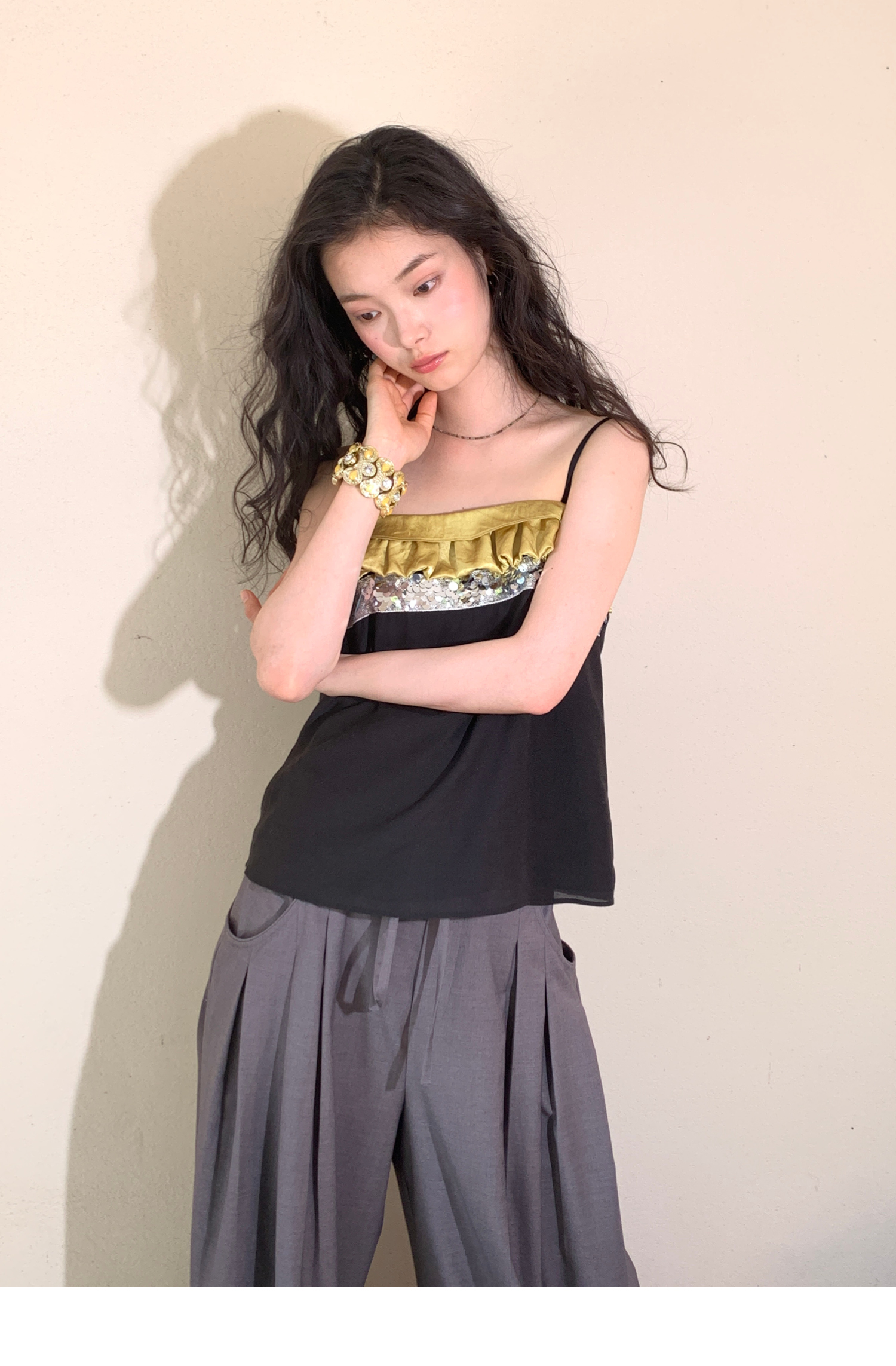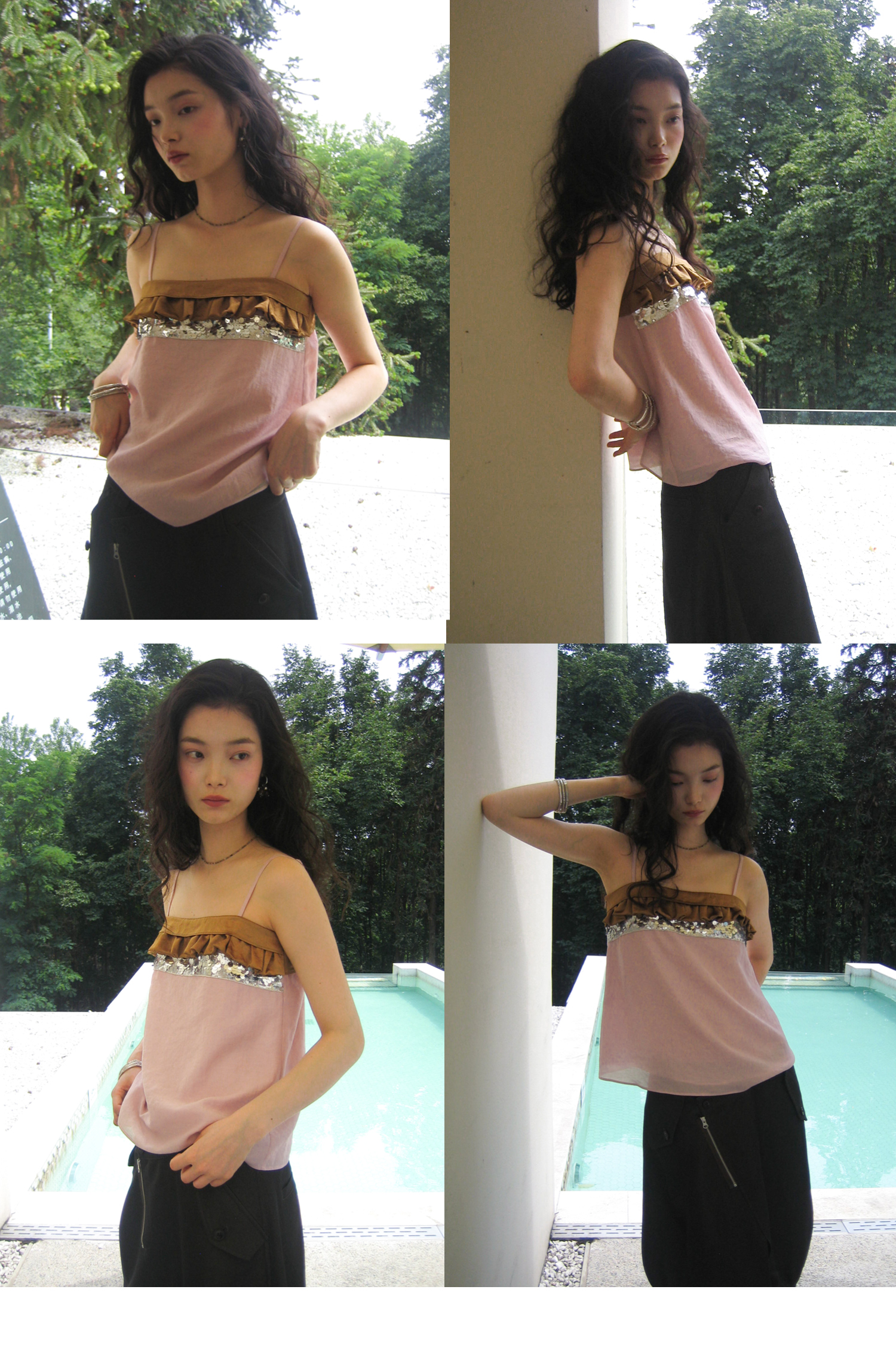素舶 醋酸混纺光泽感透气撞色亮片织带吊带背心