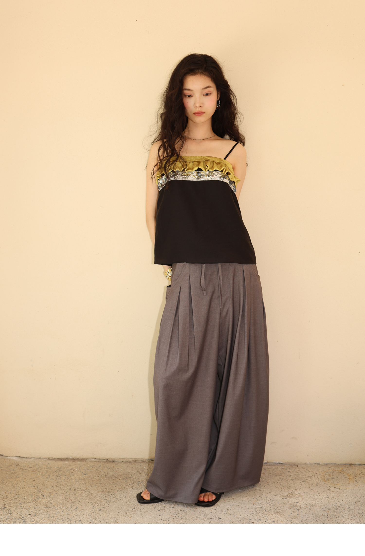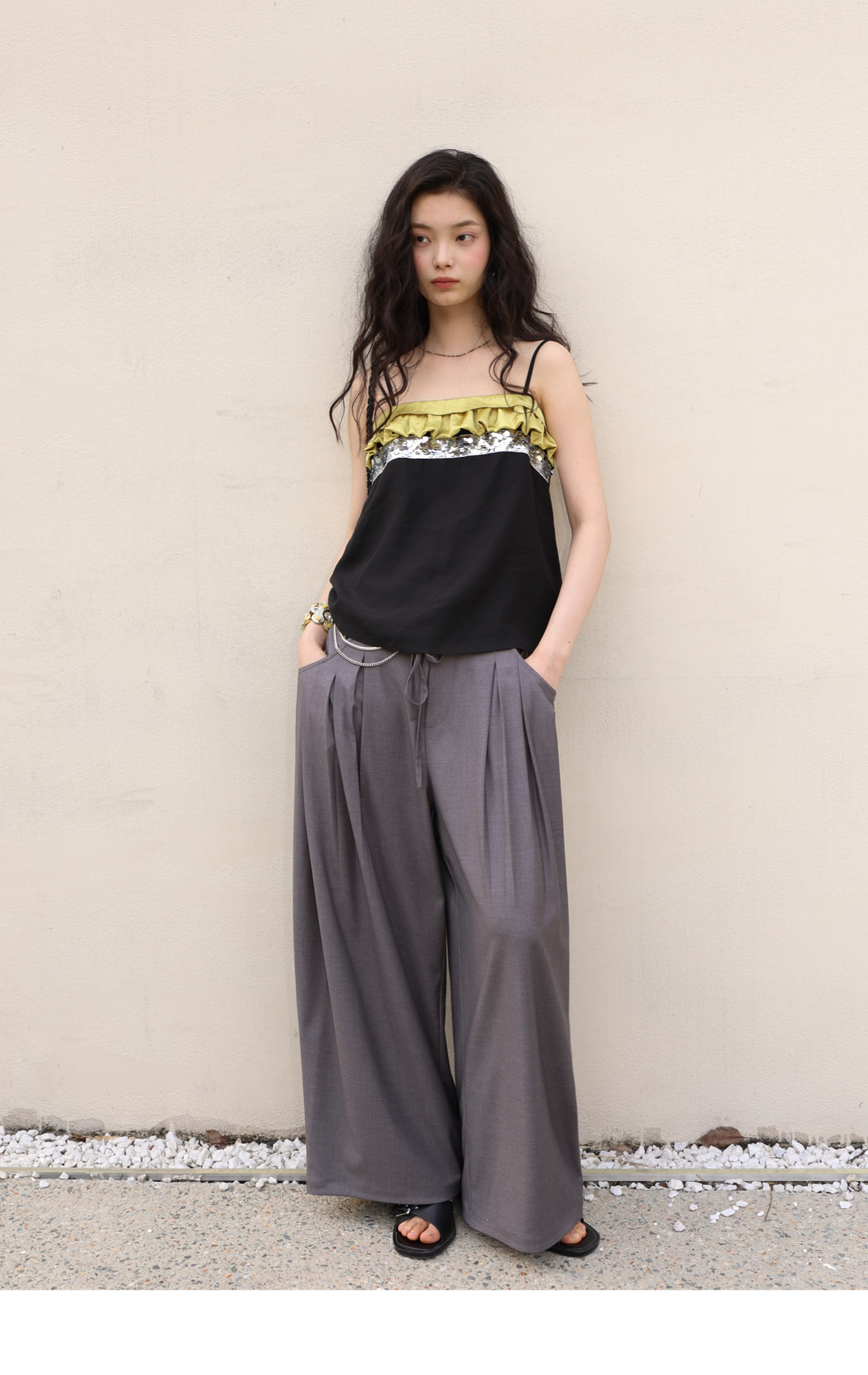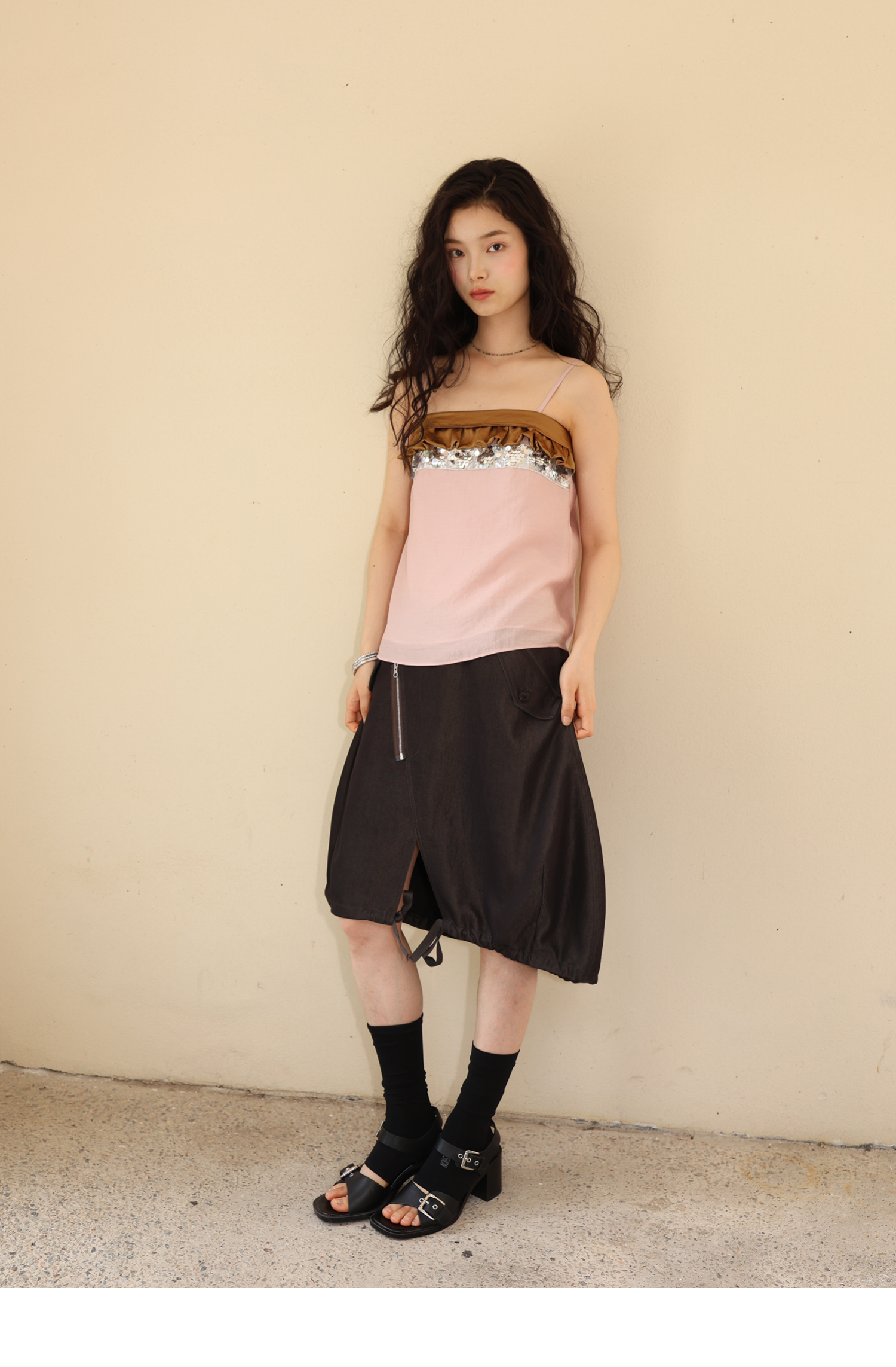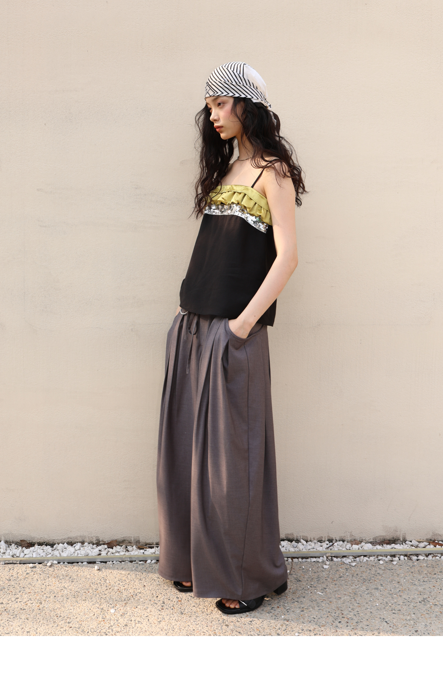 素舶 醋酸混纺光泽感透气撞色亮片织带吊带背心