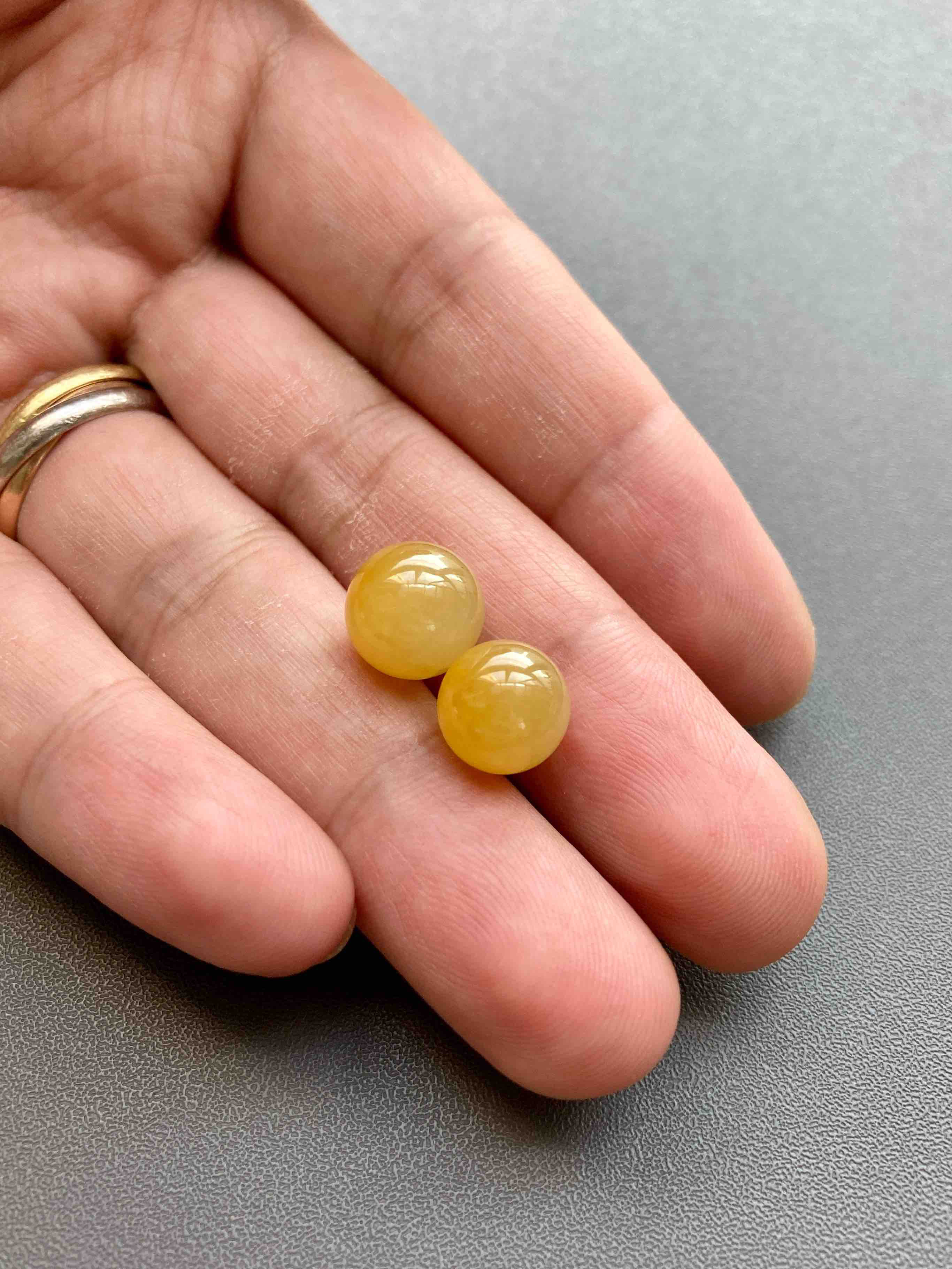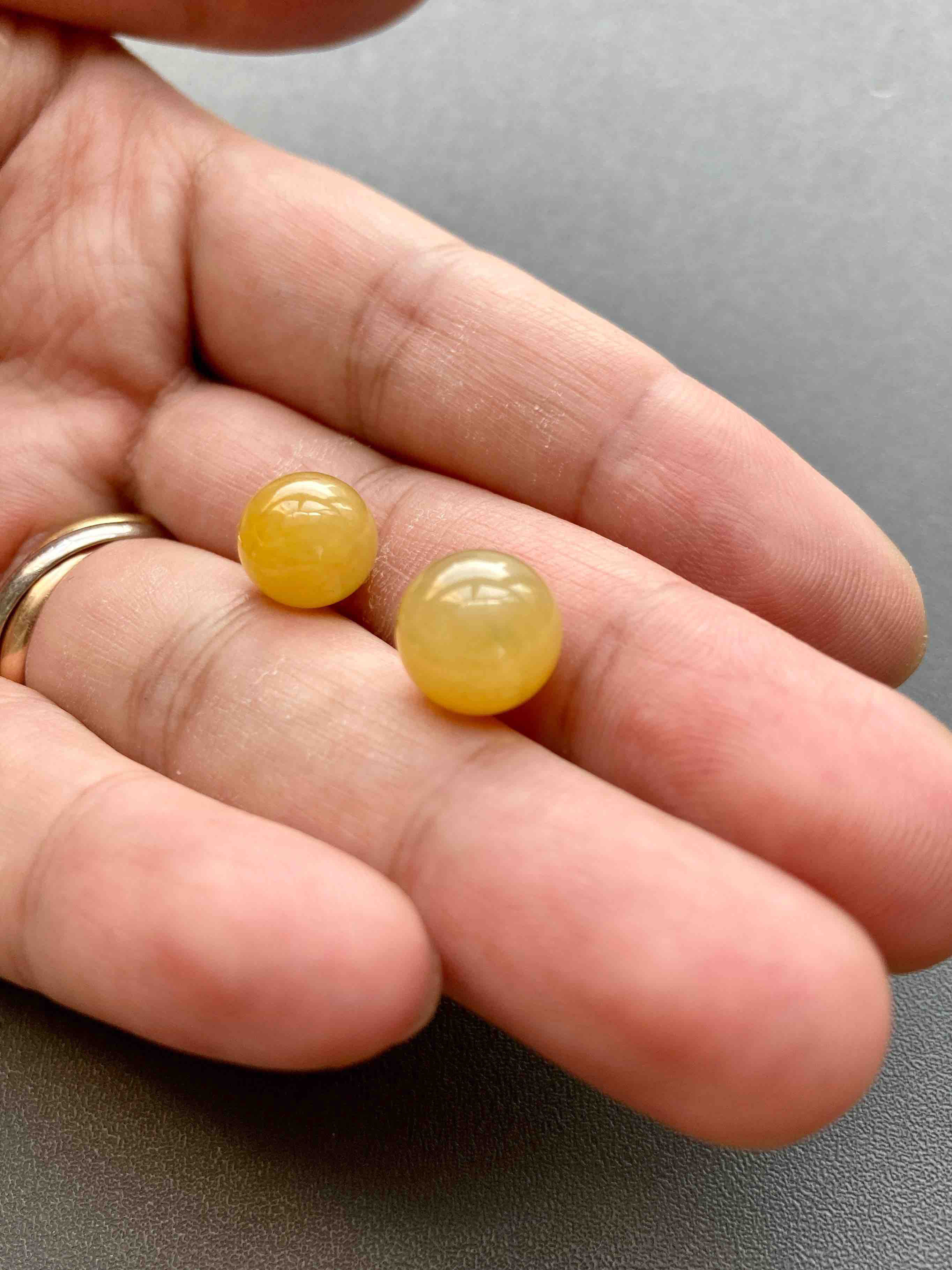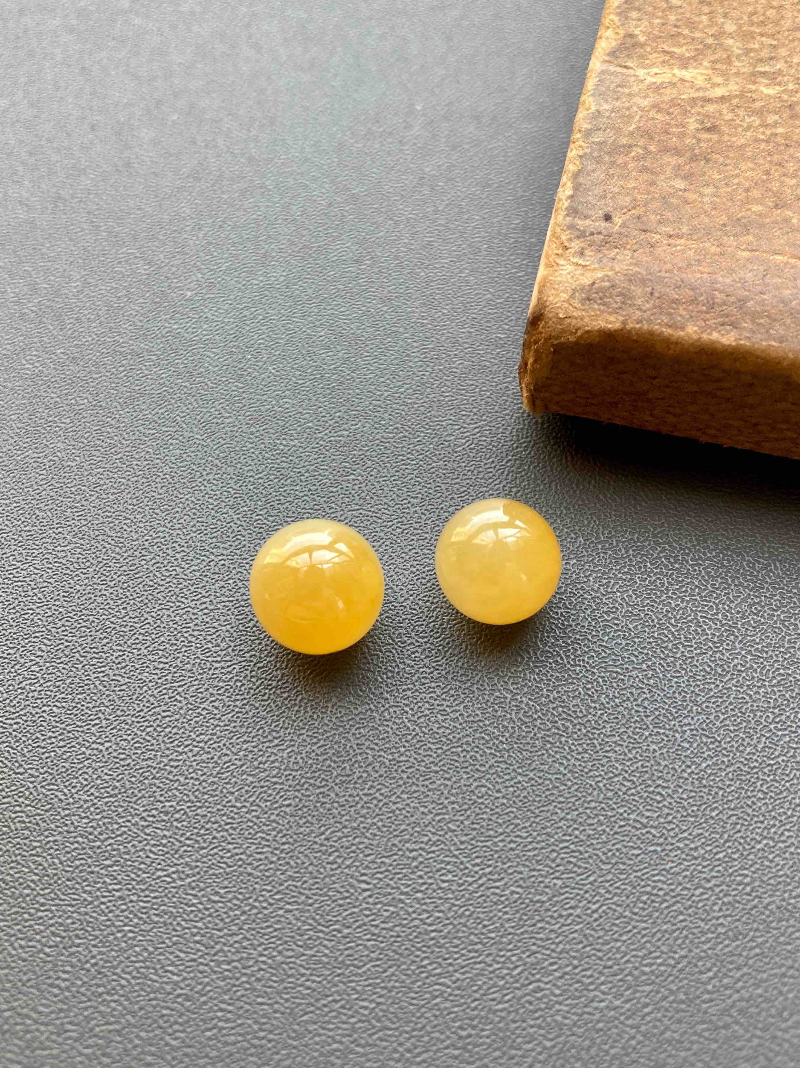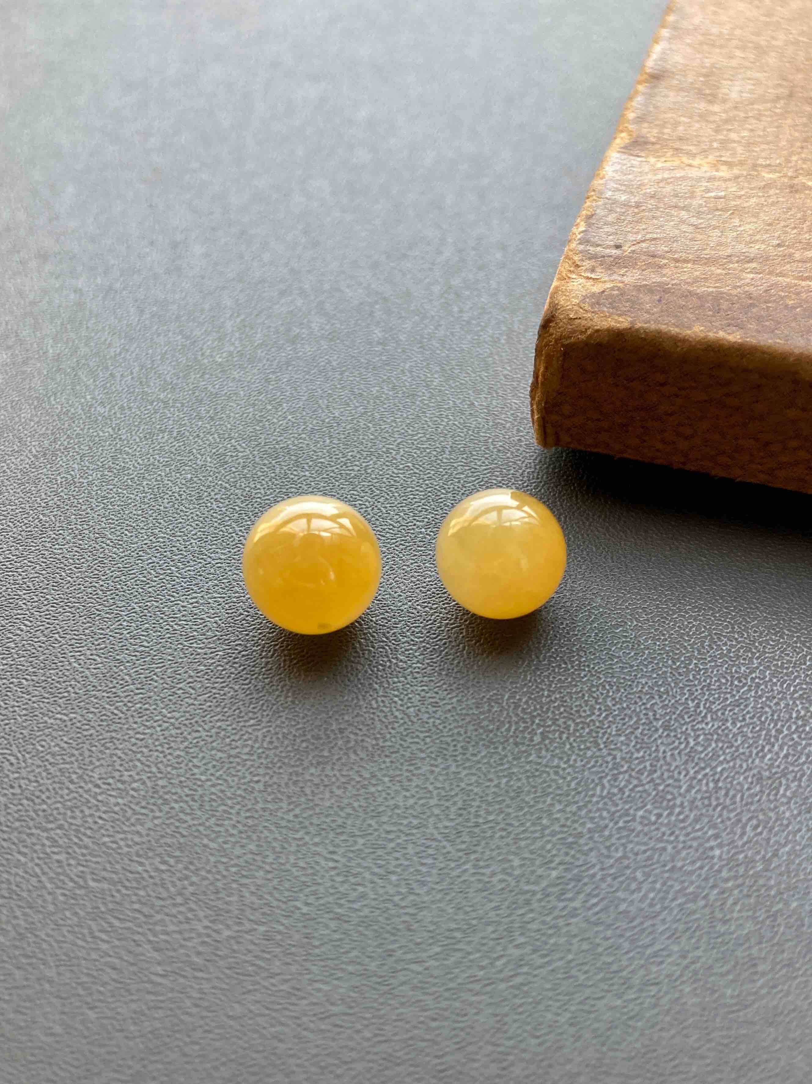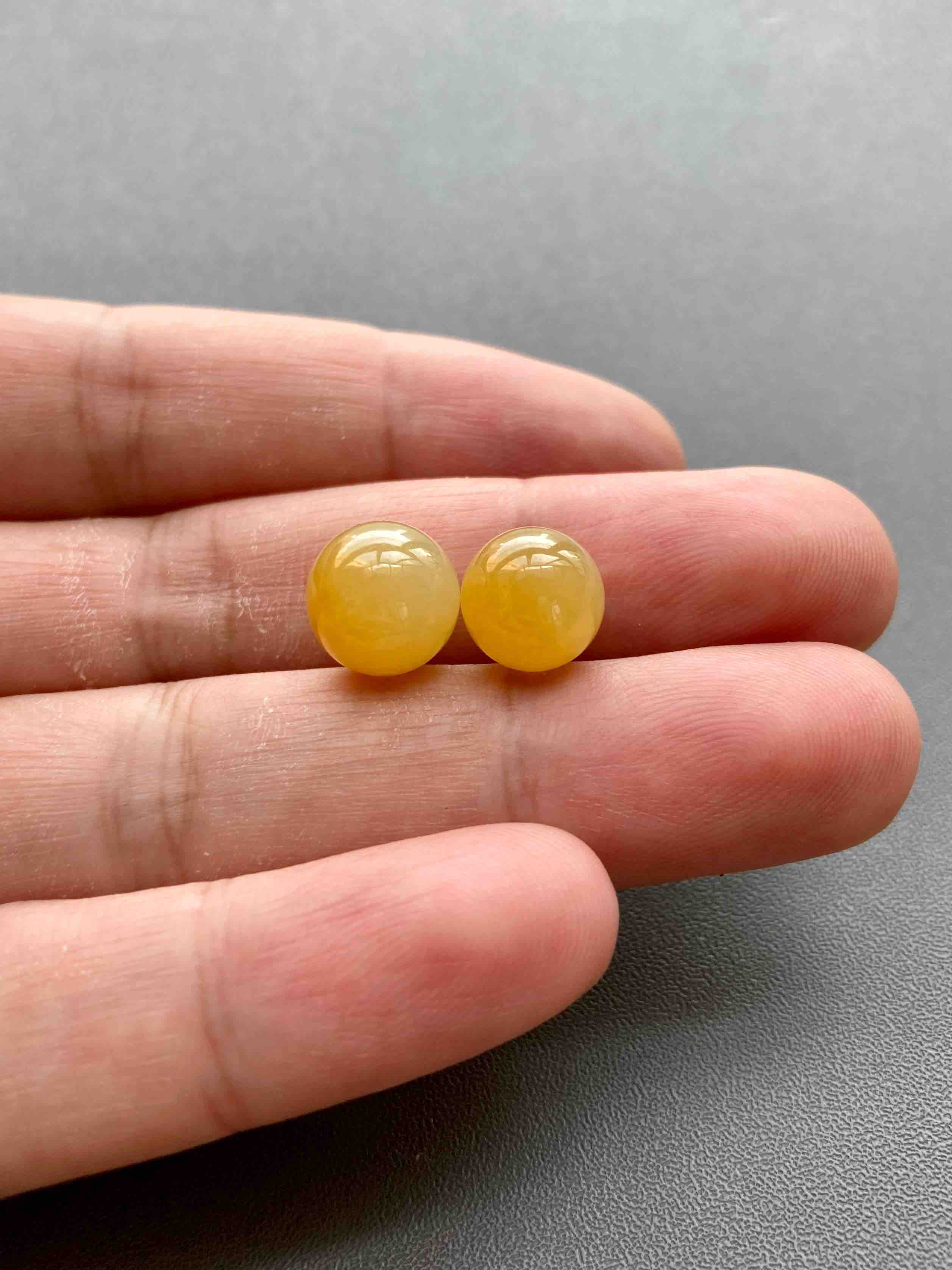珠子来咯,稀有糯冰种鸡油黄,种水晶莹剔透,细腻莹润,整个化开了,果冻般质感,珠子10mm和9.4mm,不可多得的尺寸,可打孔,可绑手绳,可做吊坠