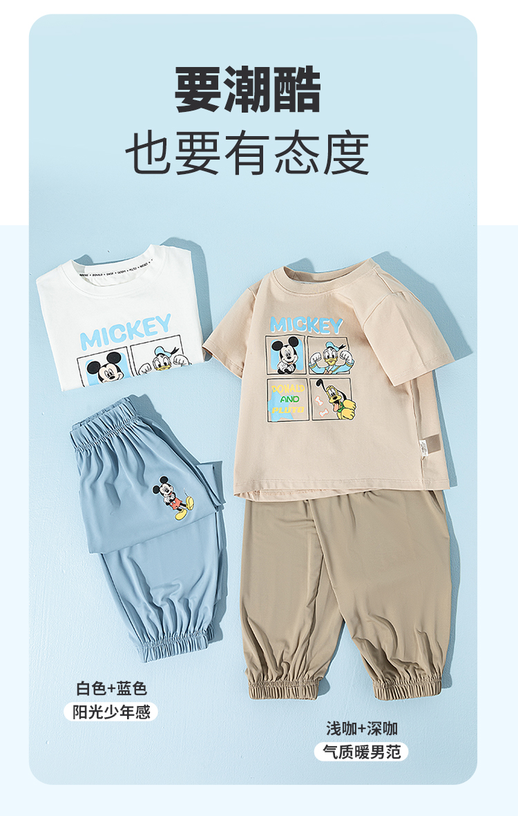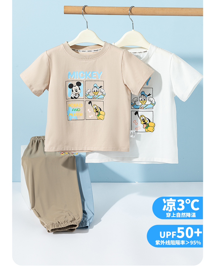 【米奇凉感T恤防蚊长裤套装】夏季新款男童冰感短袖轻薄休闲长裤ZD2ET024