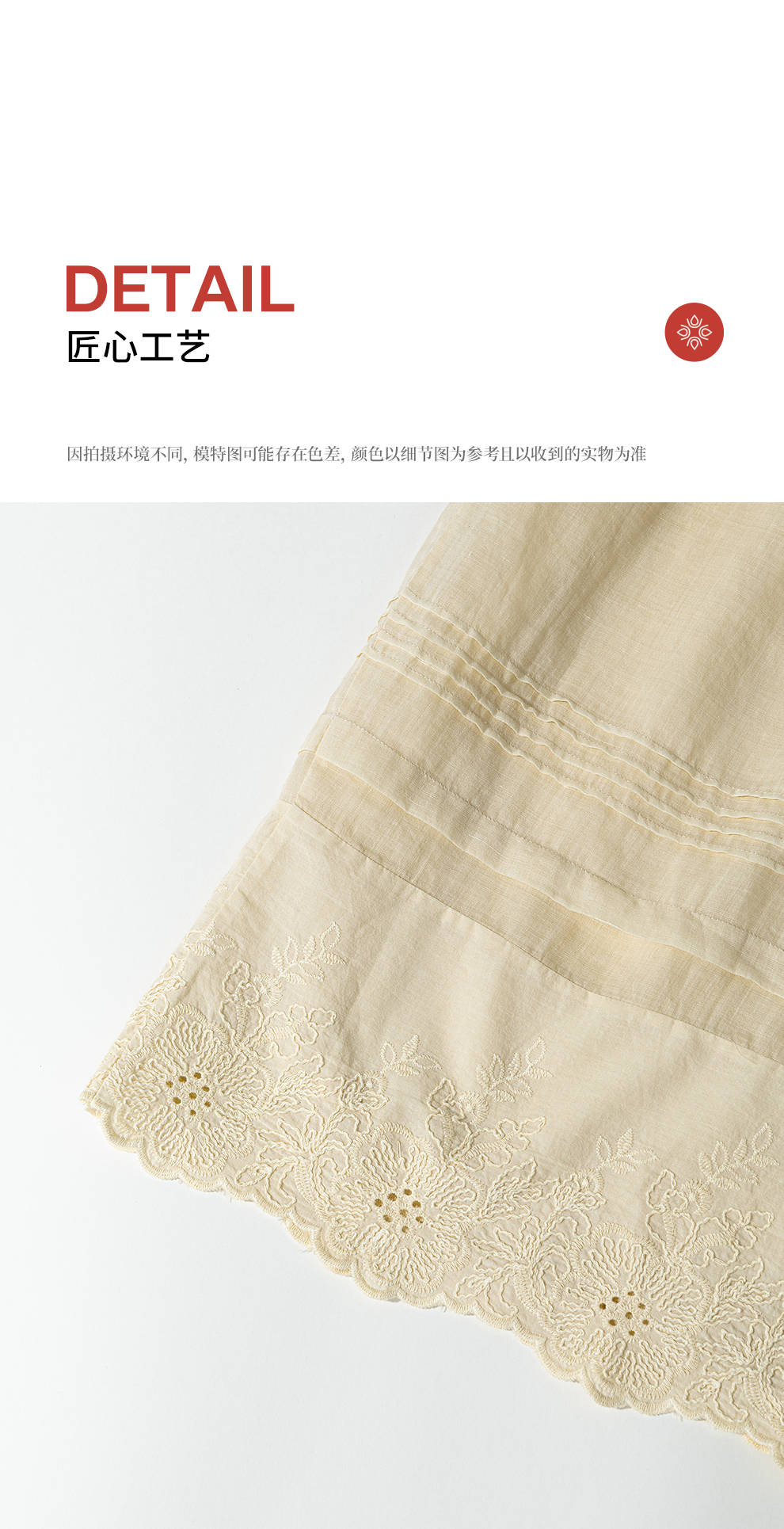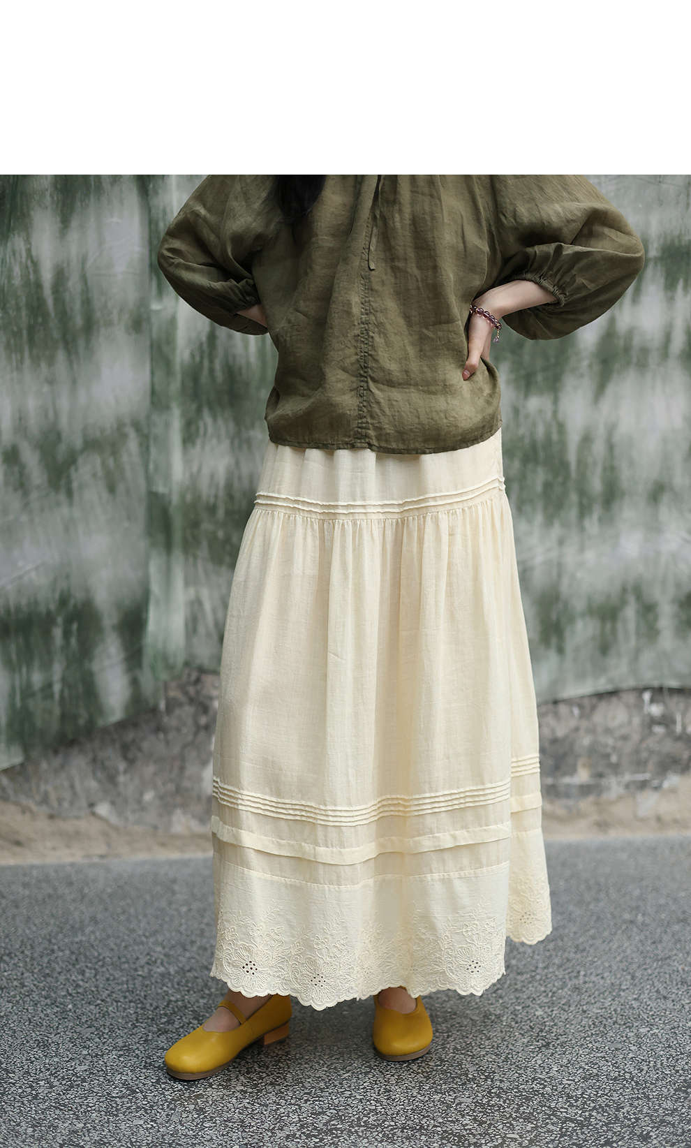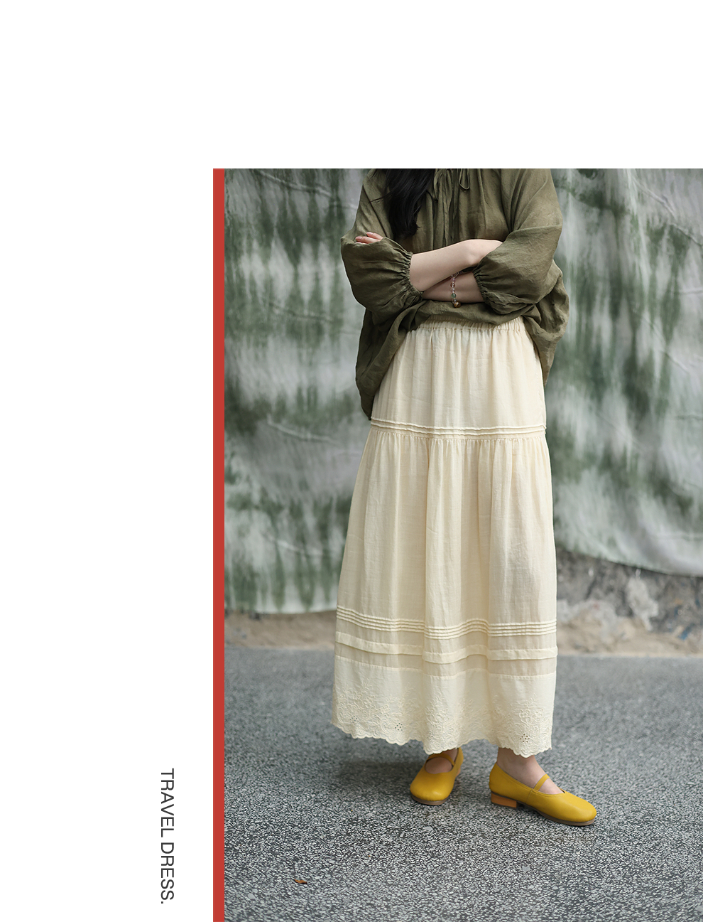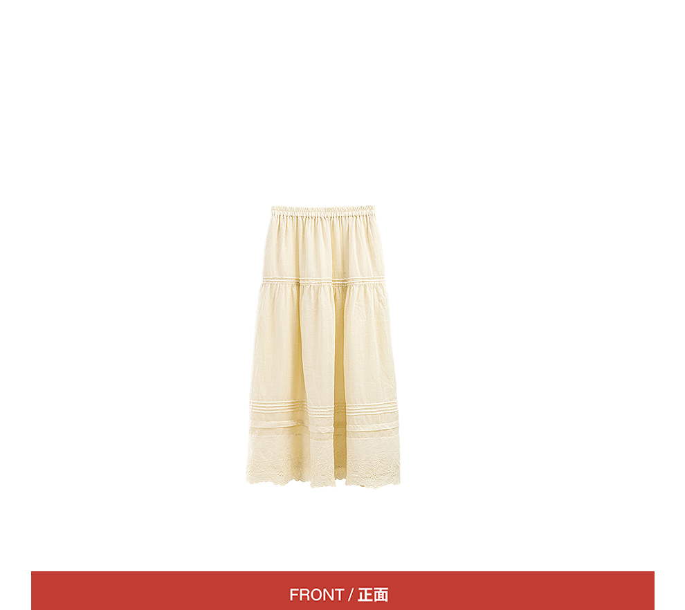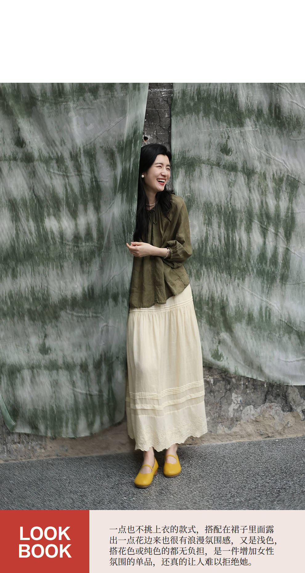 绽放旅行女装306朵/【甜茶系列·茉莉白茶】砂洗苎麻花边半身长裙