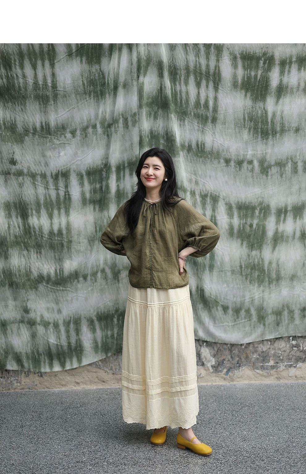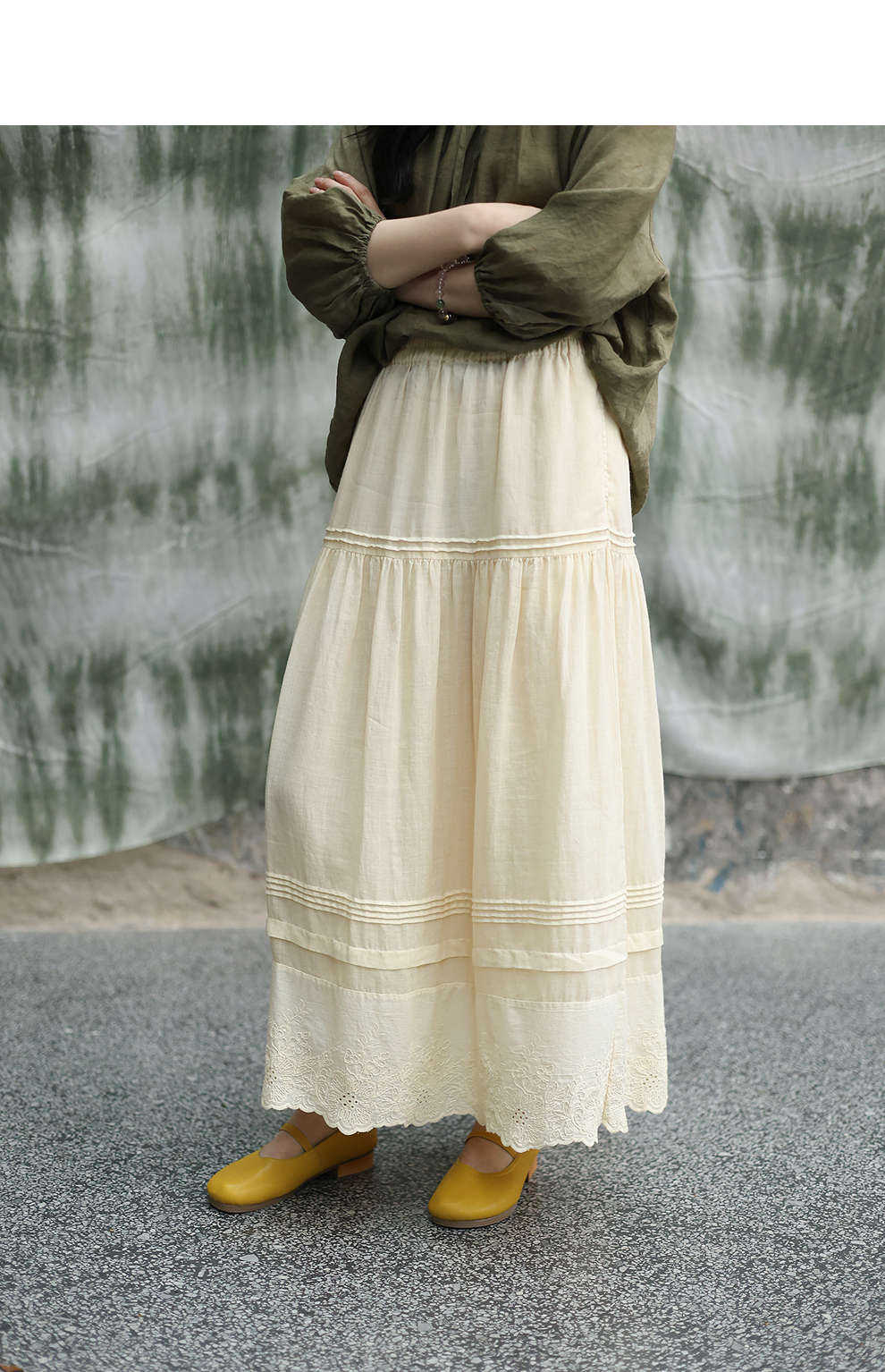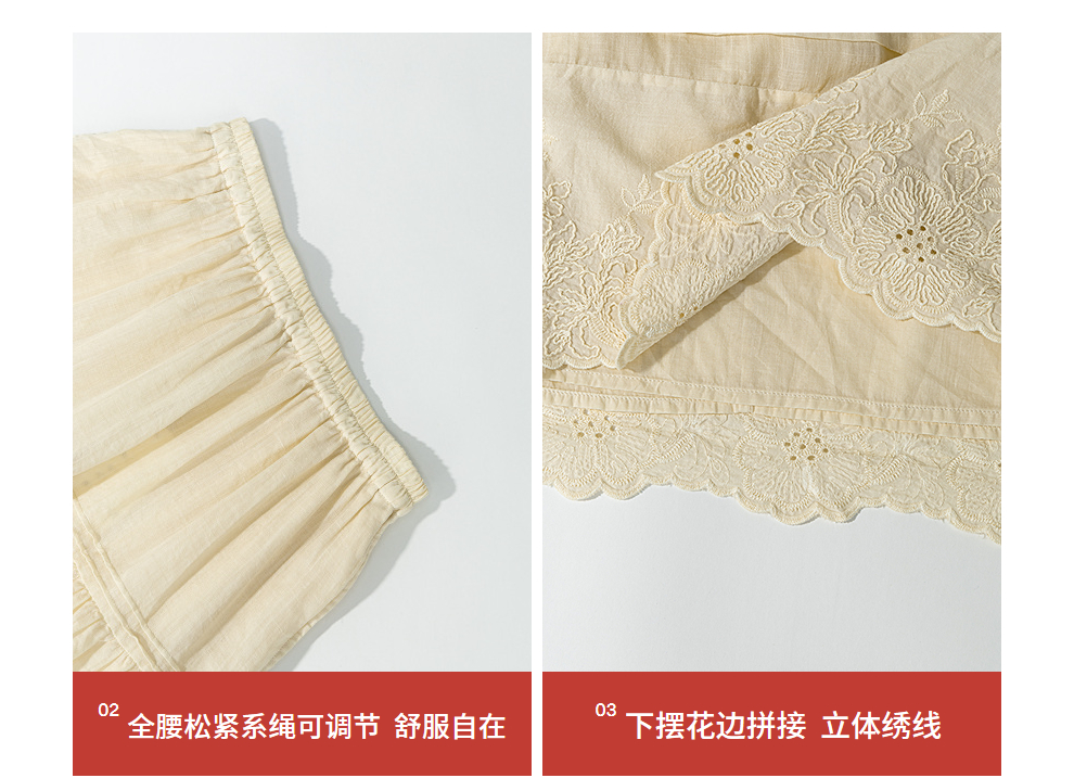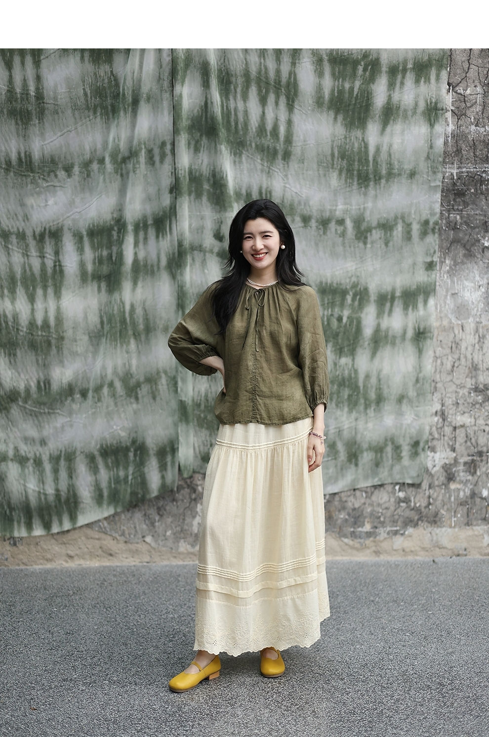 绽放旅行女装306朵/【甜茶系列·茉莉白茶】砂洗苎麻花边半身长裙