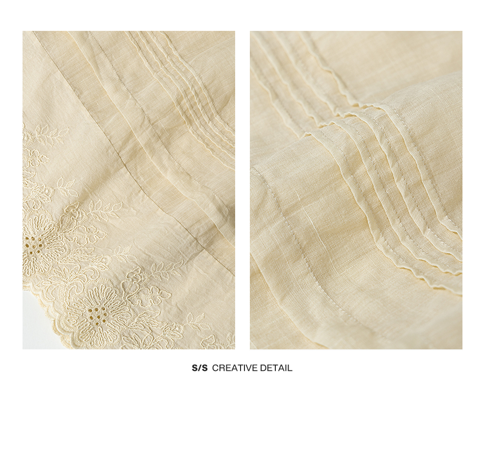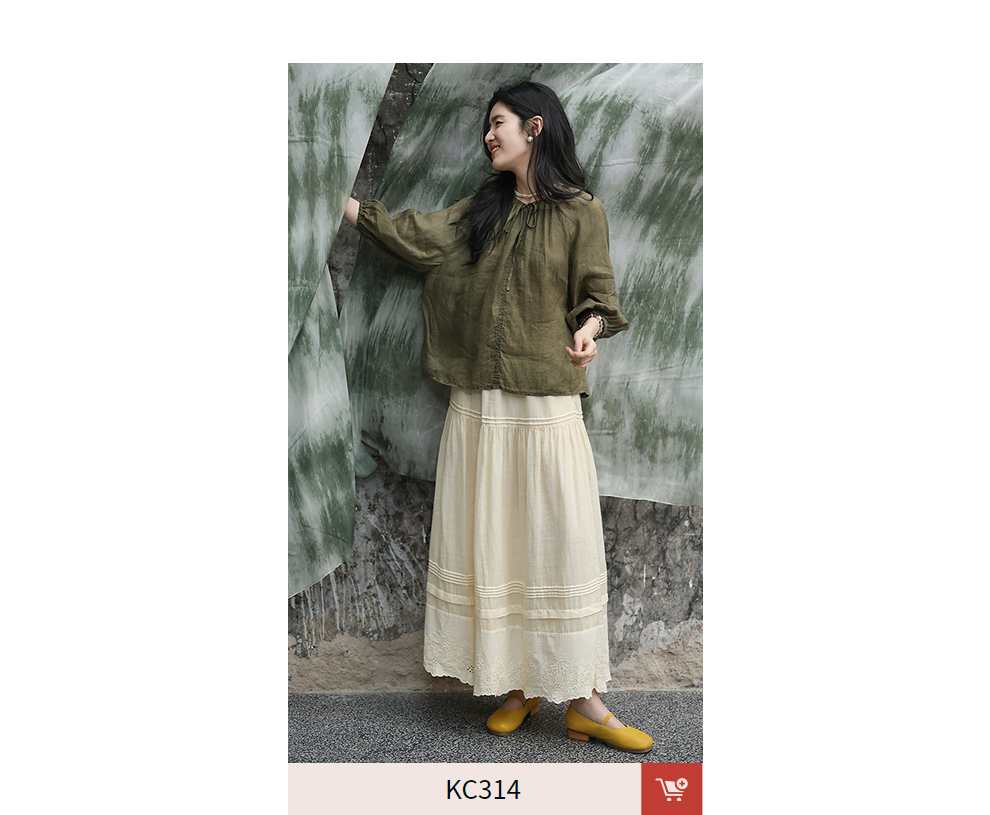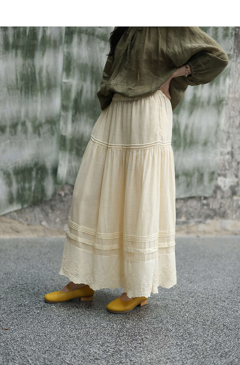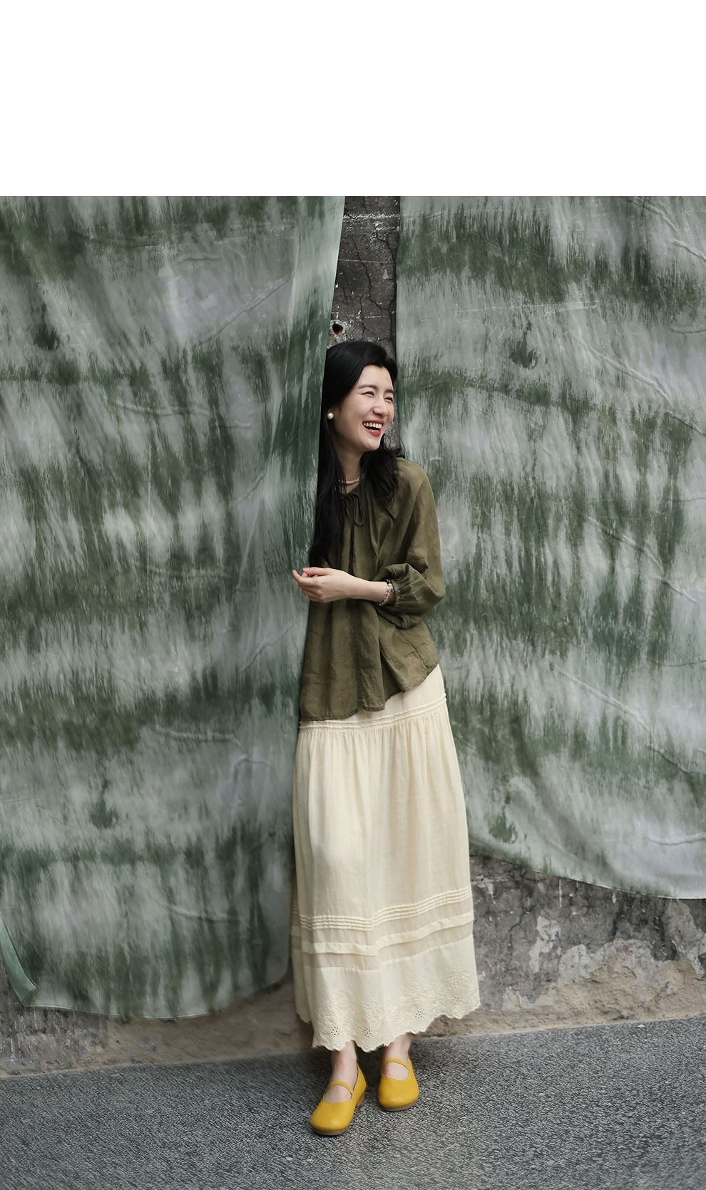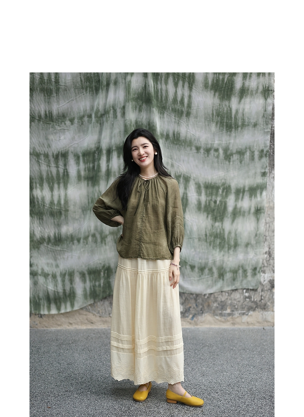 绽放旅行女装306朵/【甜茶系列·茉莉白茶】砂洗苎麻花边半身长裙