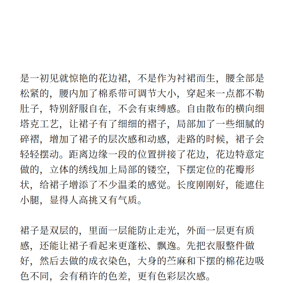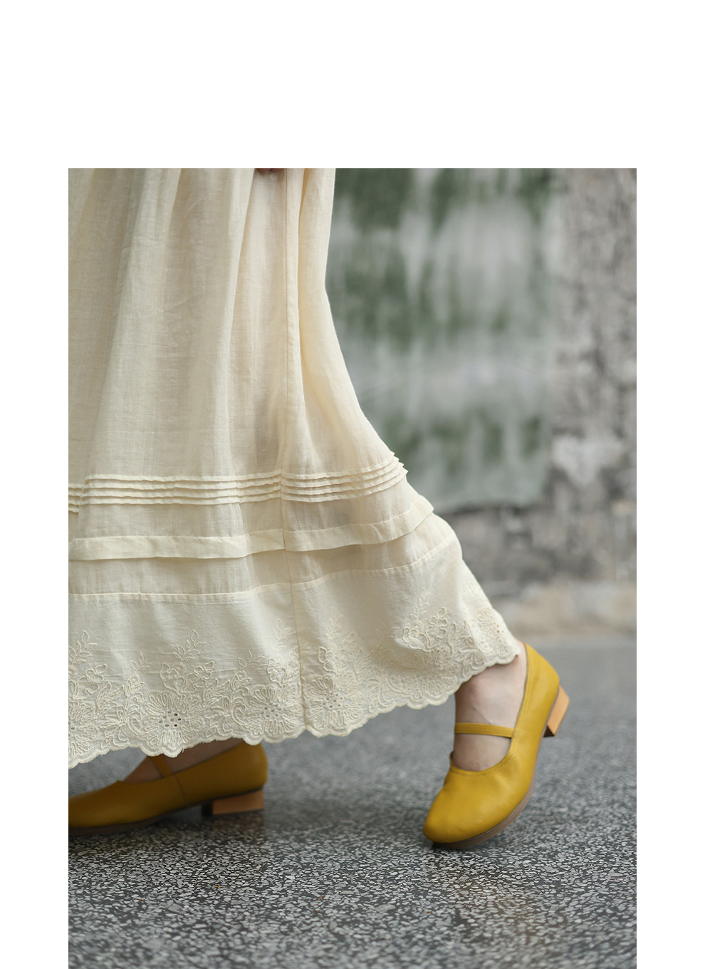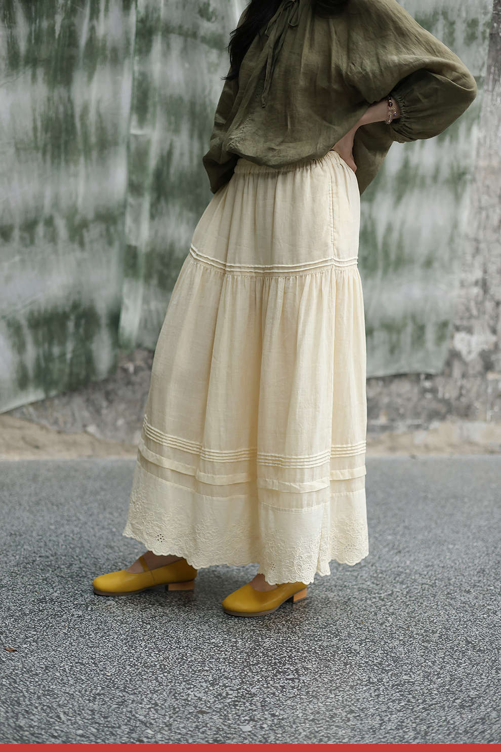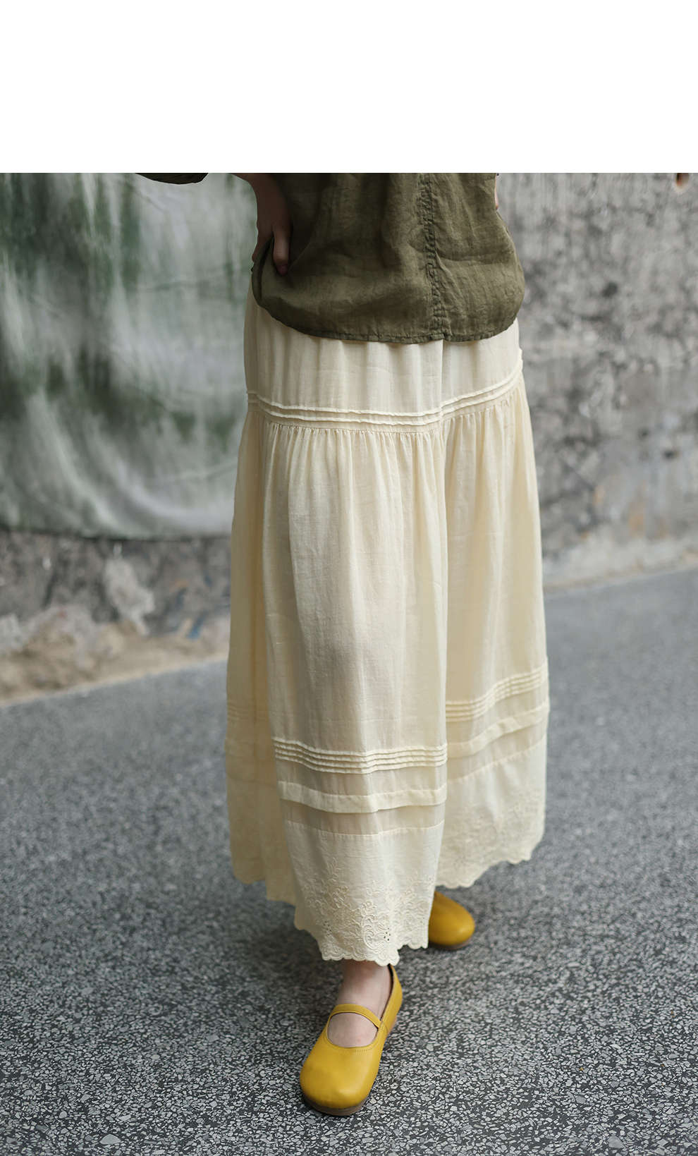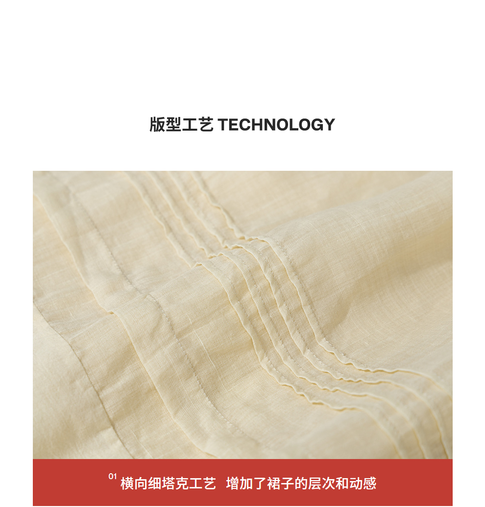 绽放旅行女装306朵/【甜茶系列·茉莉白茶】砂洗苎麻花边半身长裙