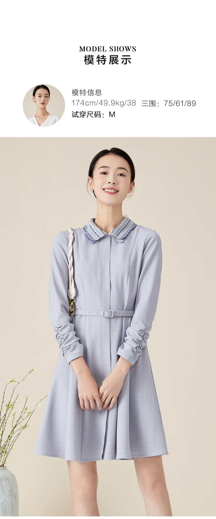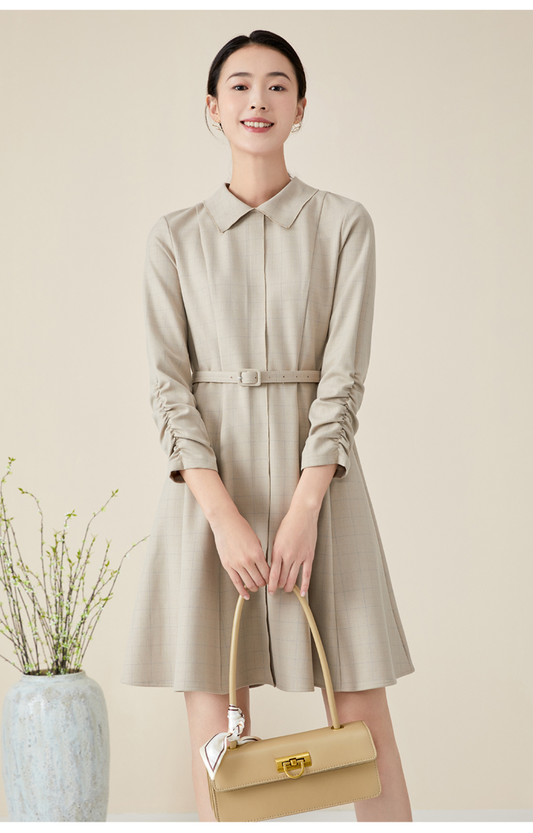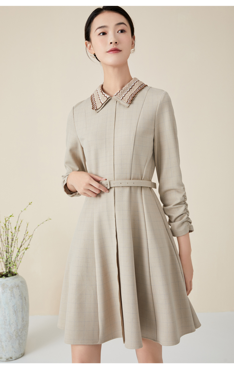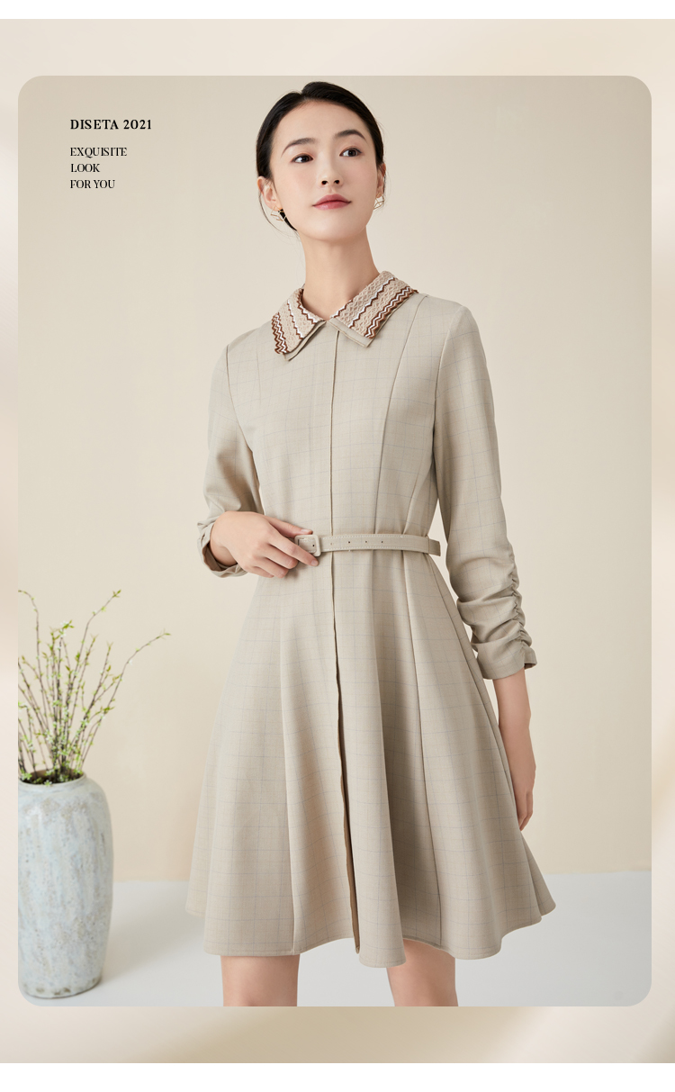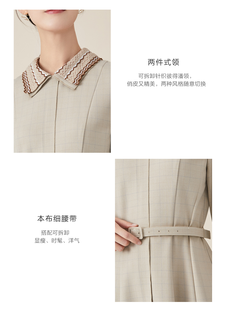 玳莎两件式翻领连衣裙新款早秋气质女装修身显瘦优雅A字裙 BC35302