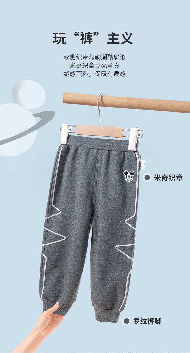【商场同款】 迪士尼童装24秋冬新品男童加绒保暖休闲裤时尚潮流儿童长裤