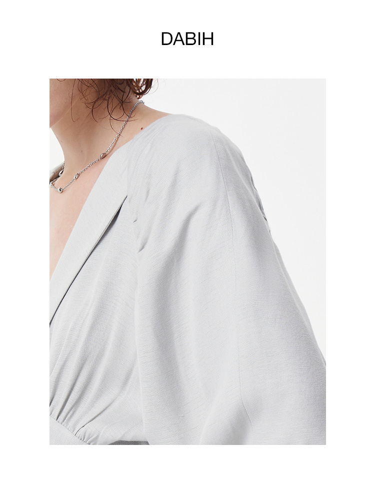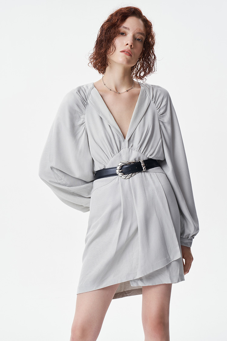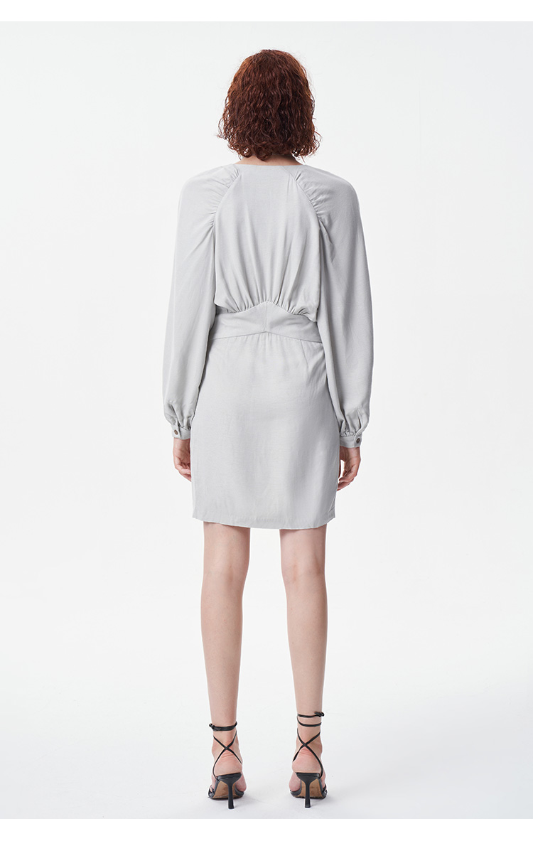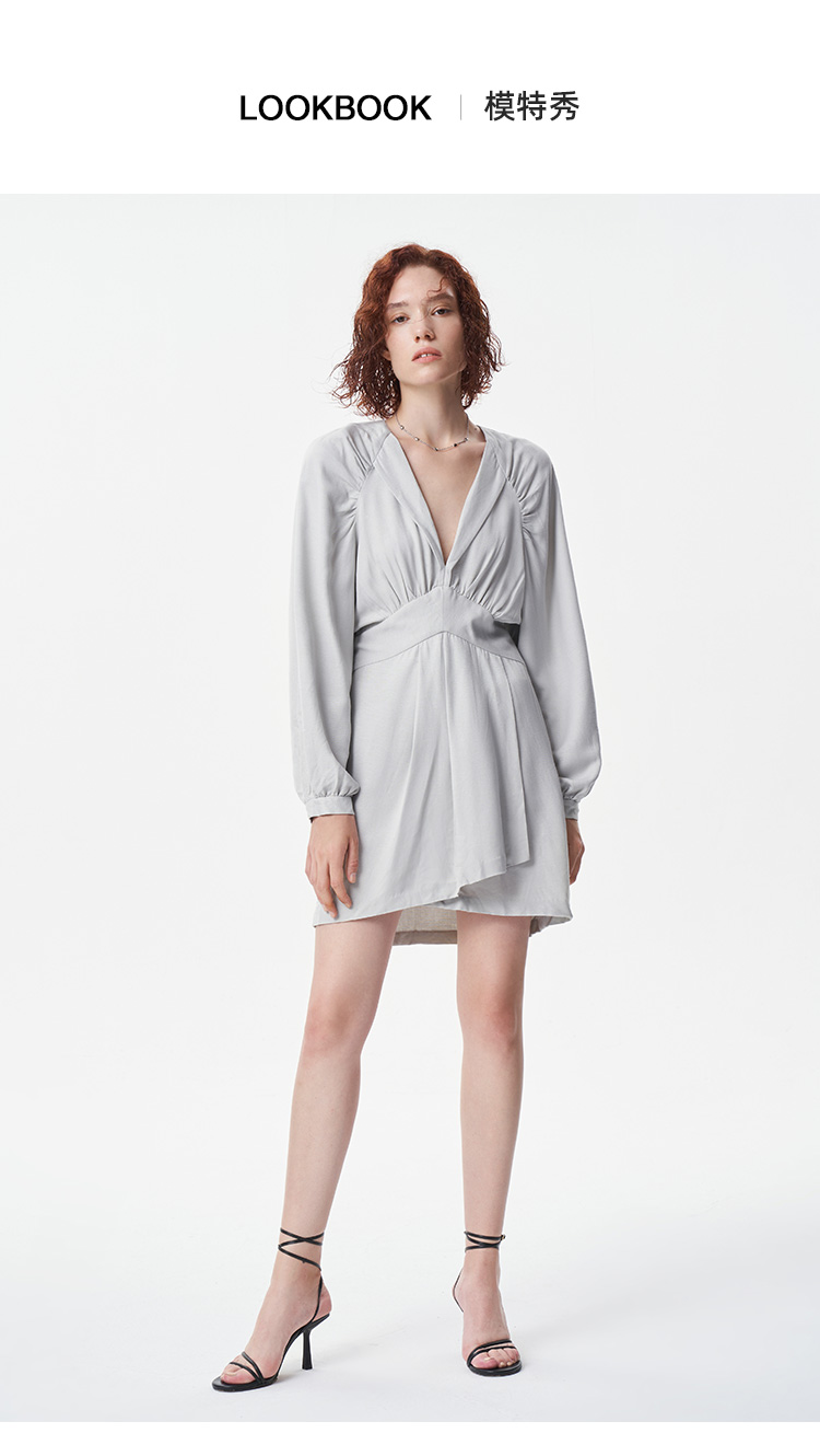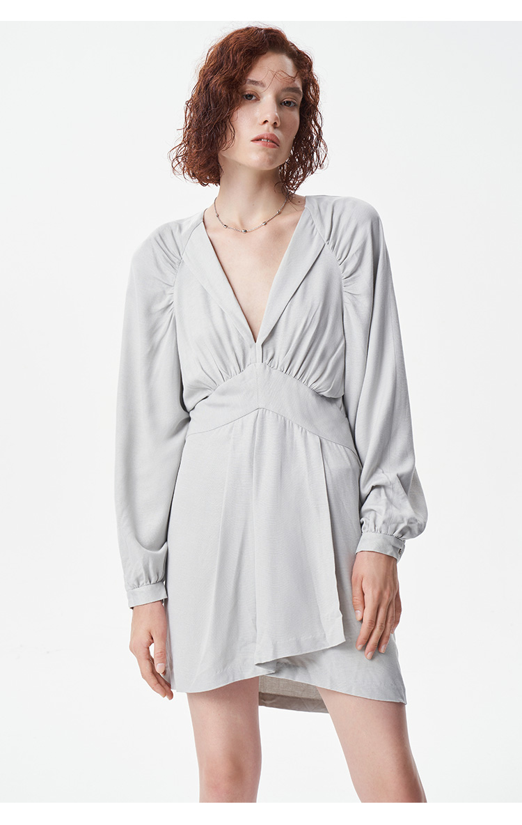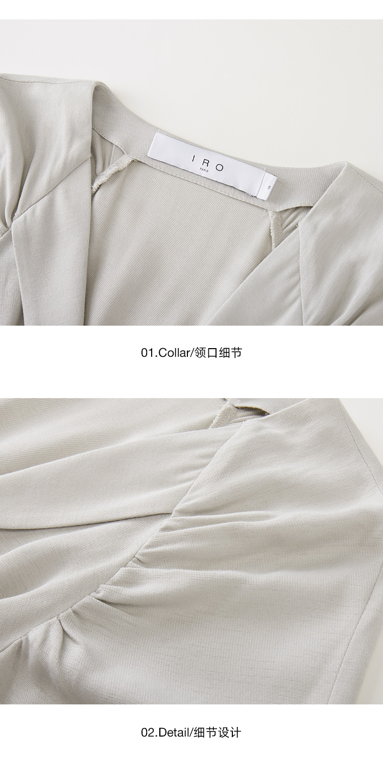 【2F】IRO春季新款法式轻奢女装纯色收腰V领褶皱不规则连衣裙