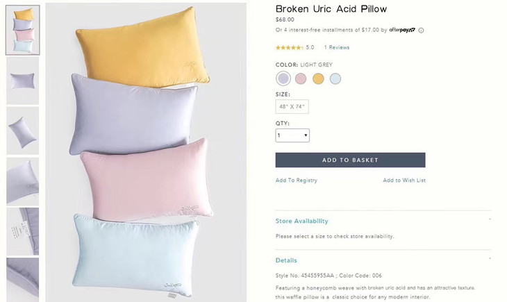 Broken Uric Acid Pillow 玻尿酸枕 官网售价68美刀!