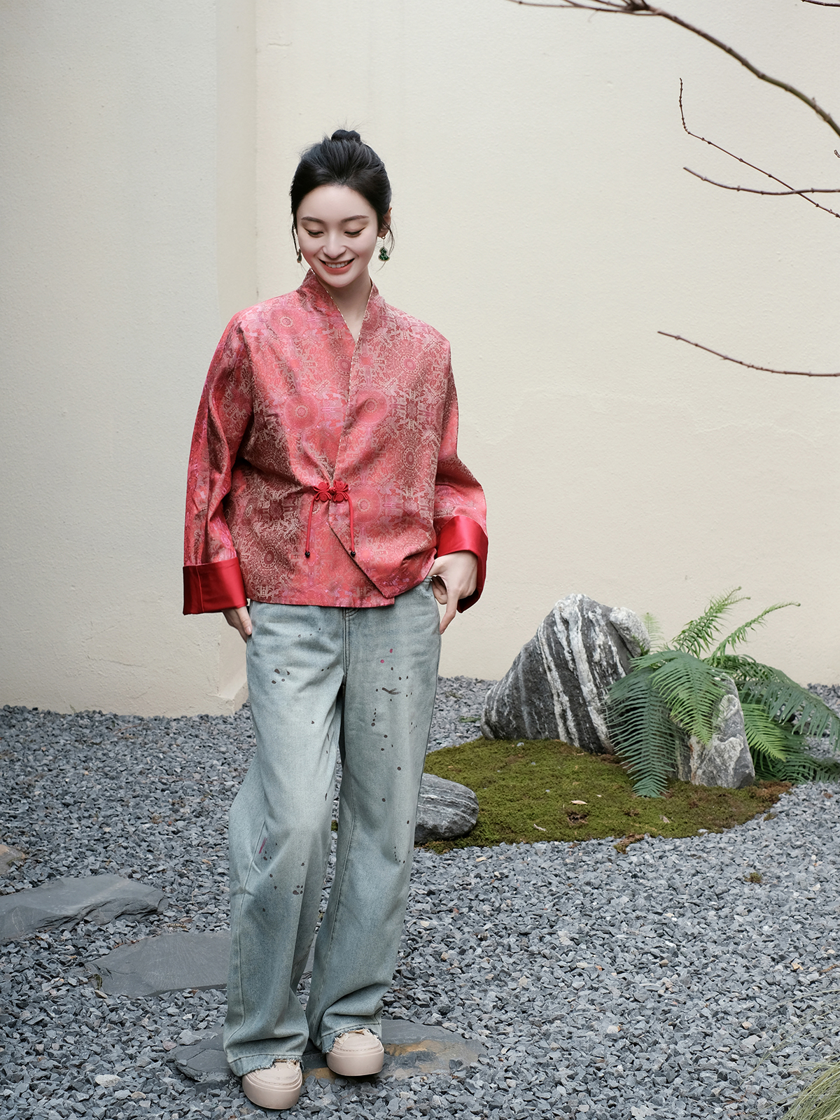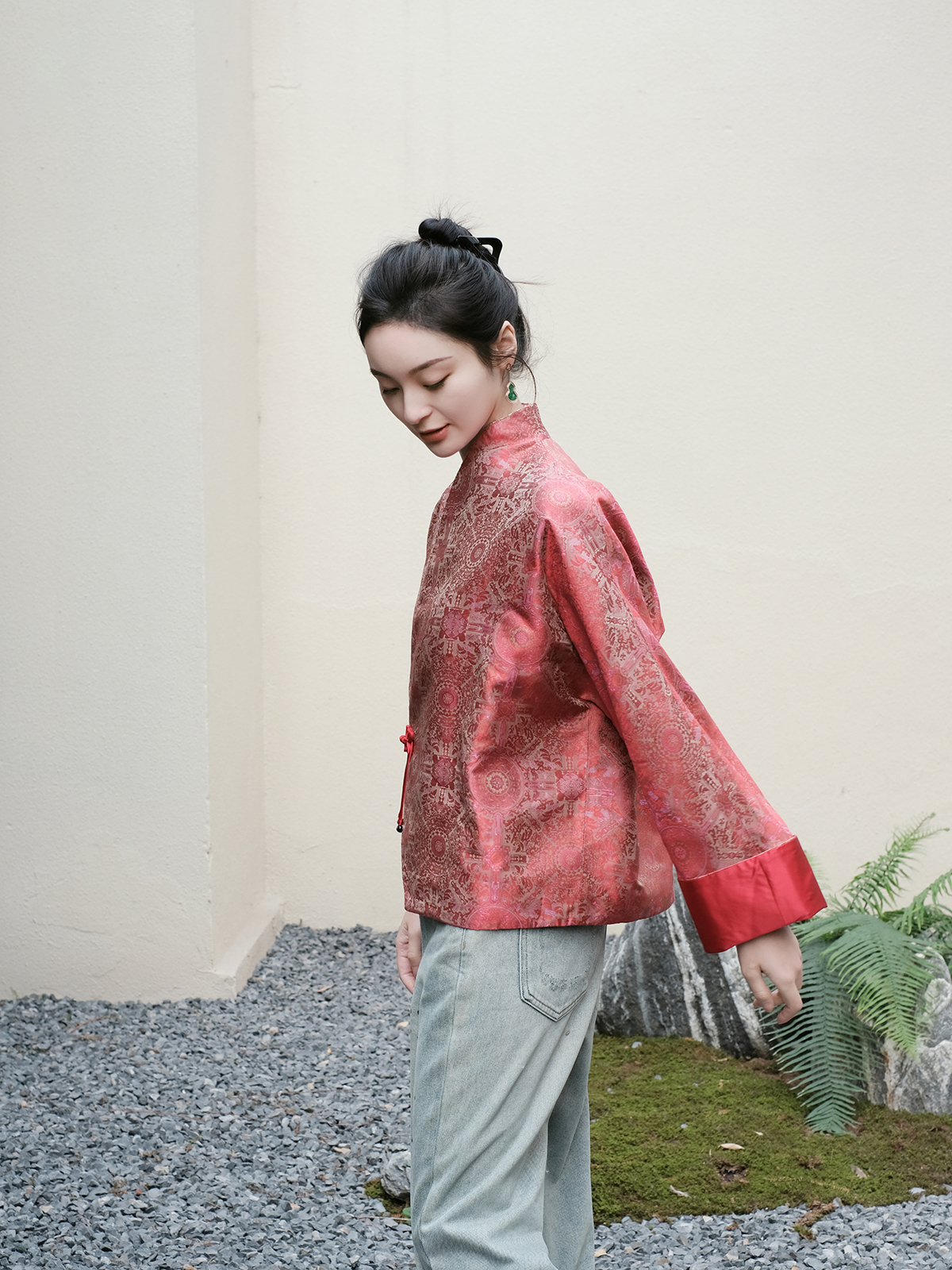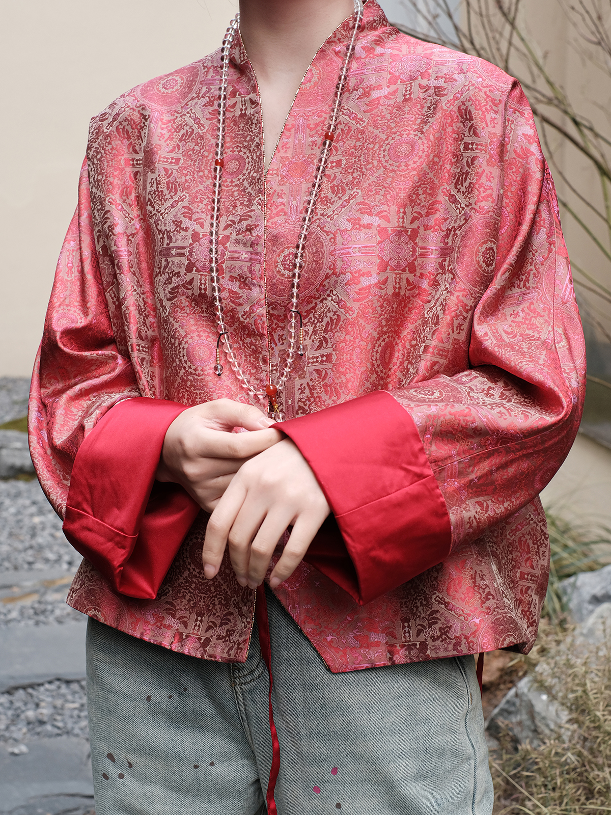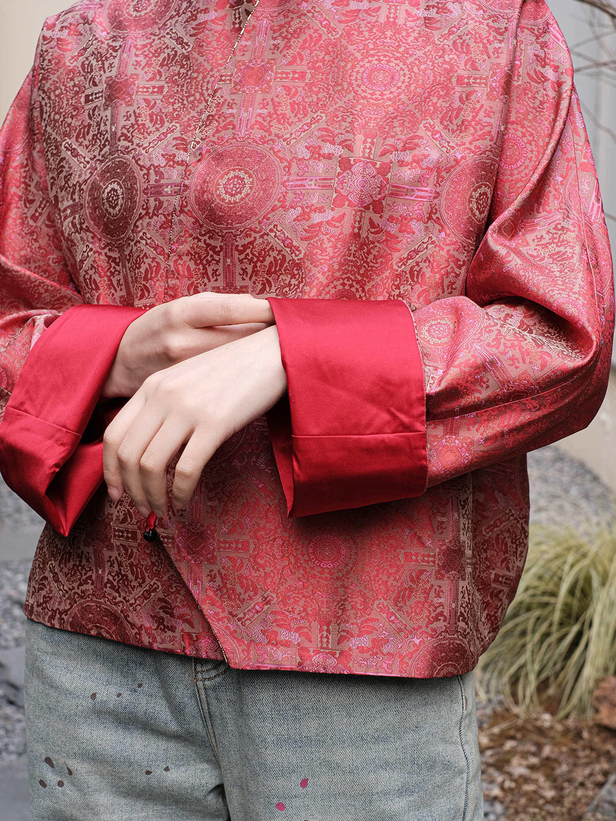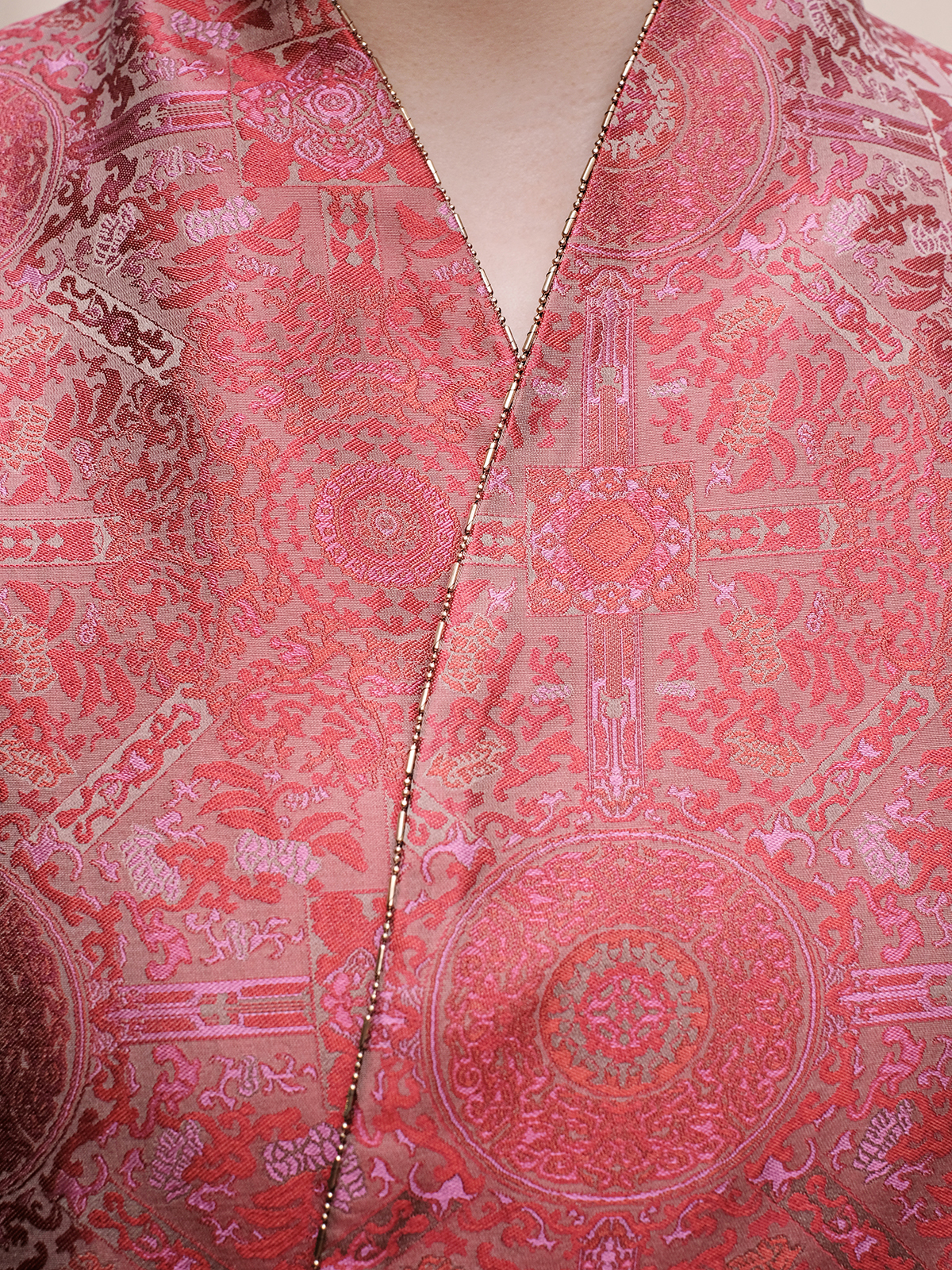 盛唐牡丹 |宋锦八达晕纹交叉外套
