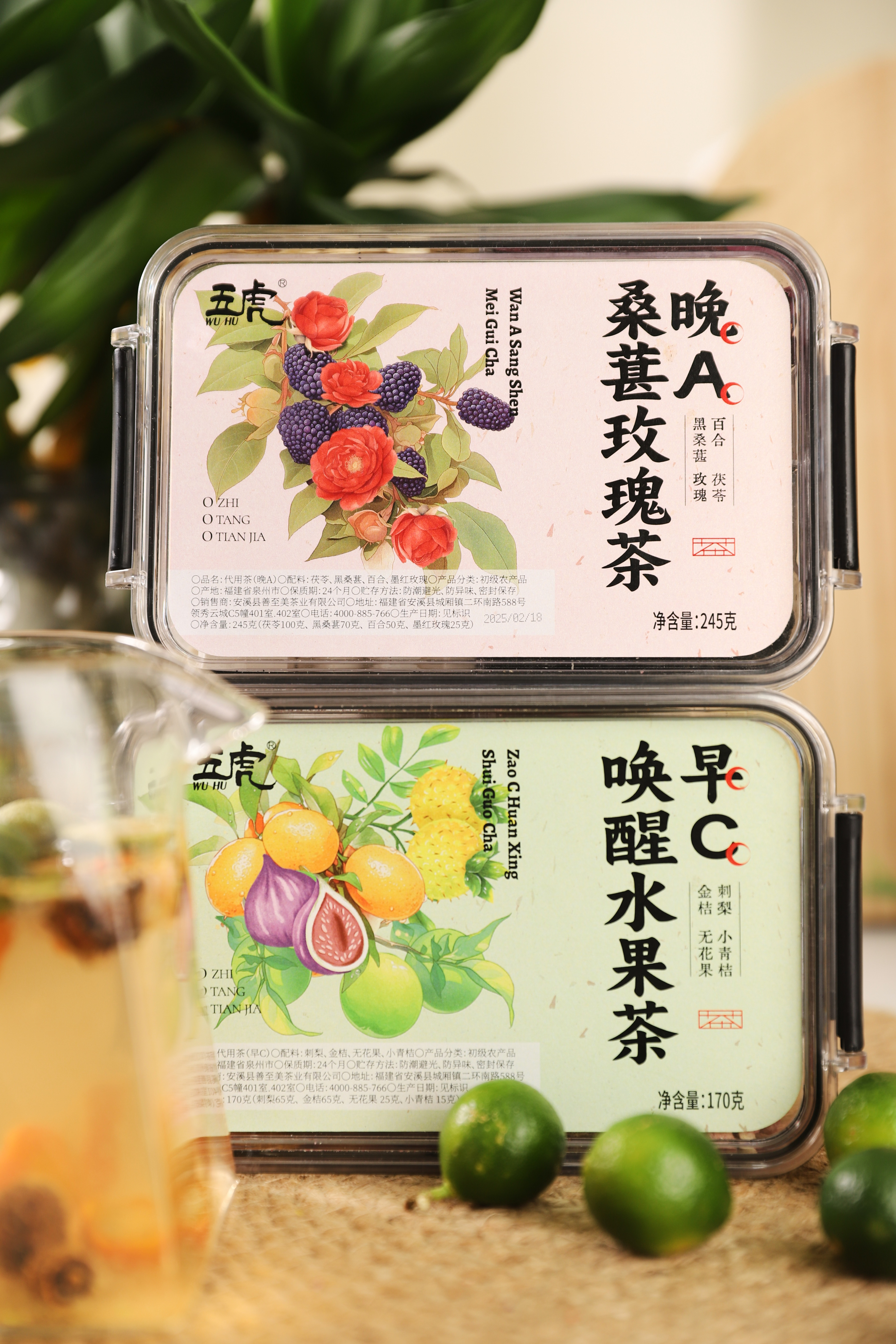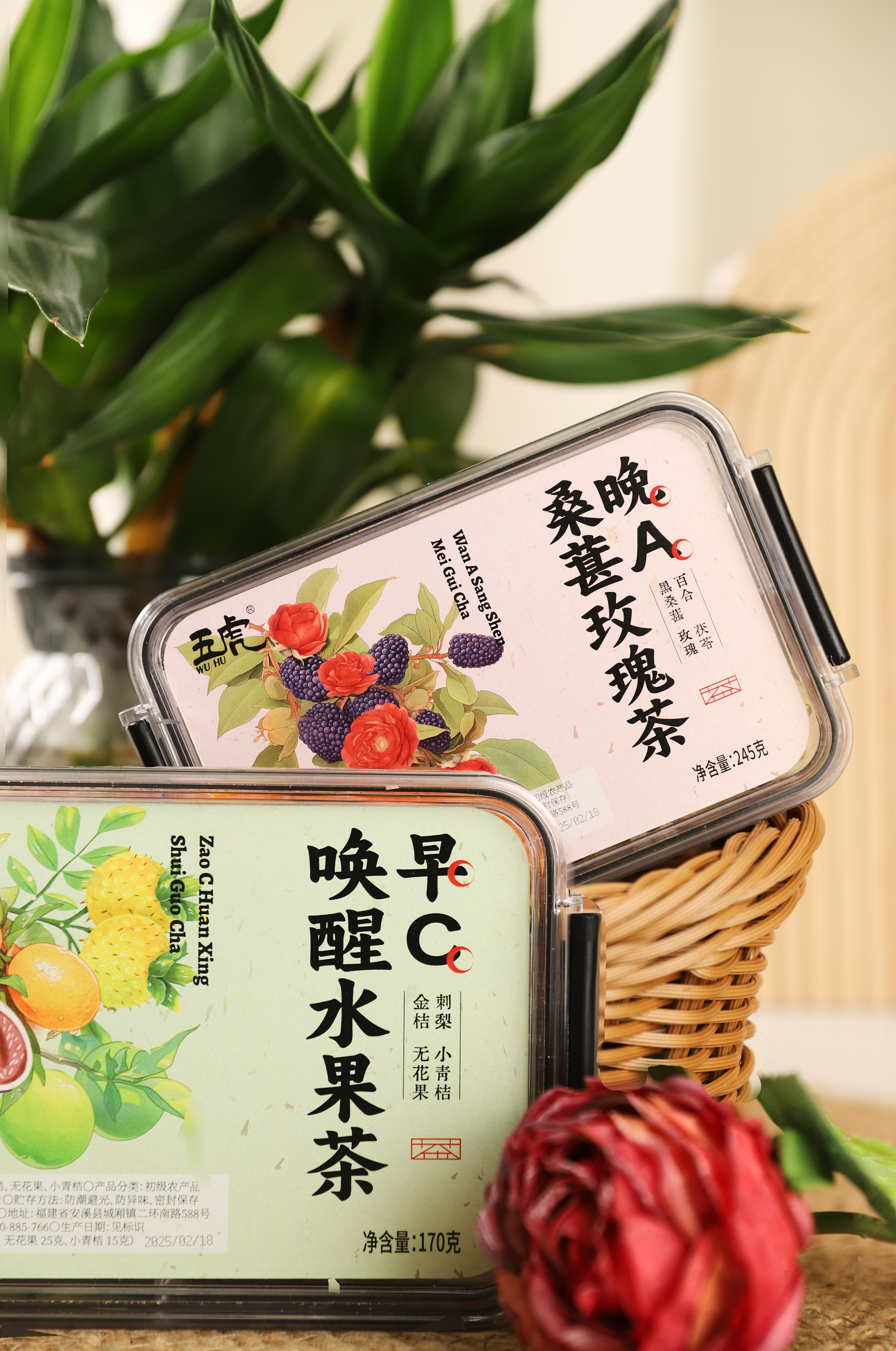 五虎早C晚A茶 唤醒水果茶170g/盒 玫瑰桑葚茶245g/盒 日夜搭配焕活肌肤 富含维生素与花青素 办公室好物