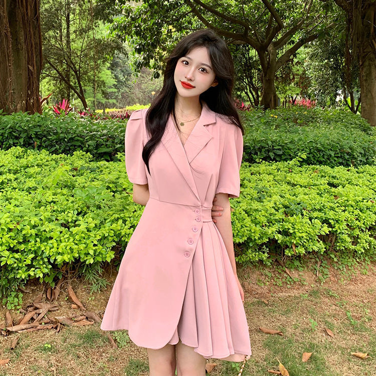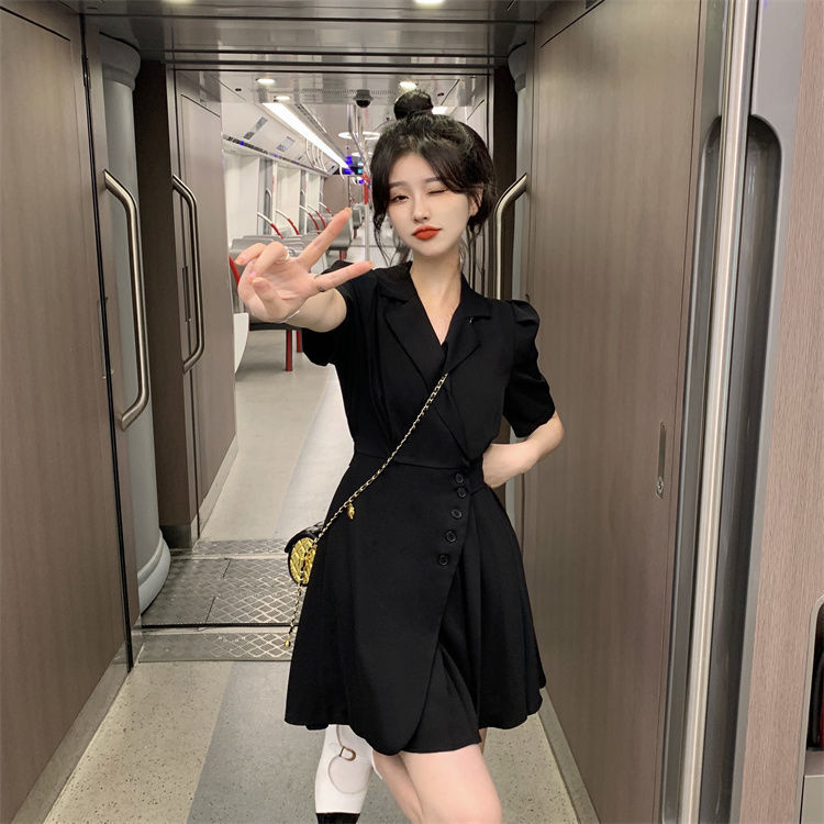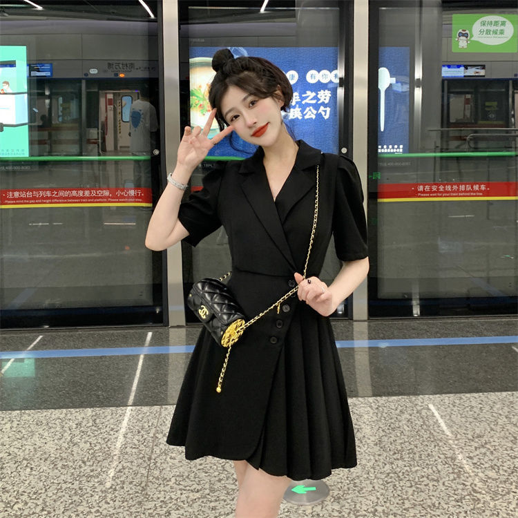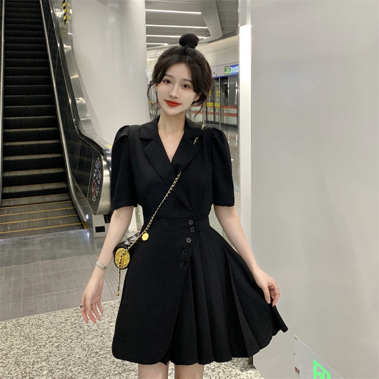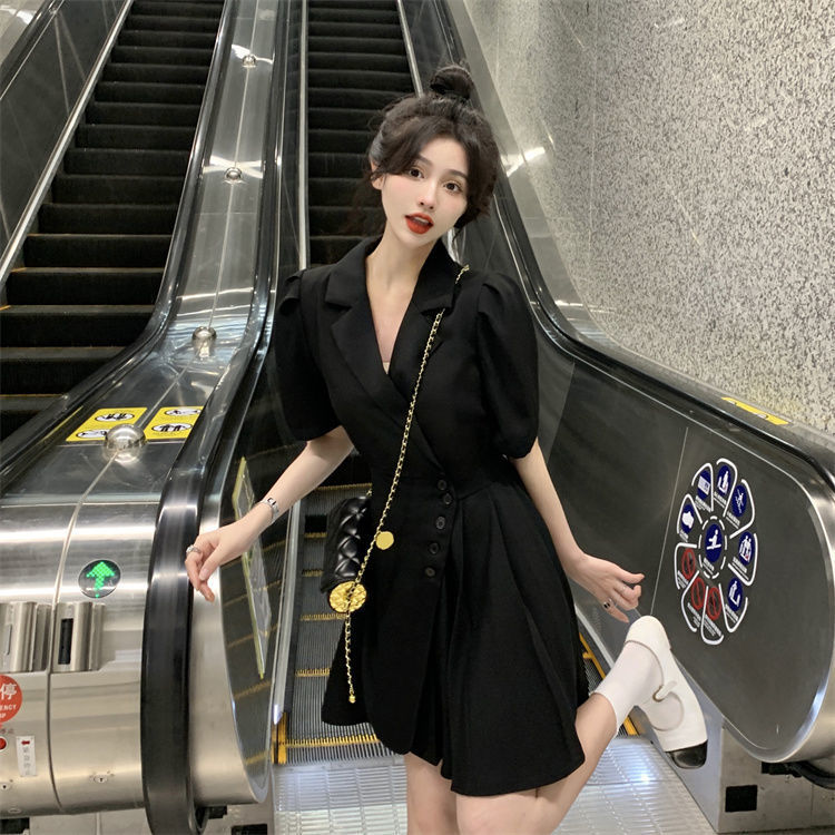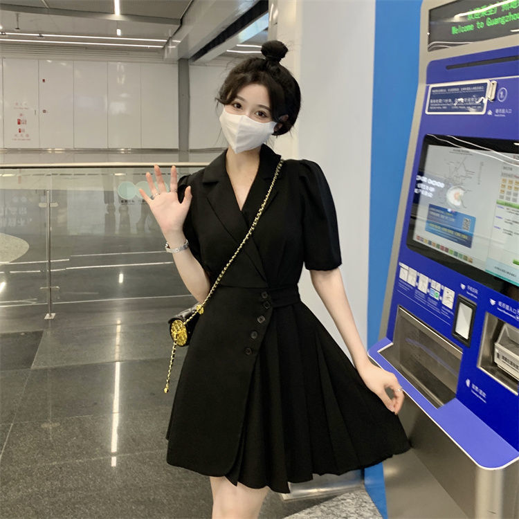 【清纯甜美❗️高ji感不规则西装连衣裙】不规则剪裁,泡泡袖短裙,gao级西装面料,收腰显瘦,女夏季新款收腰显瘦百褶泡泡短袖裙子粉丝专属