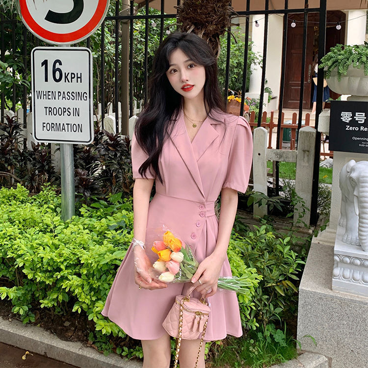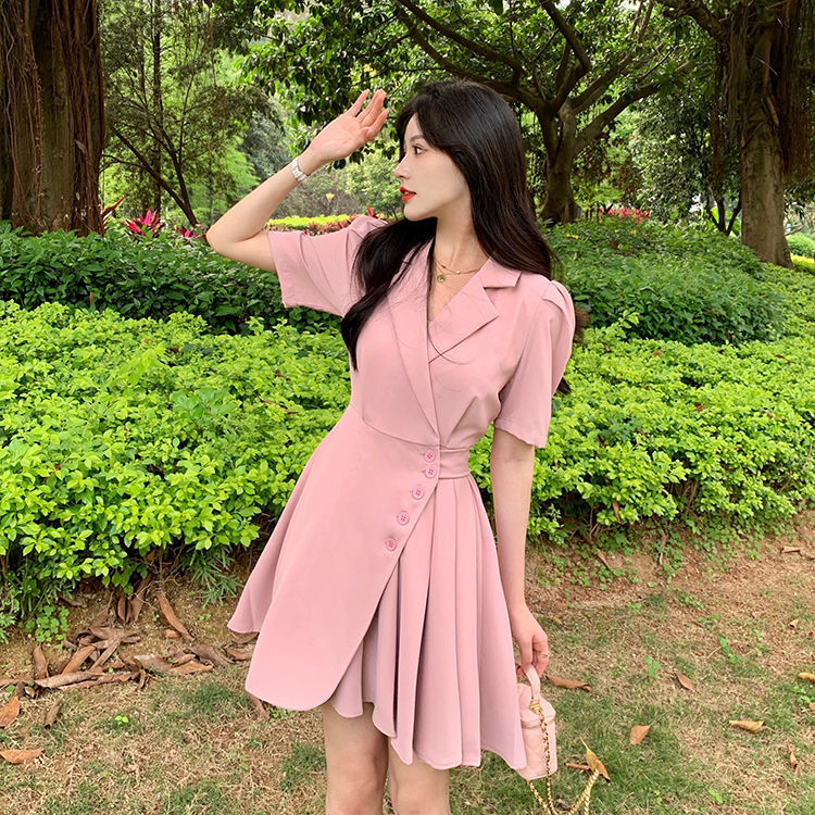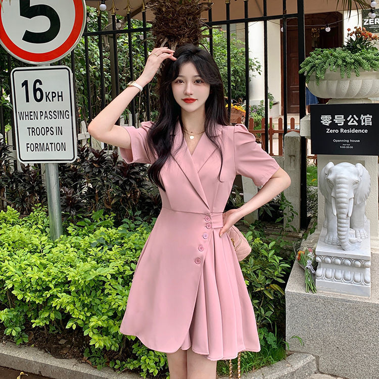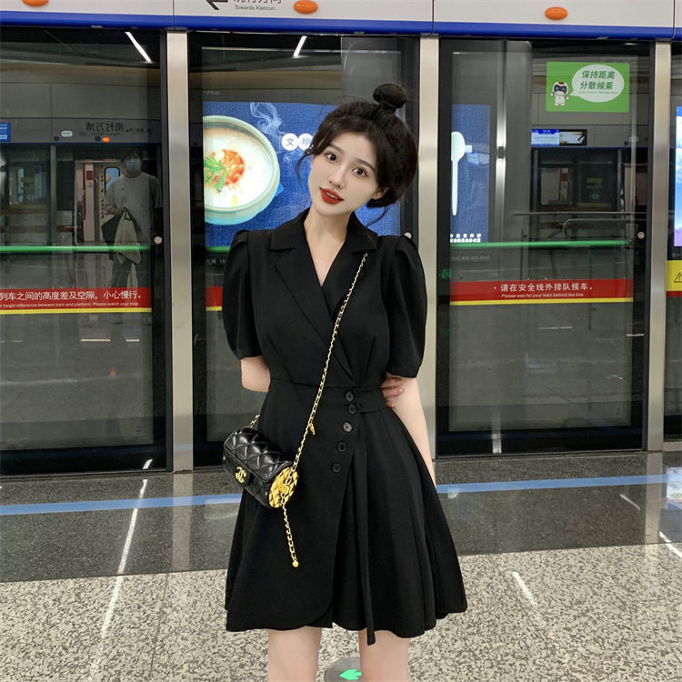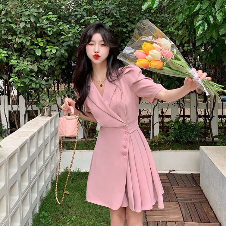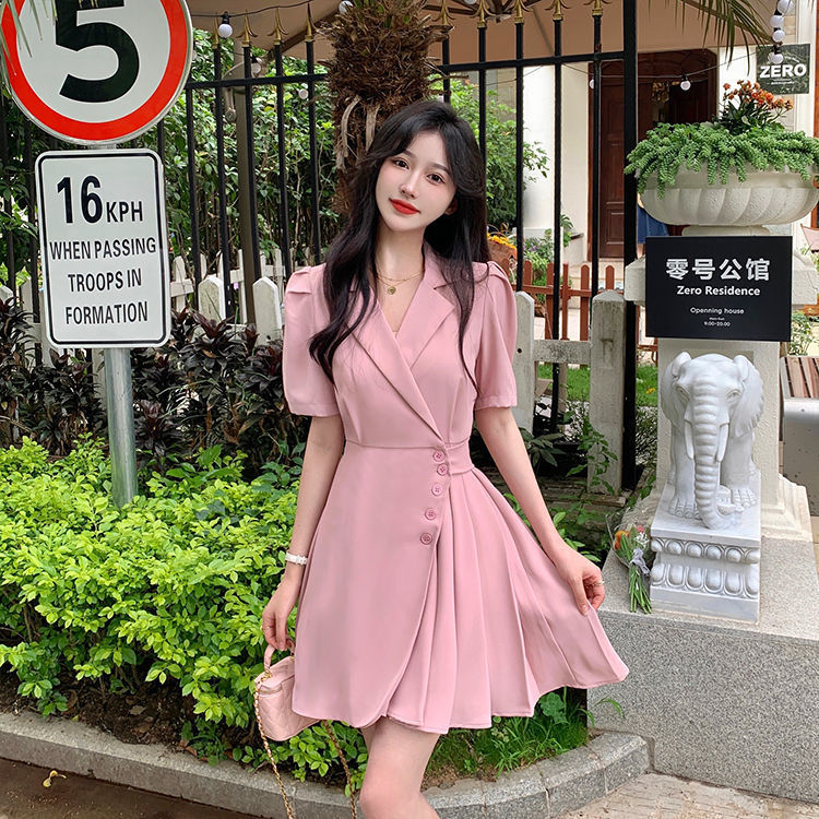 【清纯甜美❗️高ji感不规则西装连衣裙】不规则剪裁,泡泡袖短裙,gao级西装面料,收腰显瘦,女夏季新款收腰显瘦百褶泡泡短袖裙子粉丝专属