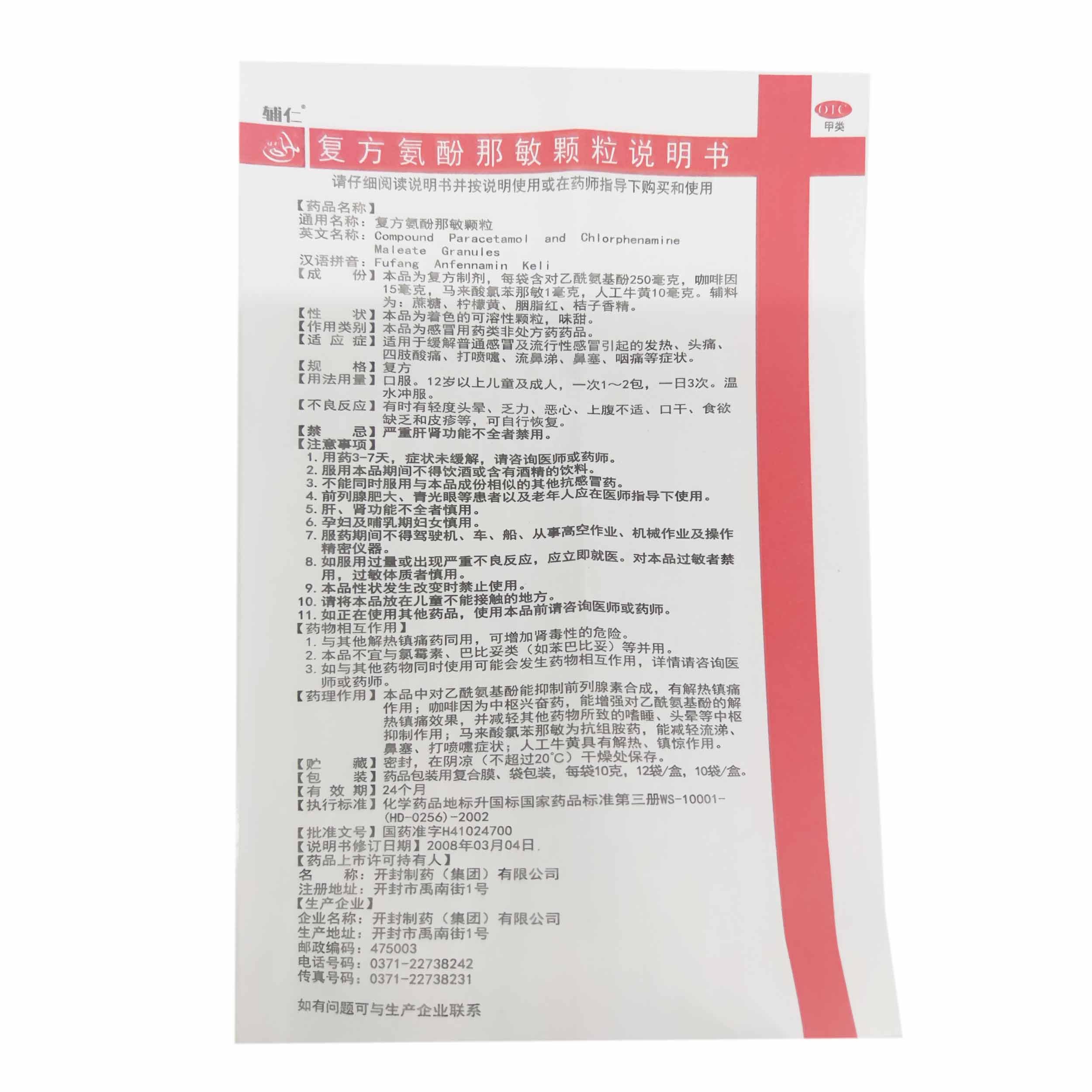 辅仁 复方氨酚那敏颗粒 12袋/盒