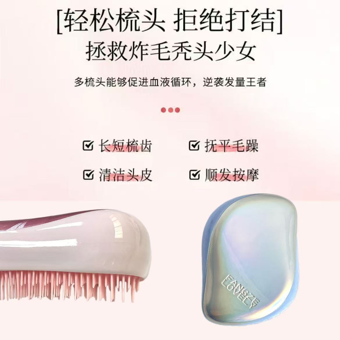 【一梳到底❗️凯特王妃同款梳子】开结秀发一梳即顺,小巧易握方便携带,新款英国王妃用顺发按摩梳防打旅行便携tt梳QQ
