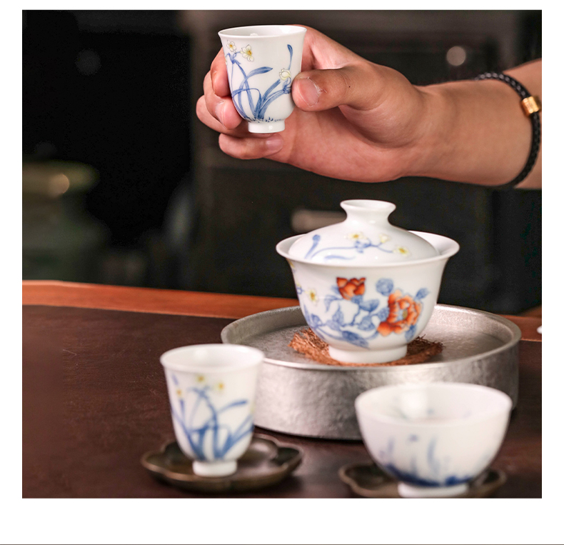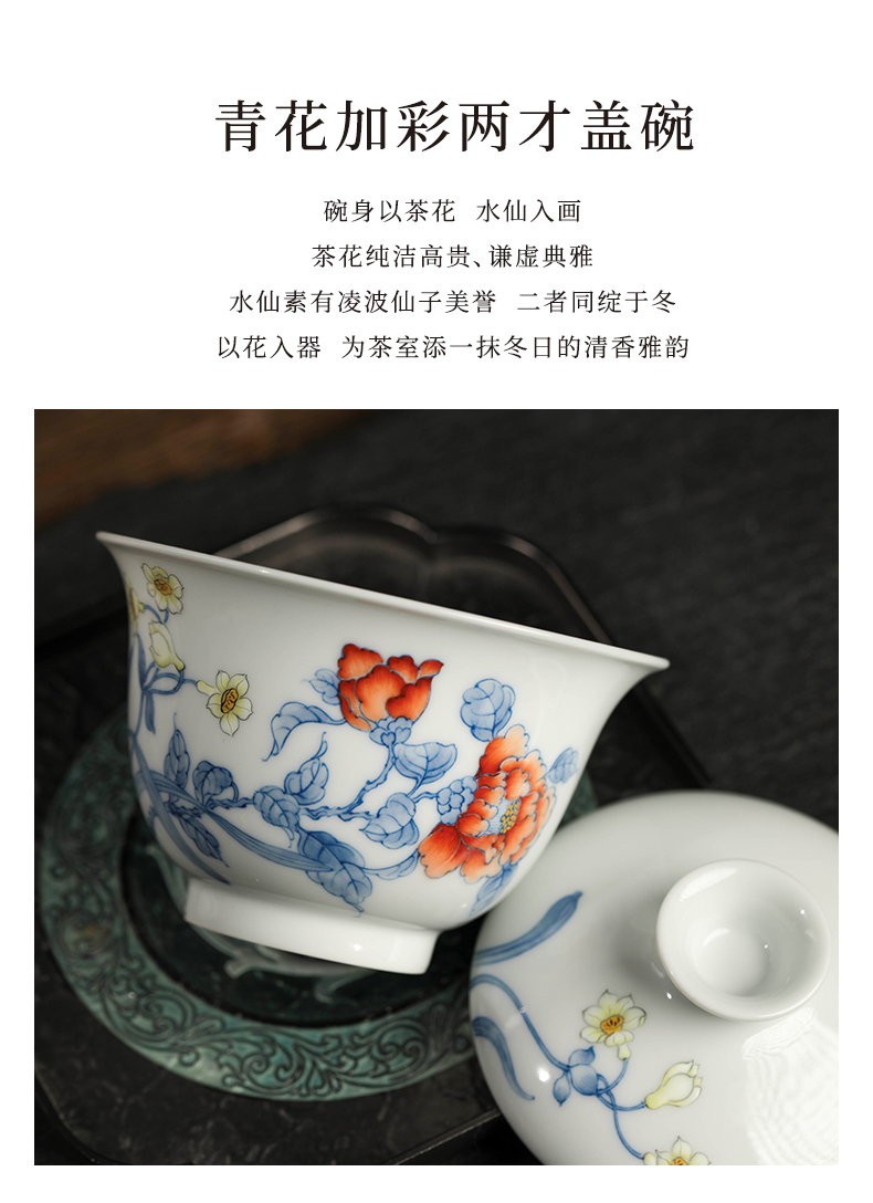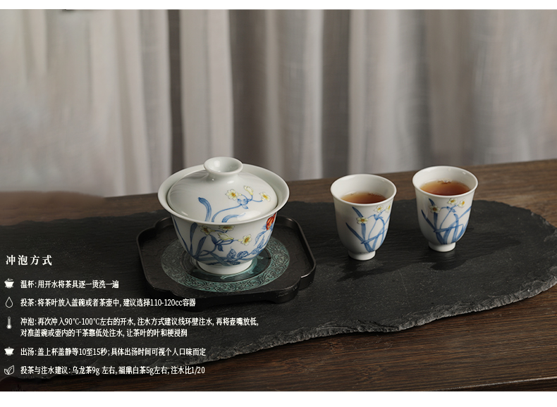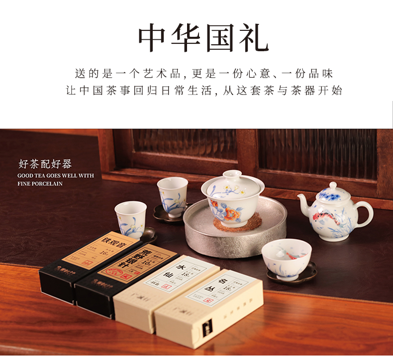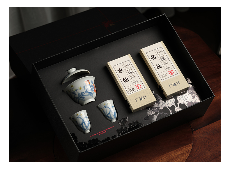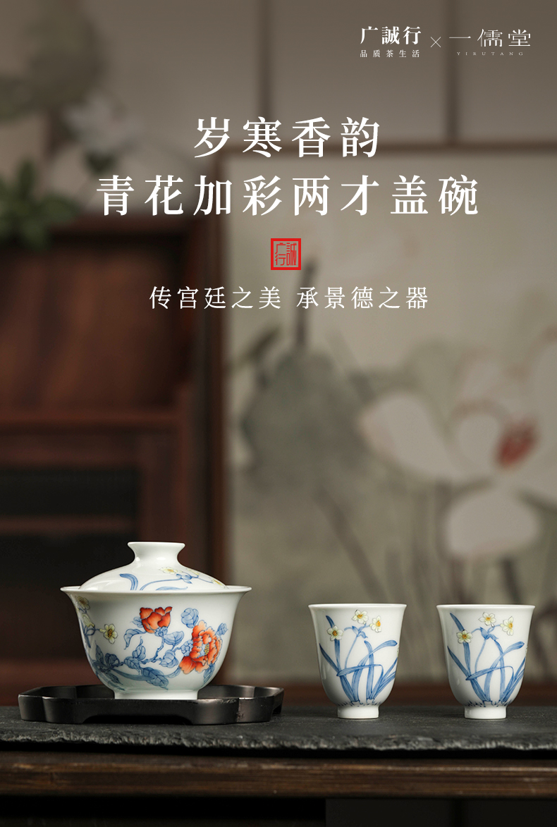 广诚行x一儒堂 岁寒香韵青花加彩盖碗 岩茶组合和和美美礼盒