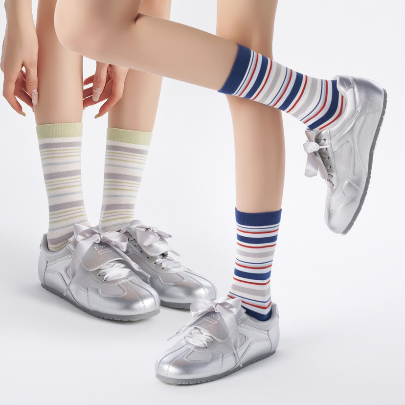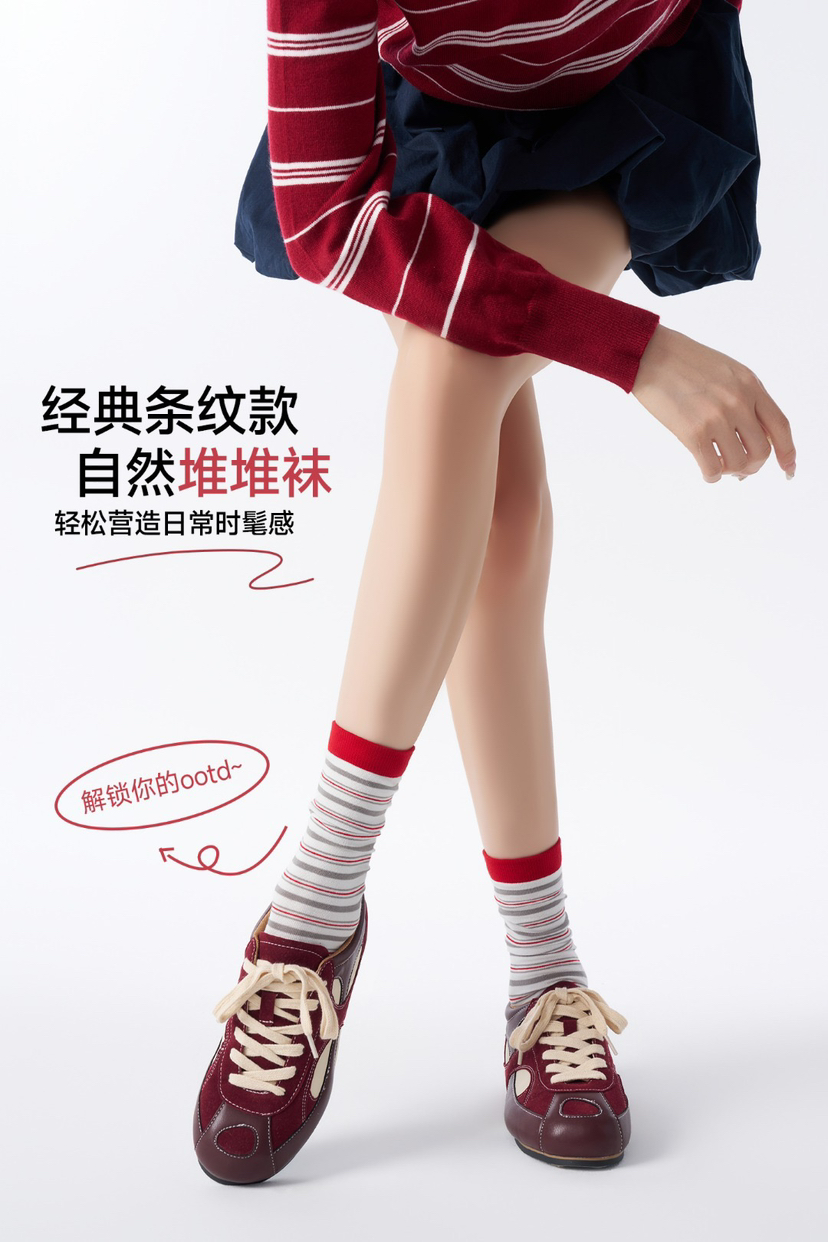 4双一组!26春新款条纹堆堆袜 无骨中筒棉袜显瘦显腿长 经典条纹点亮日常穿搭 解锁你的OOTD~