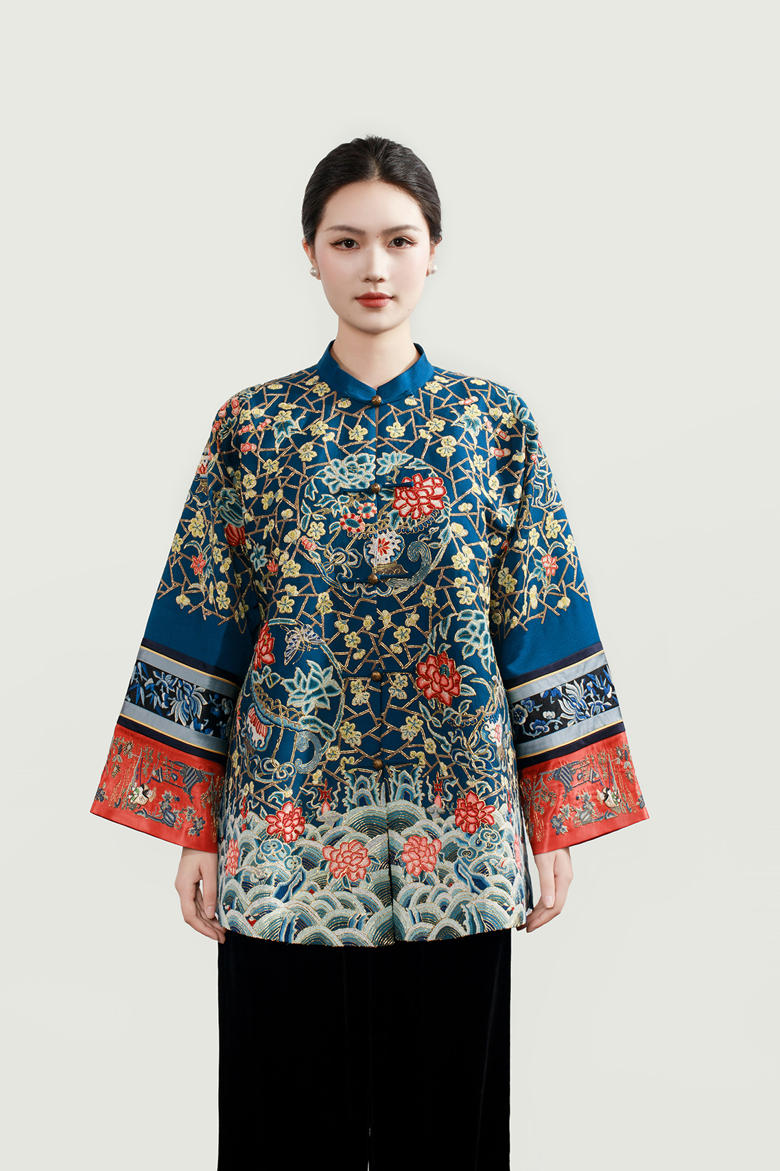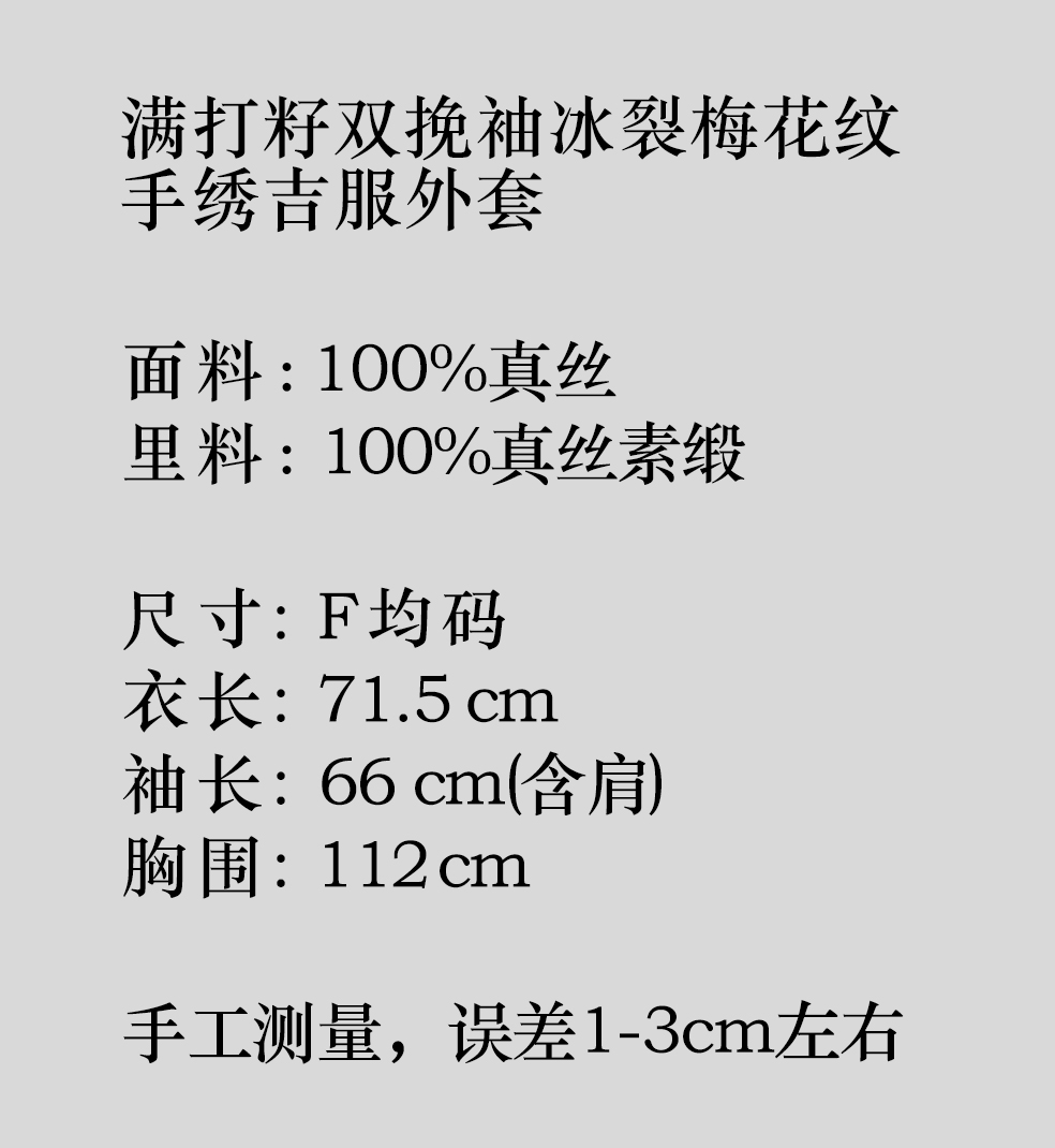 下架|盛唐牡丹大师系列 | 满打籽双挽袖冰裂梅花纹手绣吉服外套(盛唐牡丹与非遗传承人王小潇联名作品)