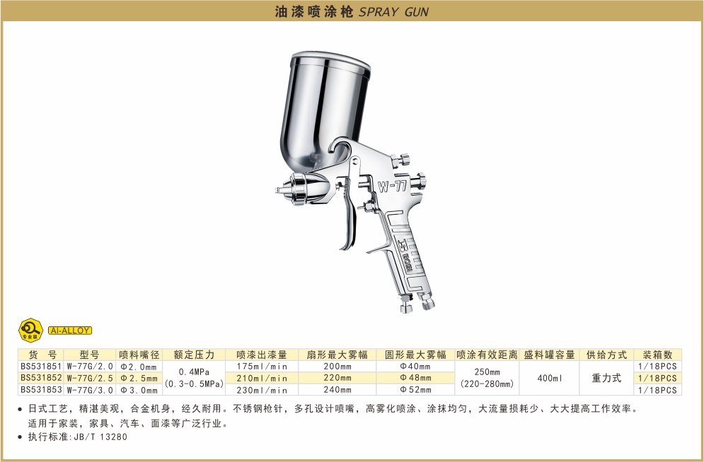 波斯 油漆喷涂枪 W-77G/2.0上壶 BS531851