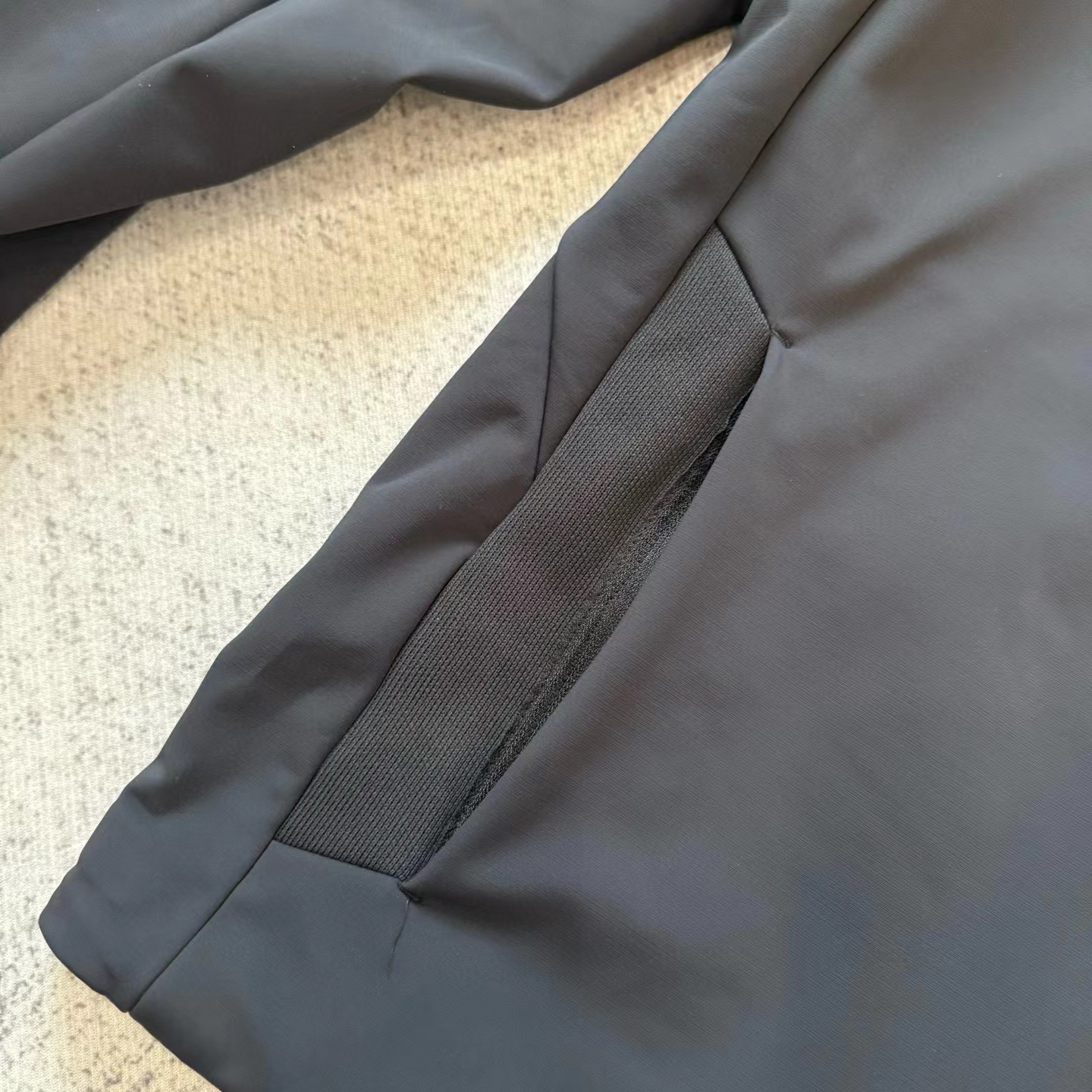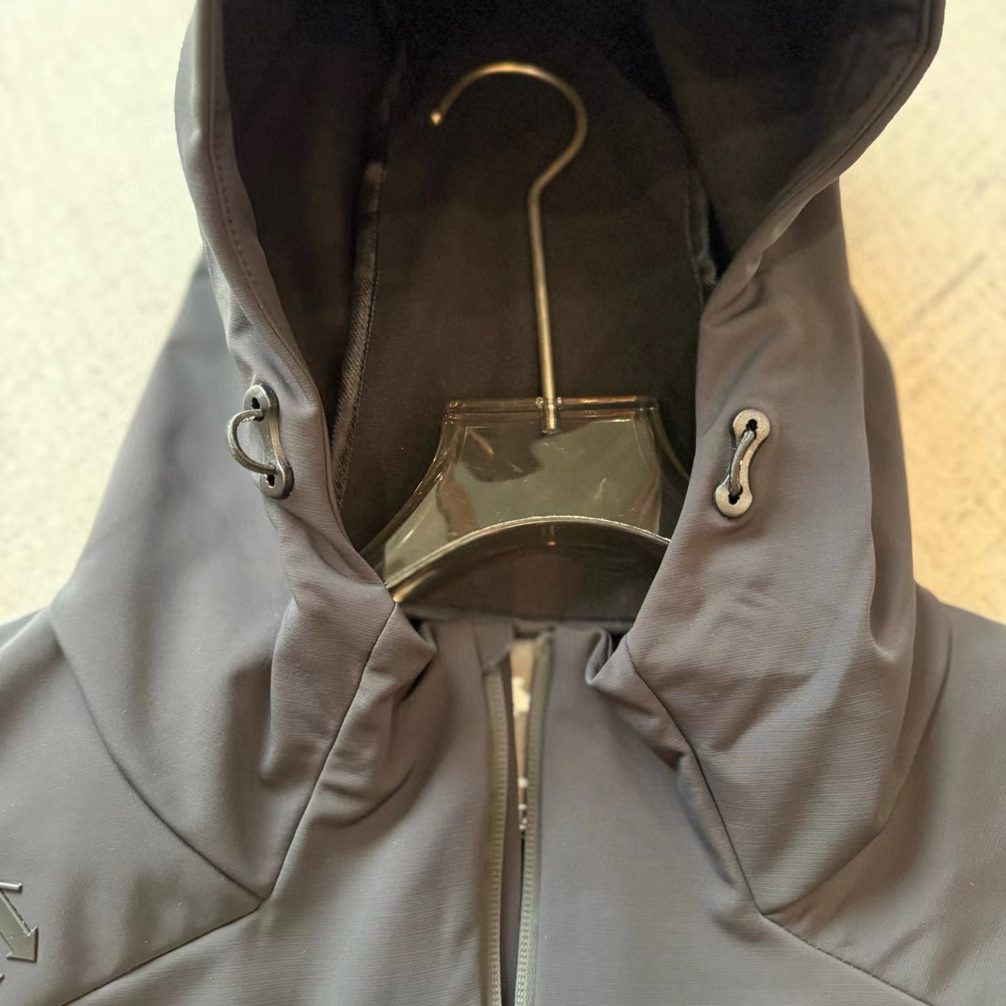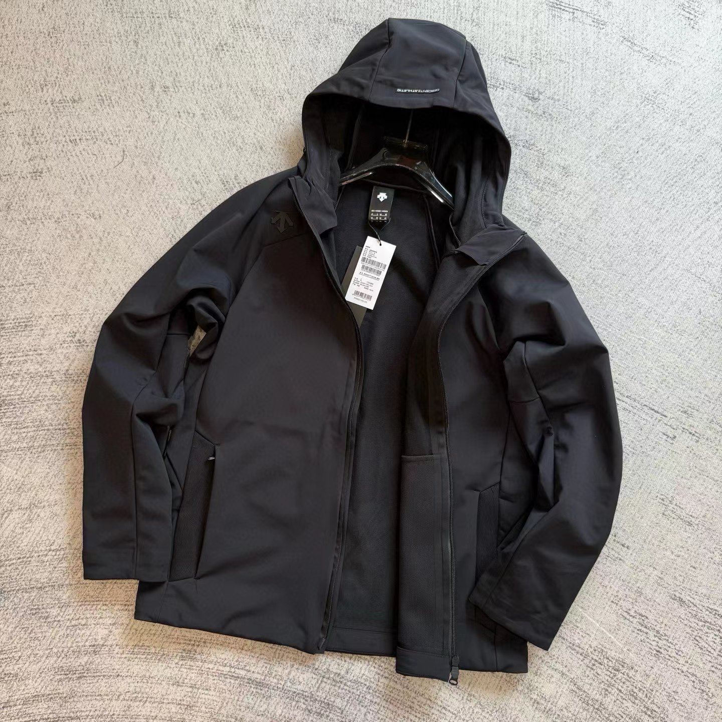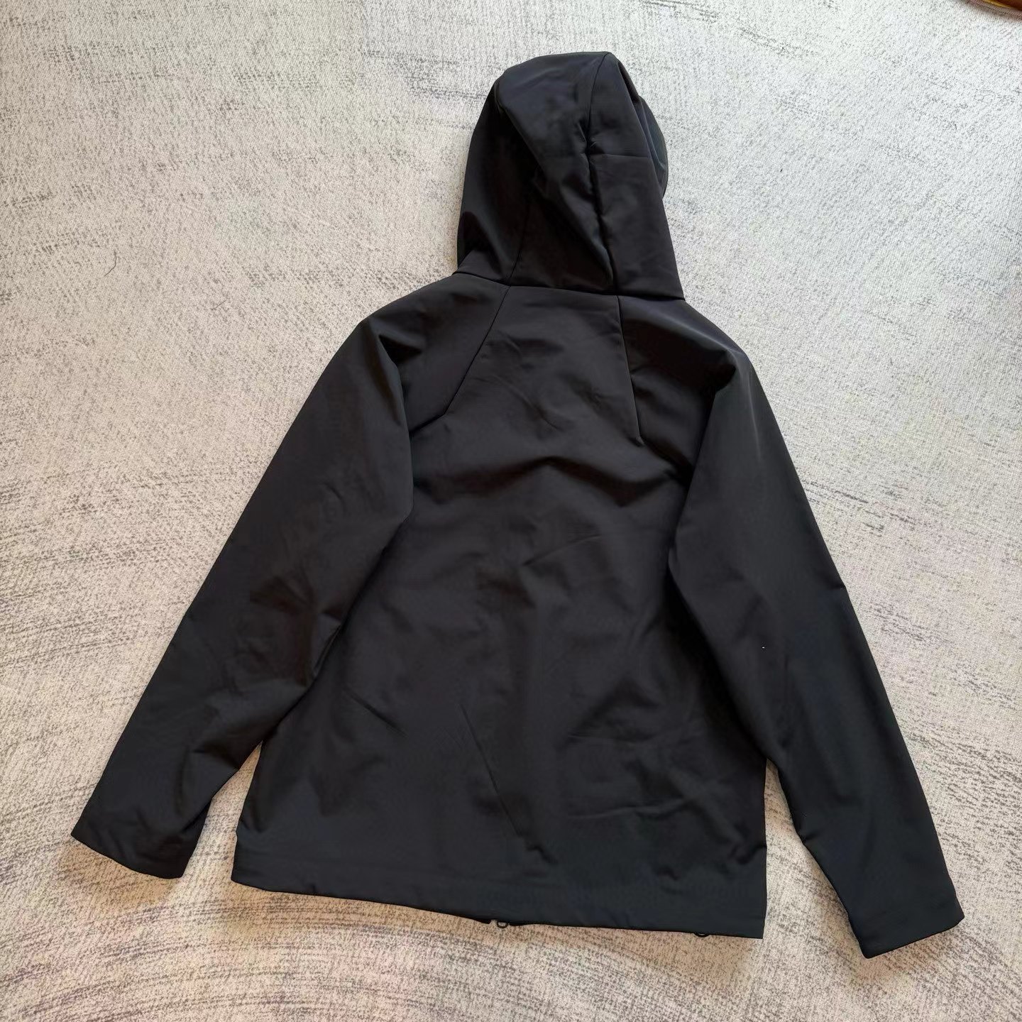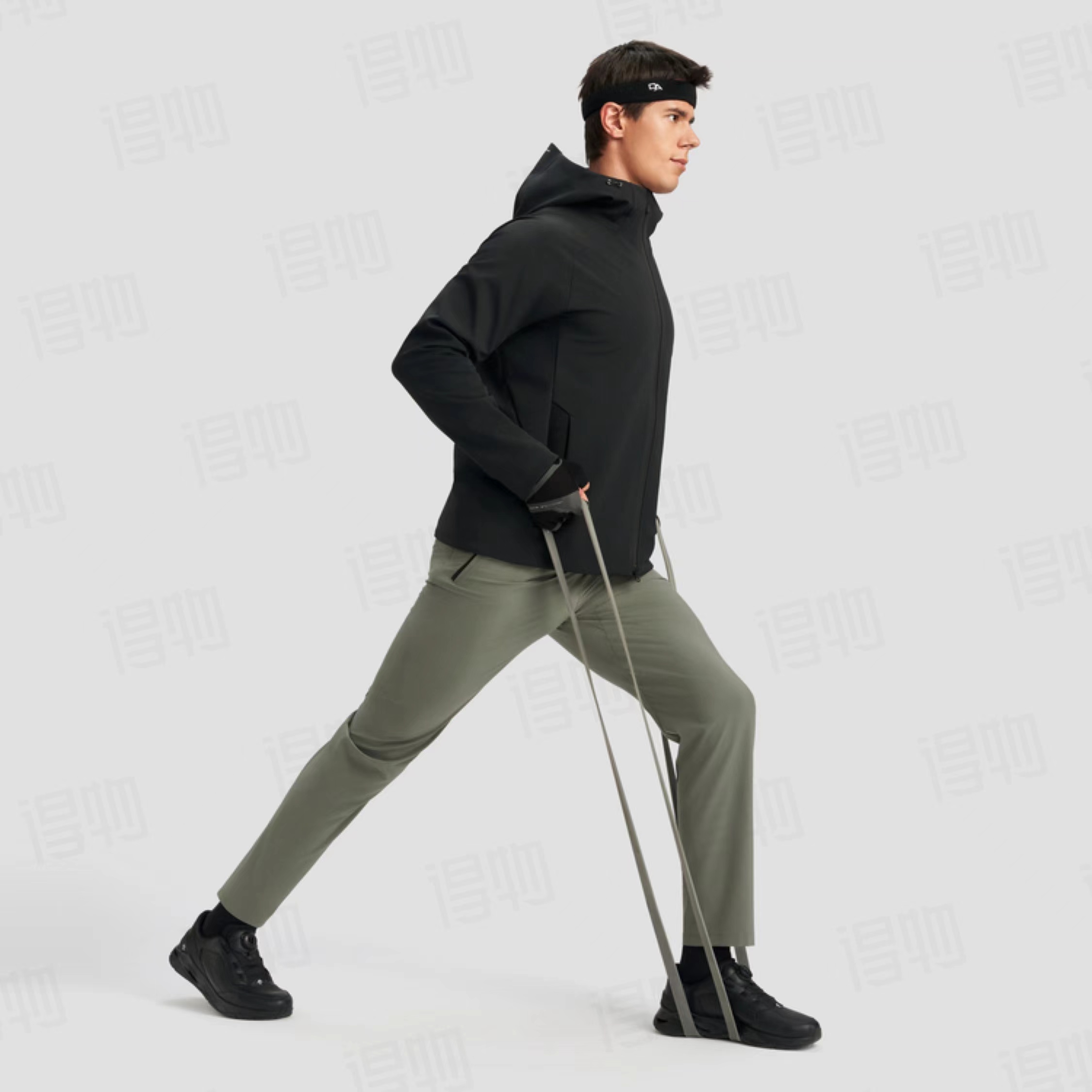 训练运动男士防水透湿加绒外套夹克梭织上衣!冲锋衣加绒软壳|无畏风雨,畅享运动|男士防水透湿加绒夹克,这款专为运动男士设计的加绒夹克,是应对多变气候的理想之选。它采用功能型梭织面料,面料本身具备优异的防水透湿性能,无惧户外风雨,同时能快速导出运动时产生的汗气,保持身体干爽舒适。内里厚实的抓绒加持,锁住体温,带来温暖亲肤的穿着感受,有效抵御寒冷。面料表层挺阔有型,告别臃肿。搭配可调节的挡风兜帽,进一步防止冷风侵入。其利落的版型与多功能的特性,让你能根据天气冷暖自如穿搭,轻松游走于都市通勤与户外山野之间,塑造多样化的时尚运动造型。