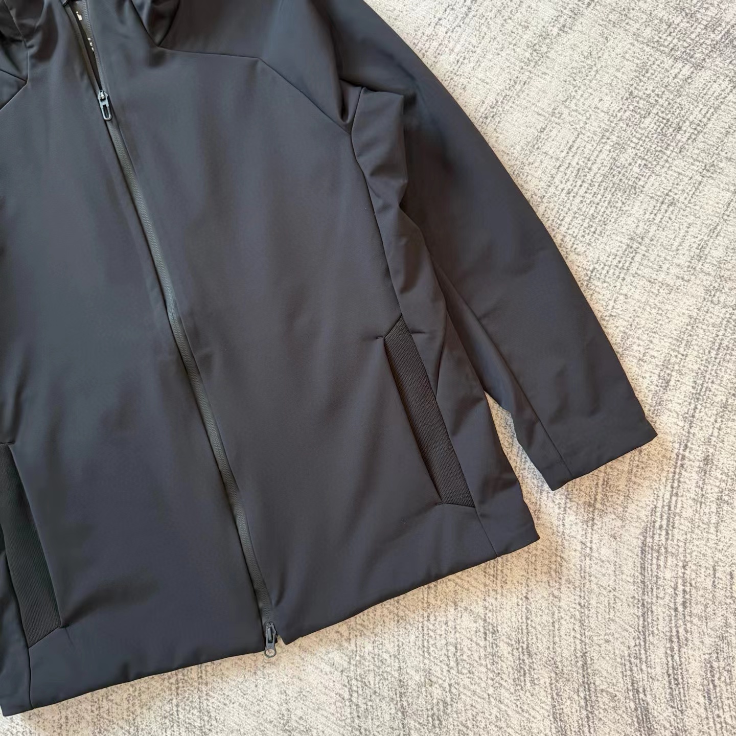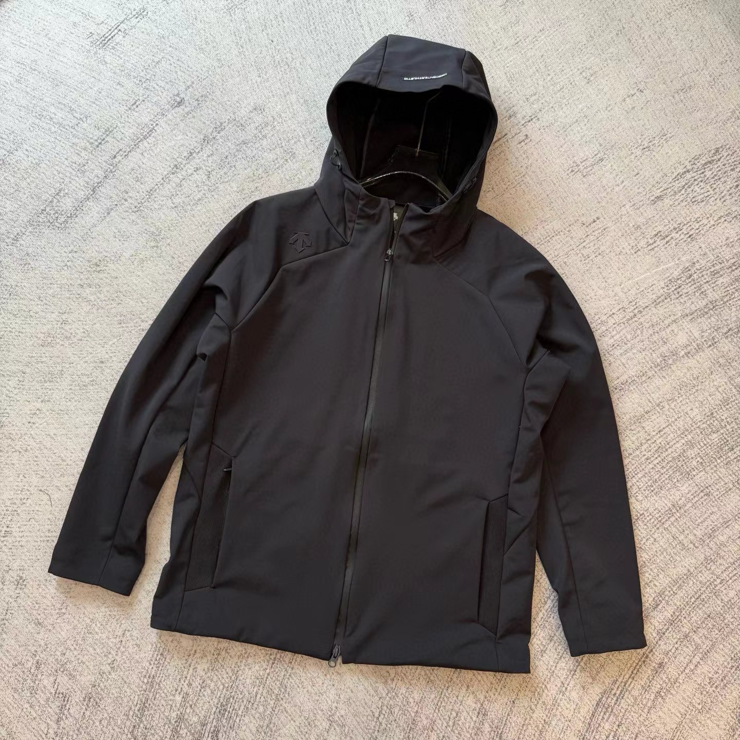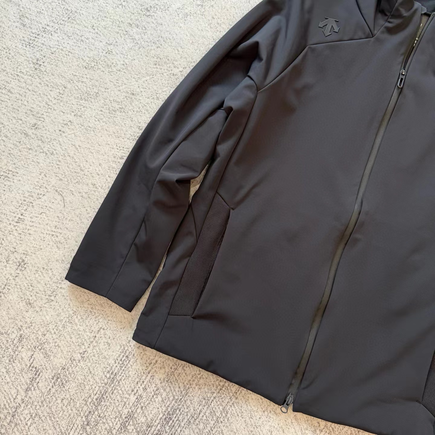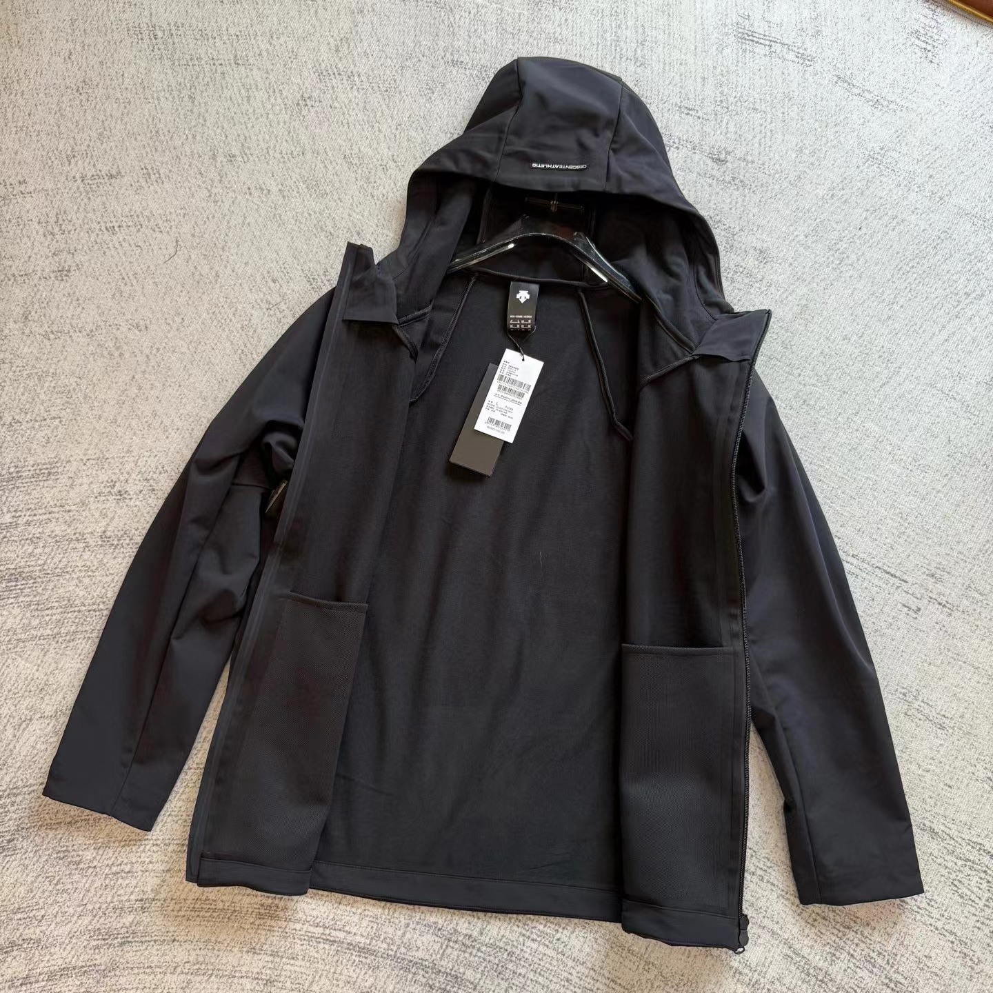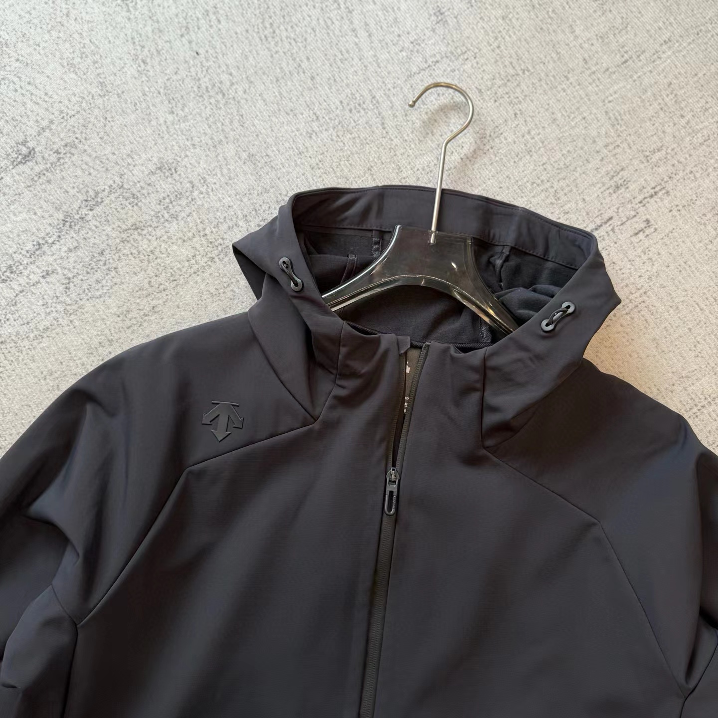 训练运动男士防水透湿加绒外套夹克梭织上衣!冲锋衣加绒软壳|无畏风雨,畅享运动|男士防水透湿加绒夹克,这款专为运动男士设计的加绒夹克,是应对多变气候的理想之选。它采用功能型梭织面料,面料本身具备优异的防水透湿性能,无惧户外风雨,同时能快速导出运动时产生的汗气,保持身体干爽舒适。内里厚实的抓绒加持,锁住体温,带来温暖亲肤的穿着感受,有效抵御寒冷。面料表层挺阔有型,告别臃肿。搭配可调节的挡风兜帽,进一步防止冷风侵入。其利落的版型与多功能的特性,让你能根据天气冷暖自如穿搭,轻松游走于都市通勤与户外山野之间,塑造多样化的时尚运动造型。