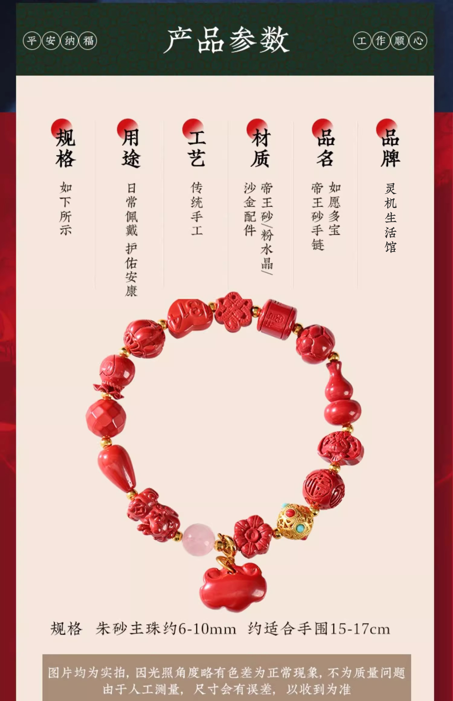 【祈愿吉品】如愿帝王砂多宝手链 朱砂手串女