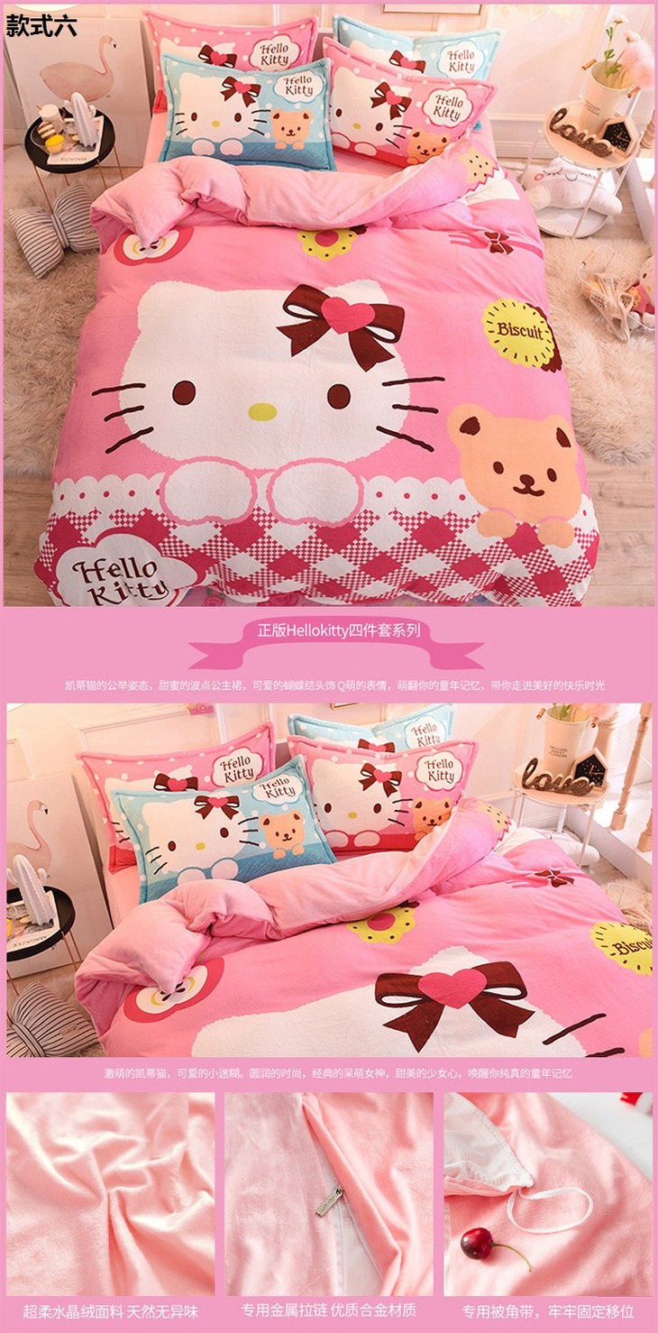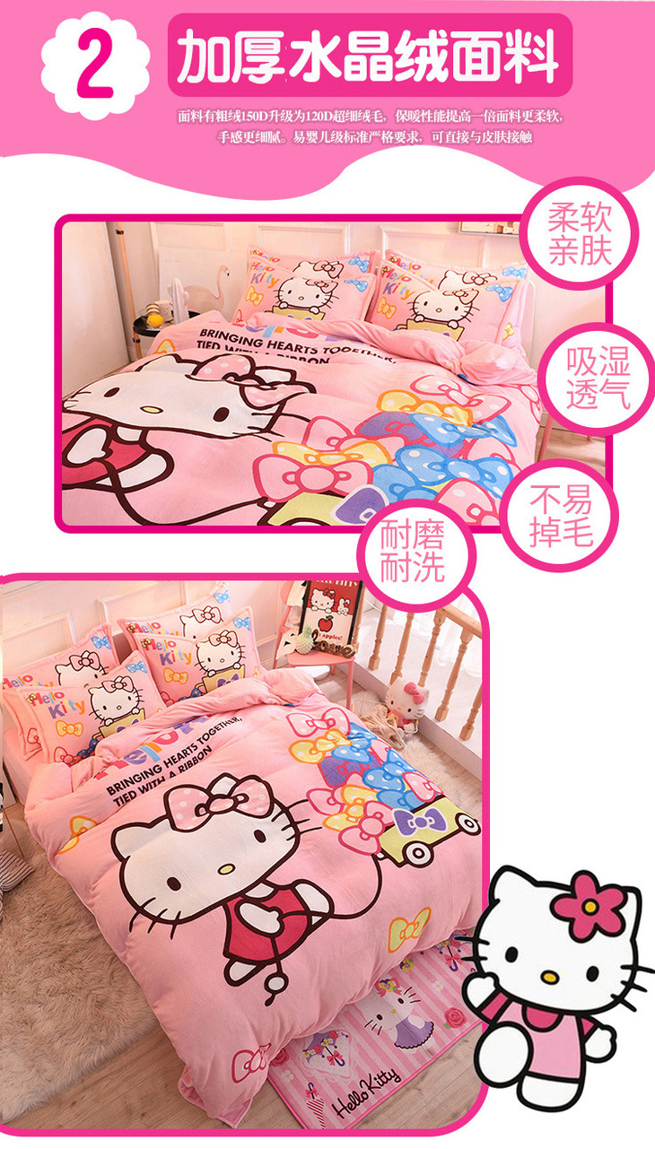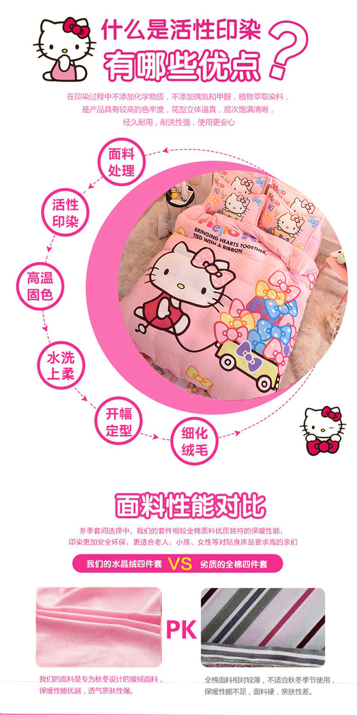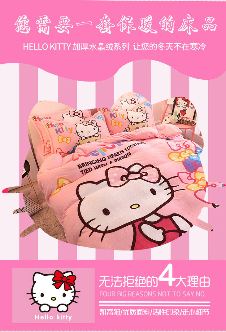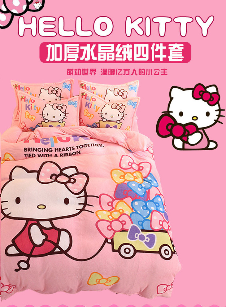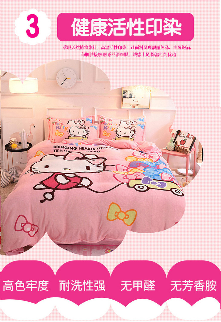 【四件套】*hellokitty卡通水晶绒三四件套kt猫被套儿童学生宿舍法莱兰绒床单