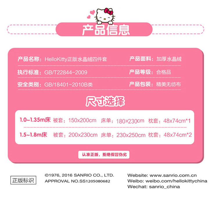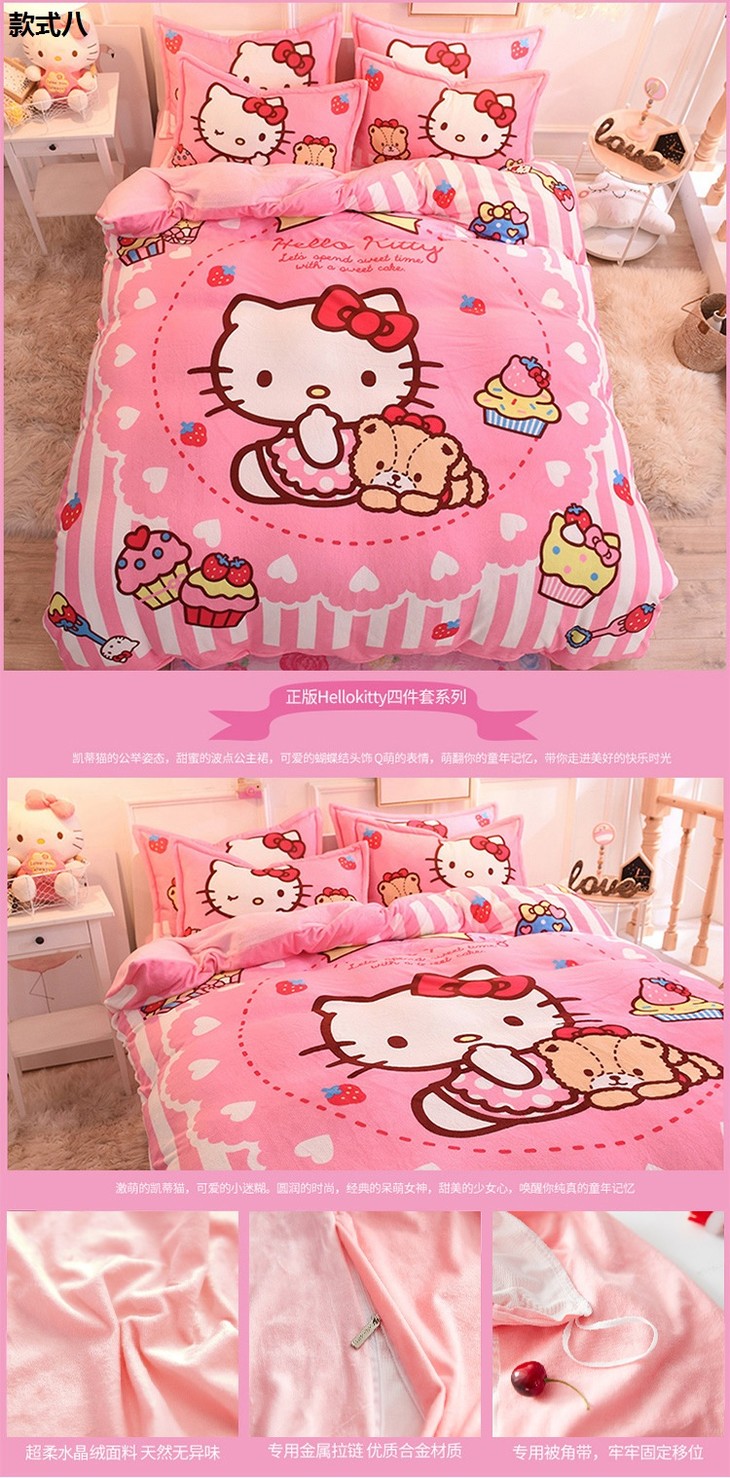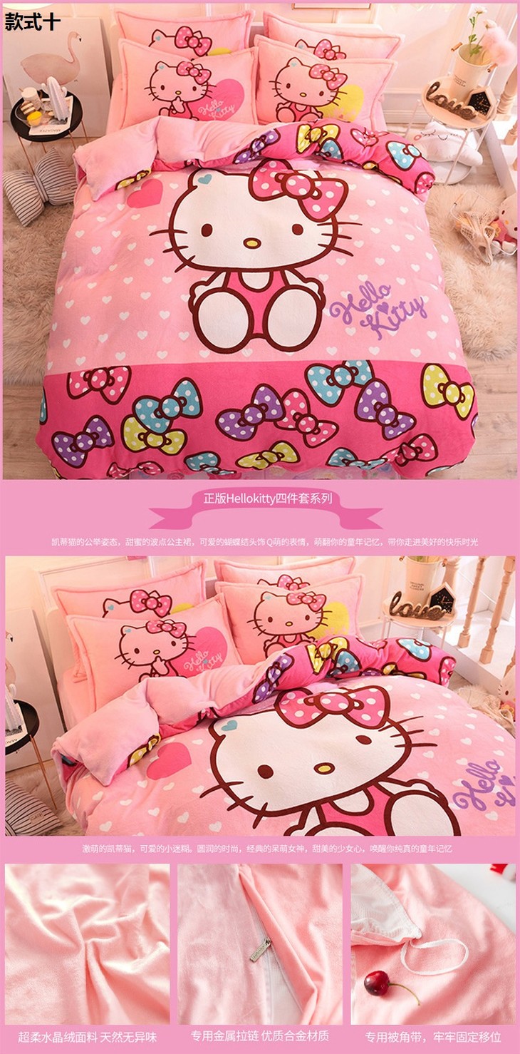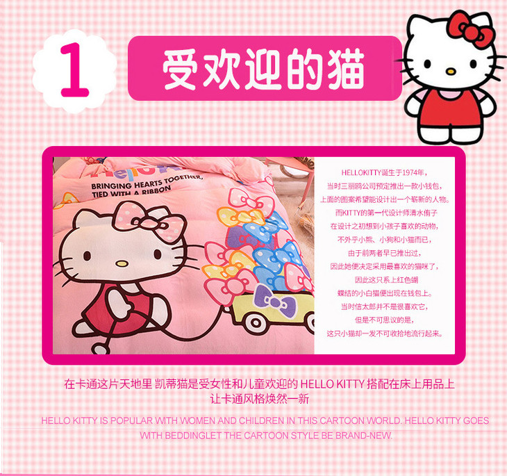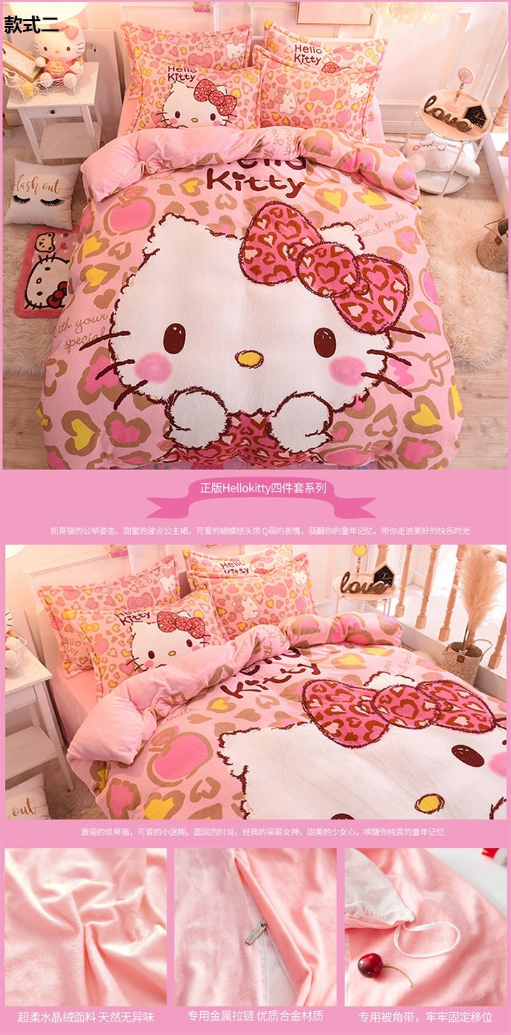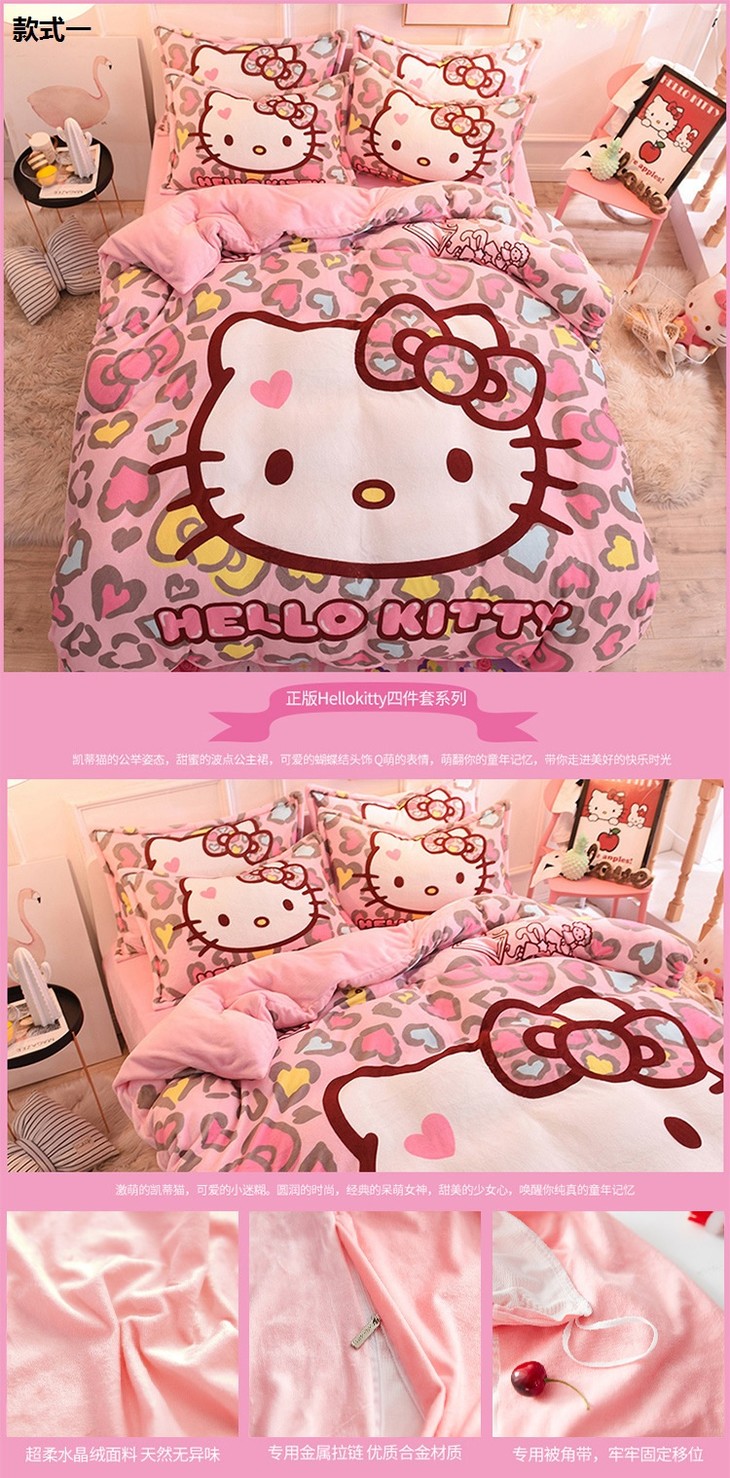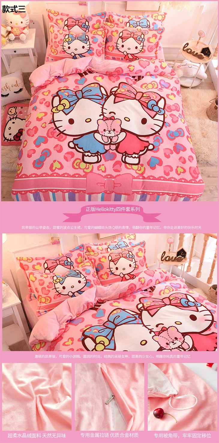 【四件套】*hellokitty卡通水晶绒三四件套kt猫被套儿童学生宿舍法莱兰绒床单